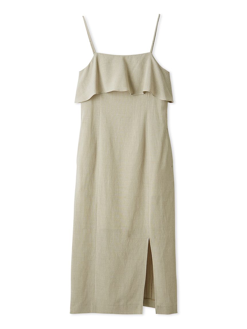 這款洋裝採用清涼舒適的布料,營造輕盈透氣的視覺感受。