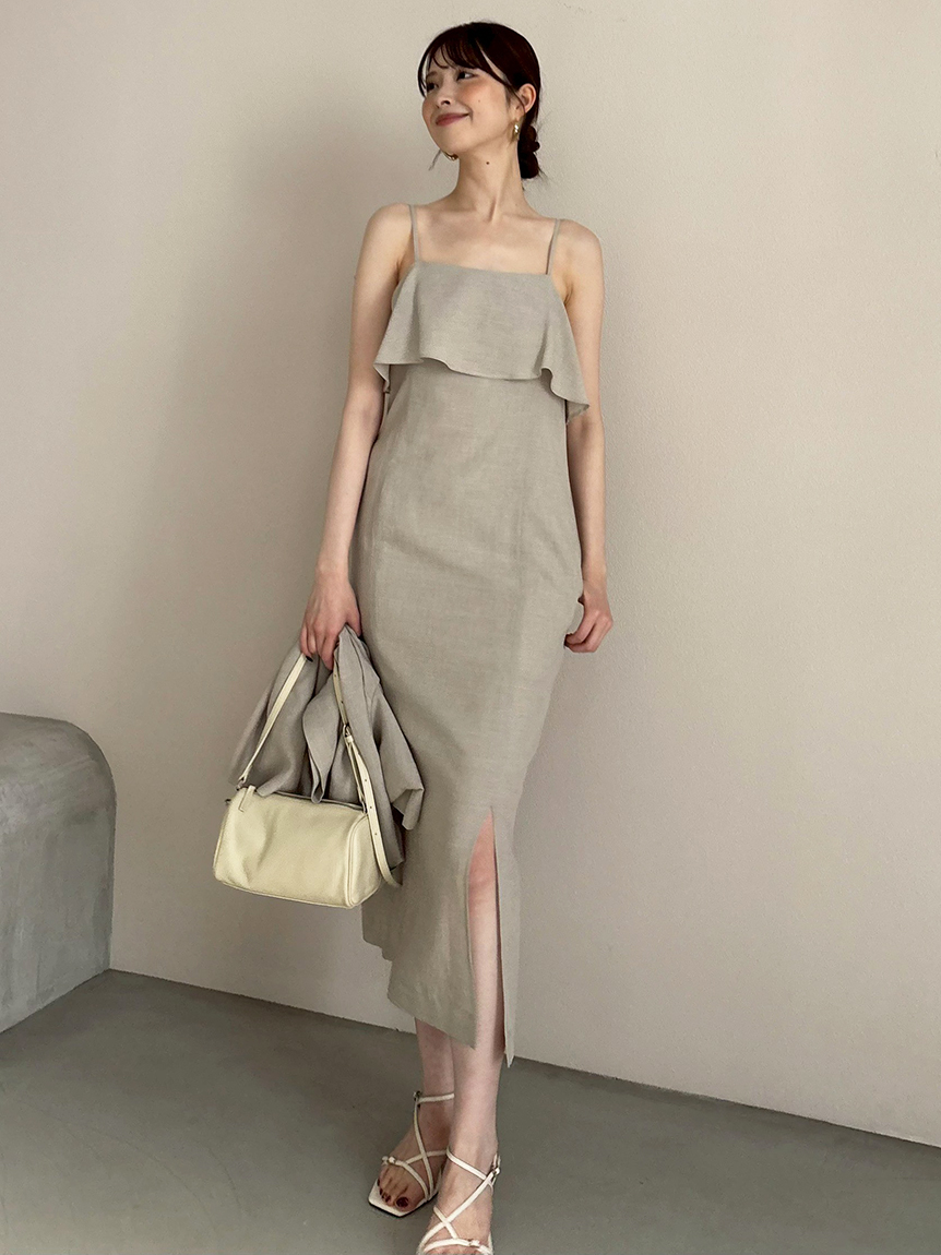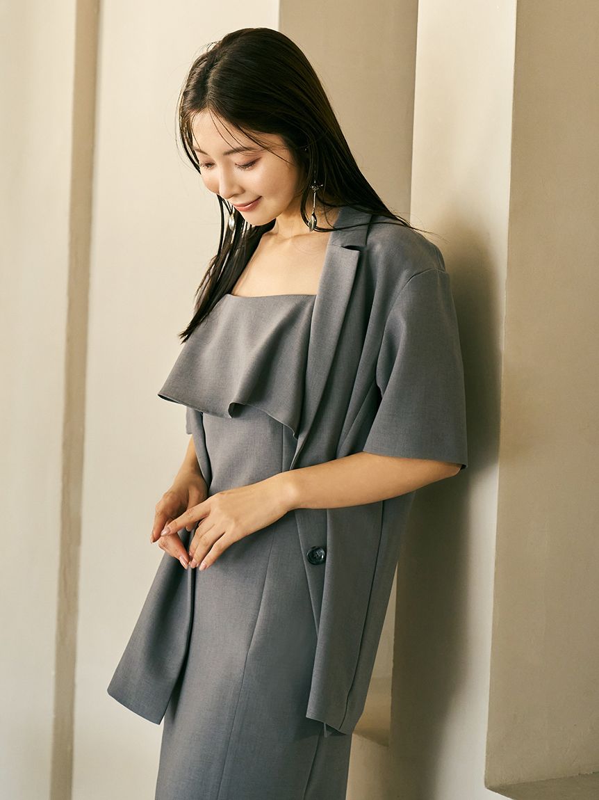 【可手洗防皺-荷葉邊華麗洋裝 — 建議與同款外套打造套裝造型】