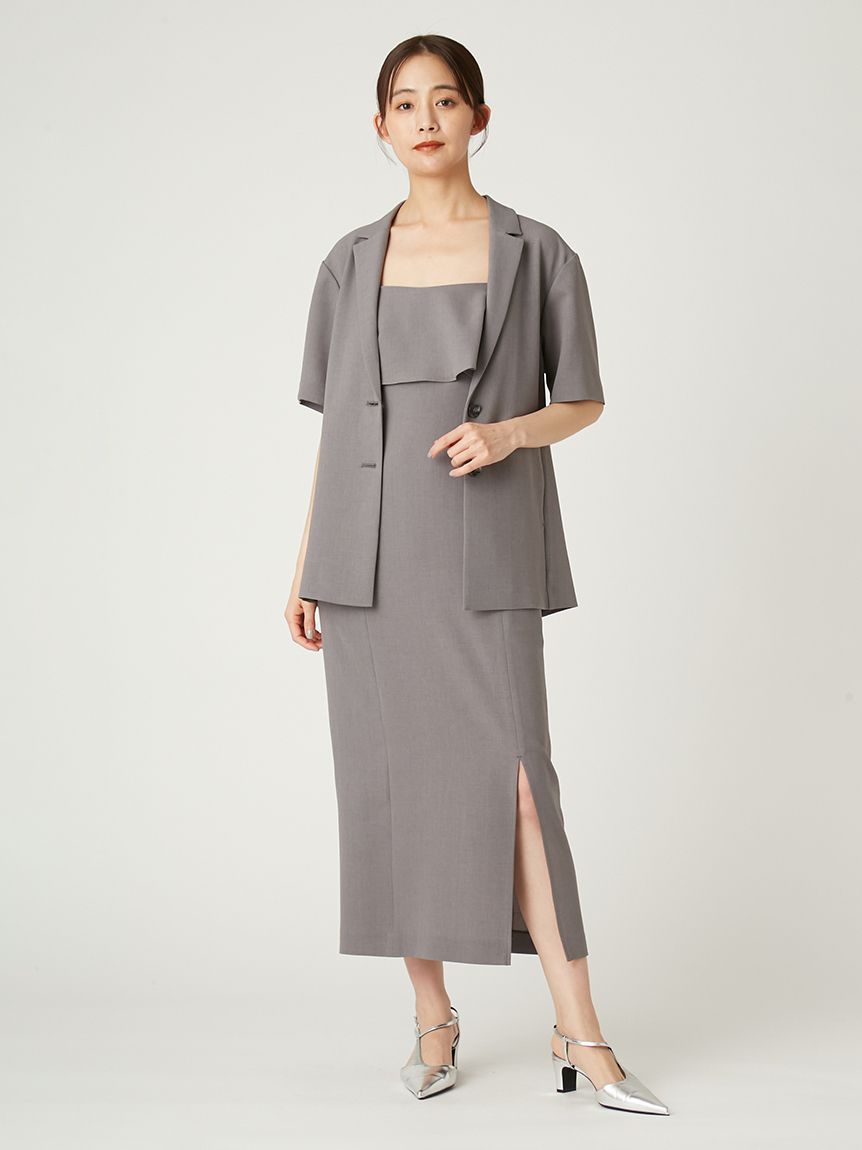 推薦與同素材同色系的半袖短版外套(FWFJ252054)搭配,輕鬆打造完美套裝造型。