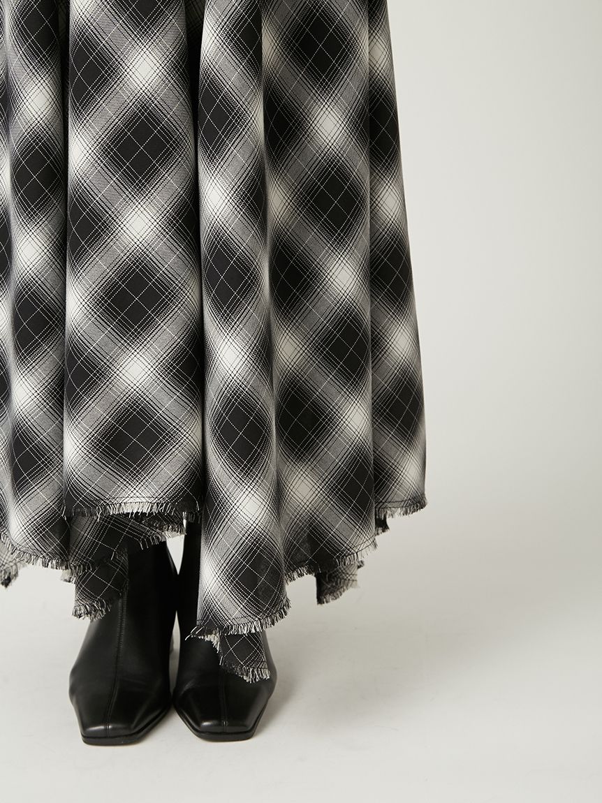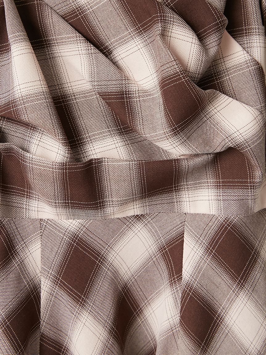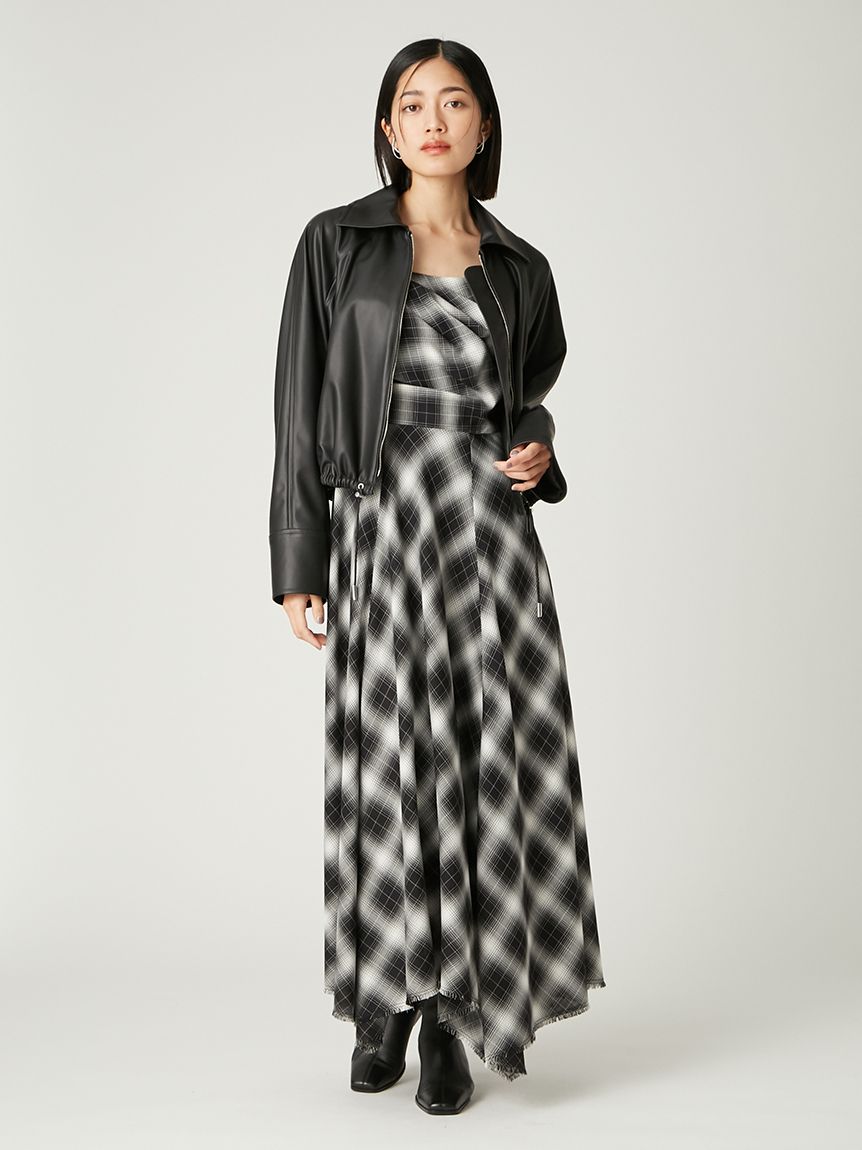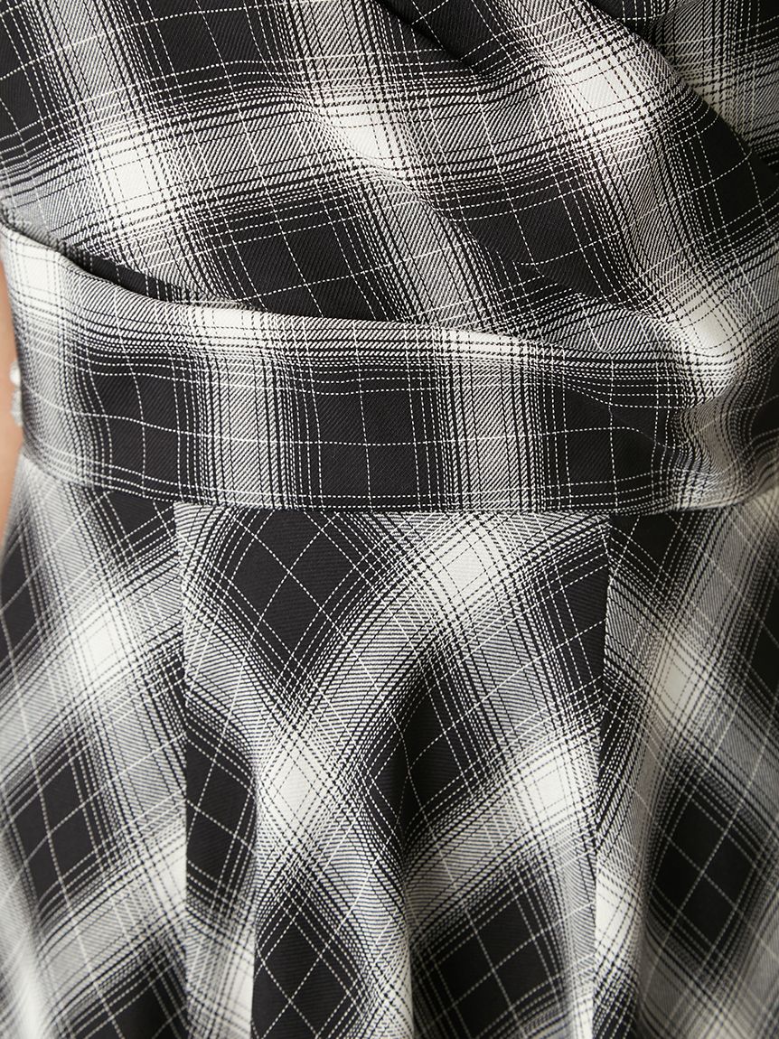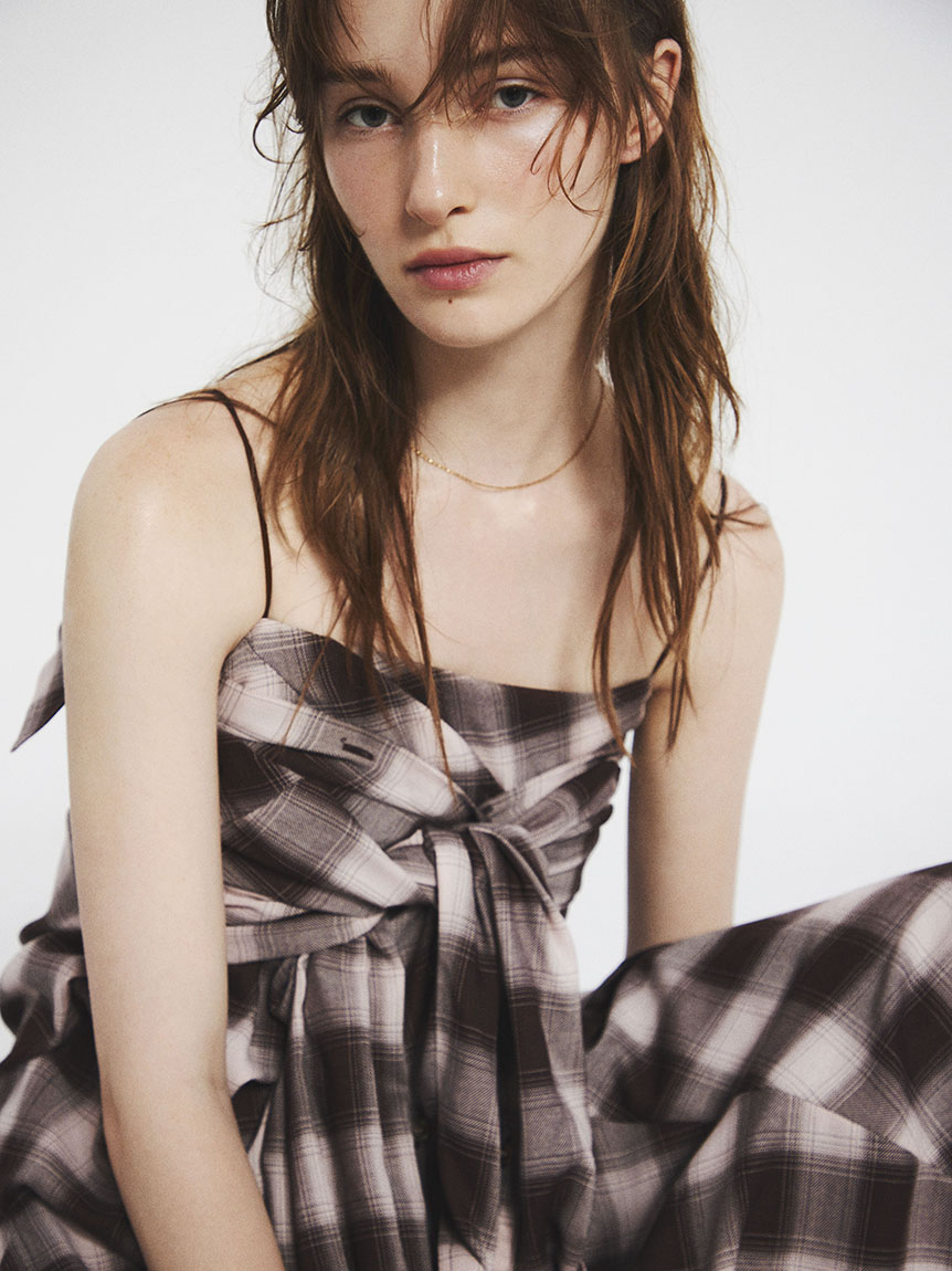 採用 FRAY I.D 原創先染漸層格紋布料 打造的細肩帶洋裝。