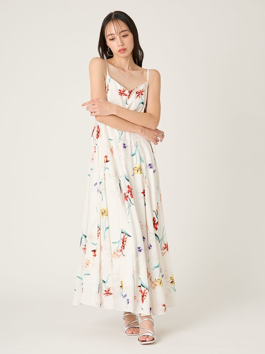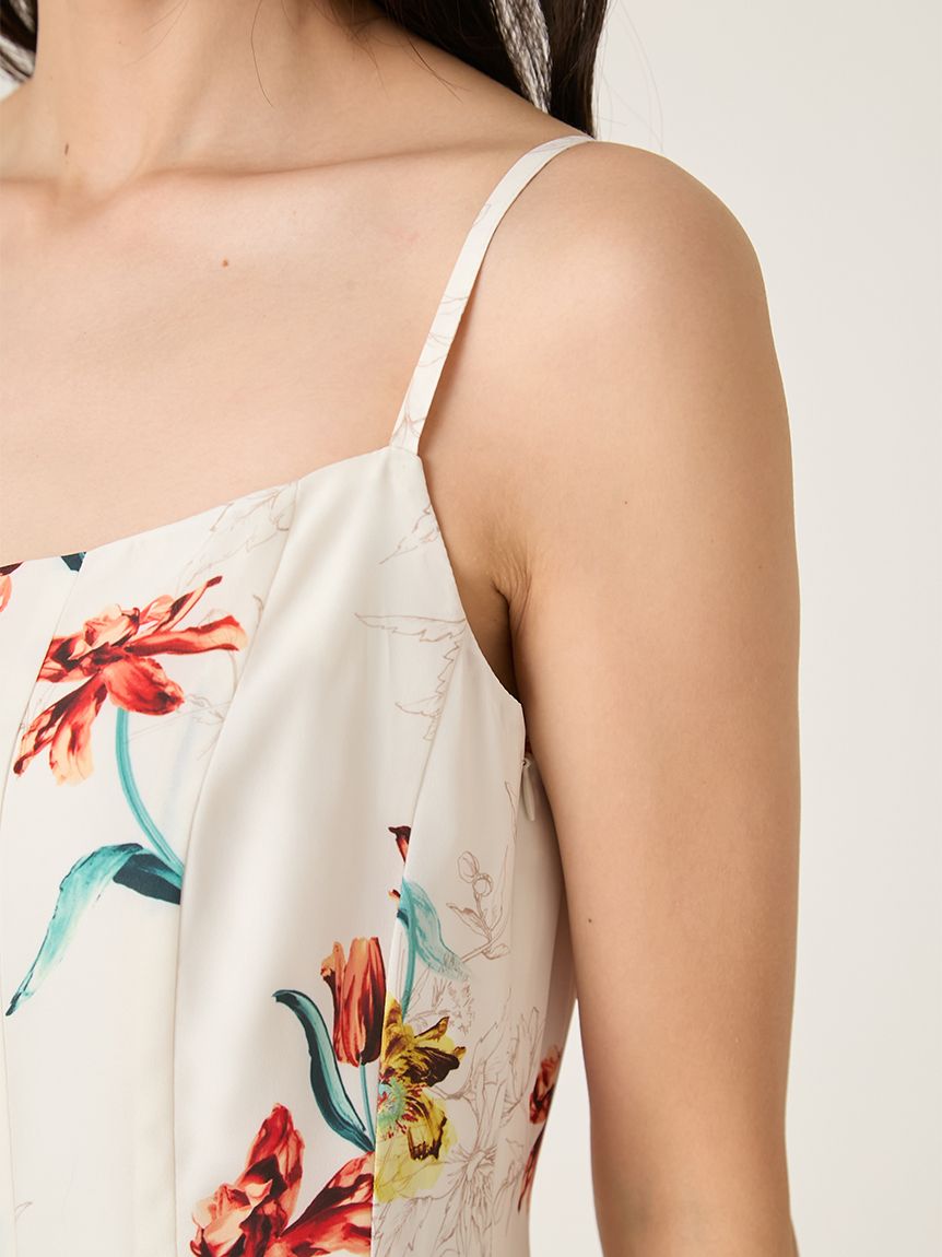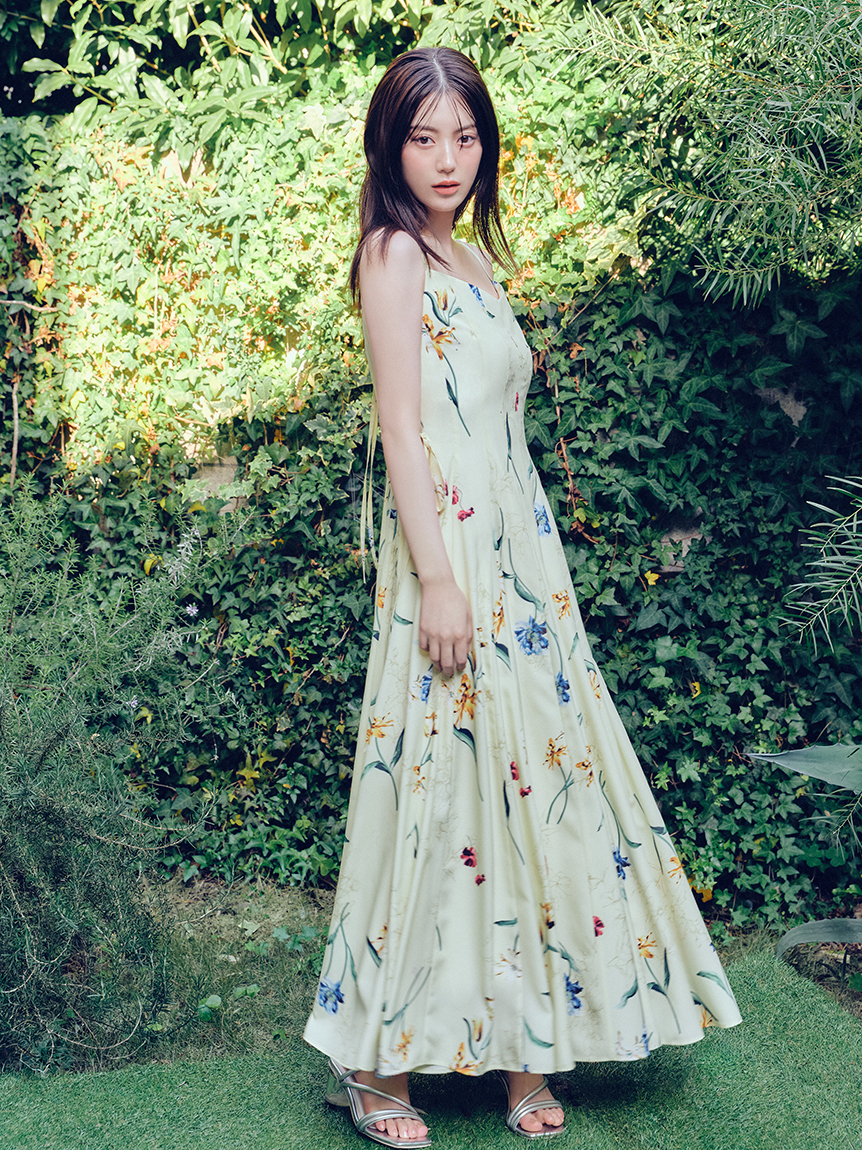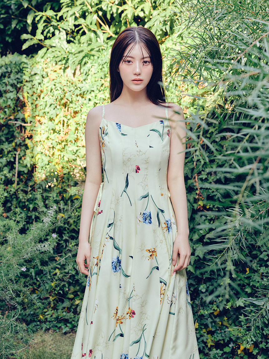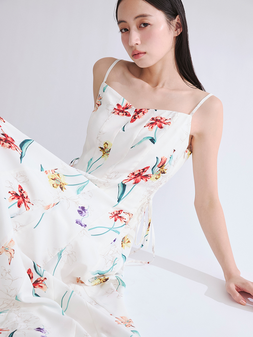 精緻華麗的植物圖騰,讓人感受到春天氣息的吊帶洋裝。