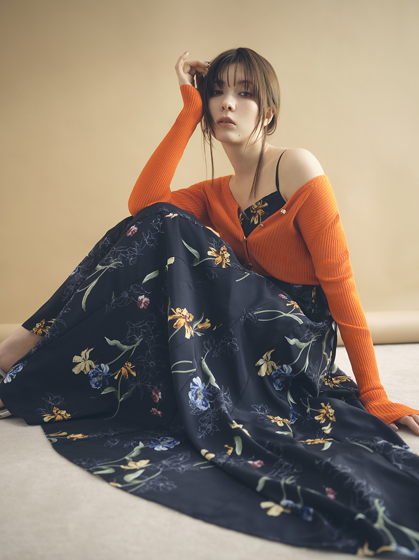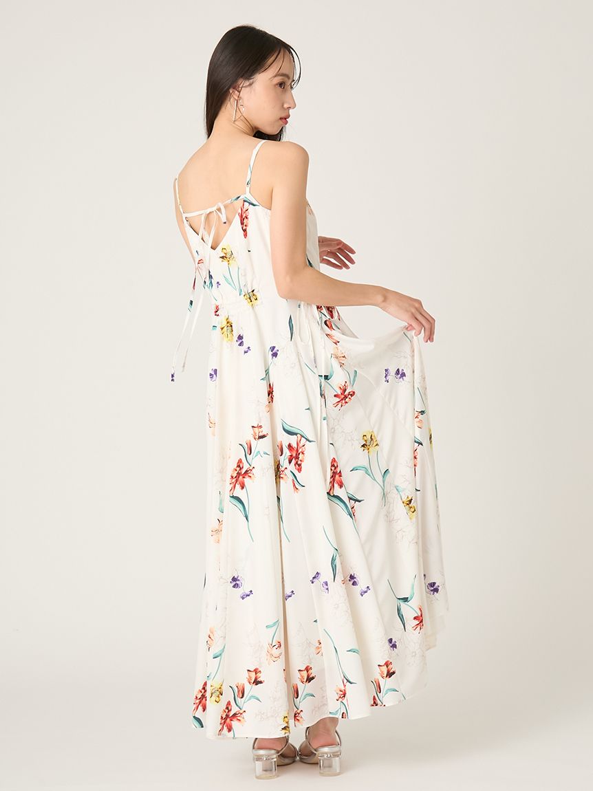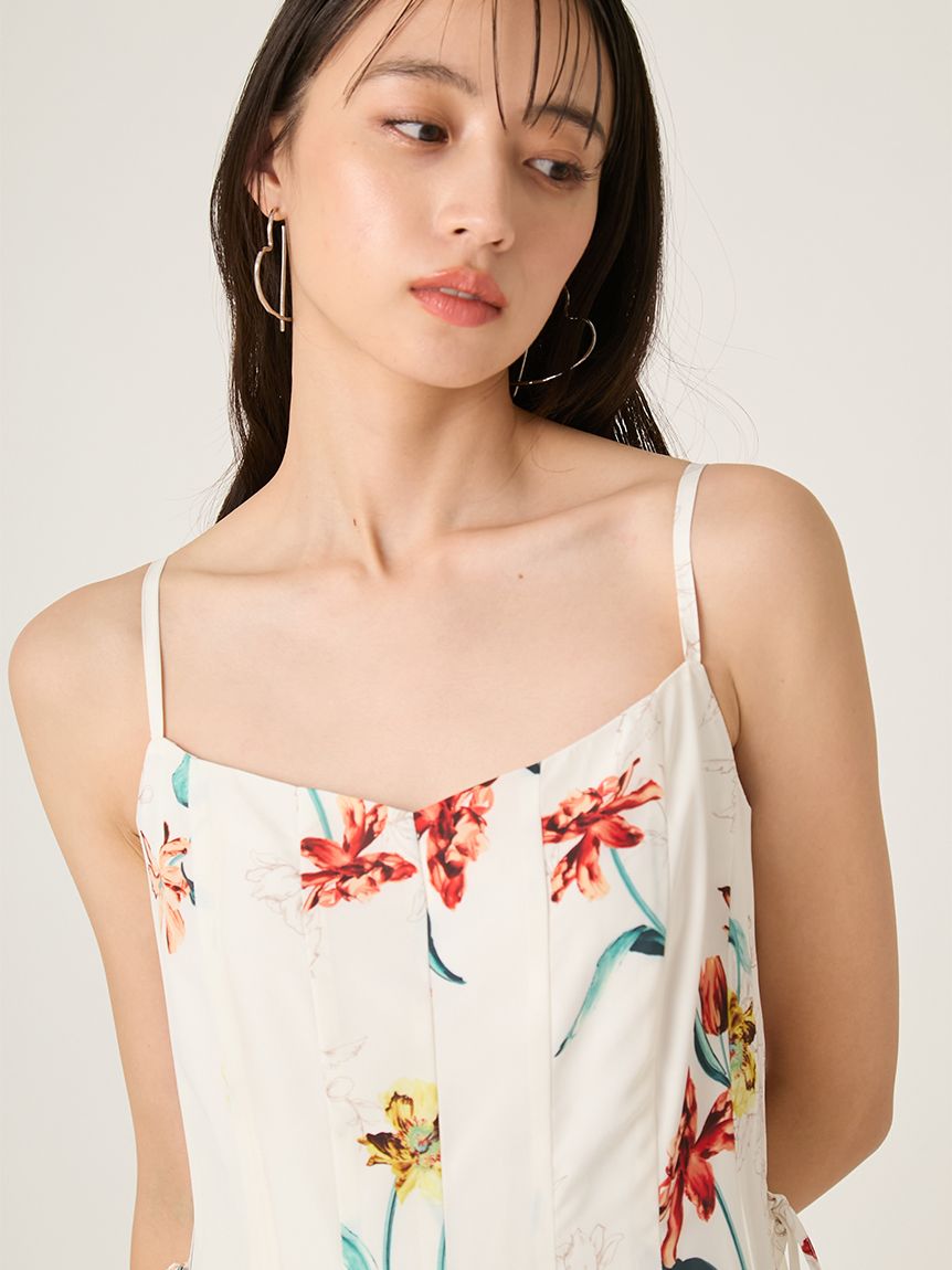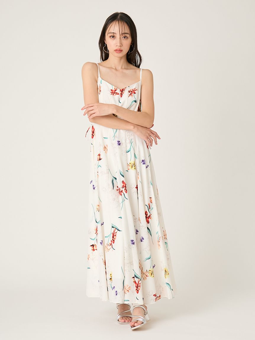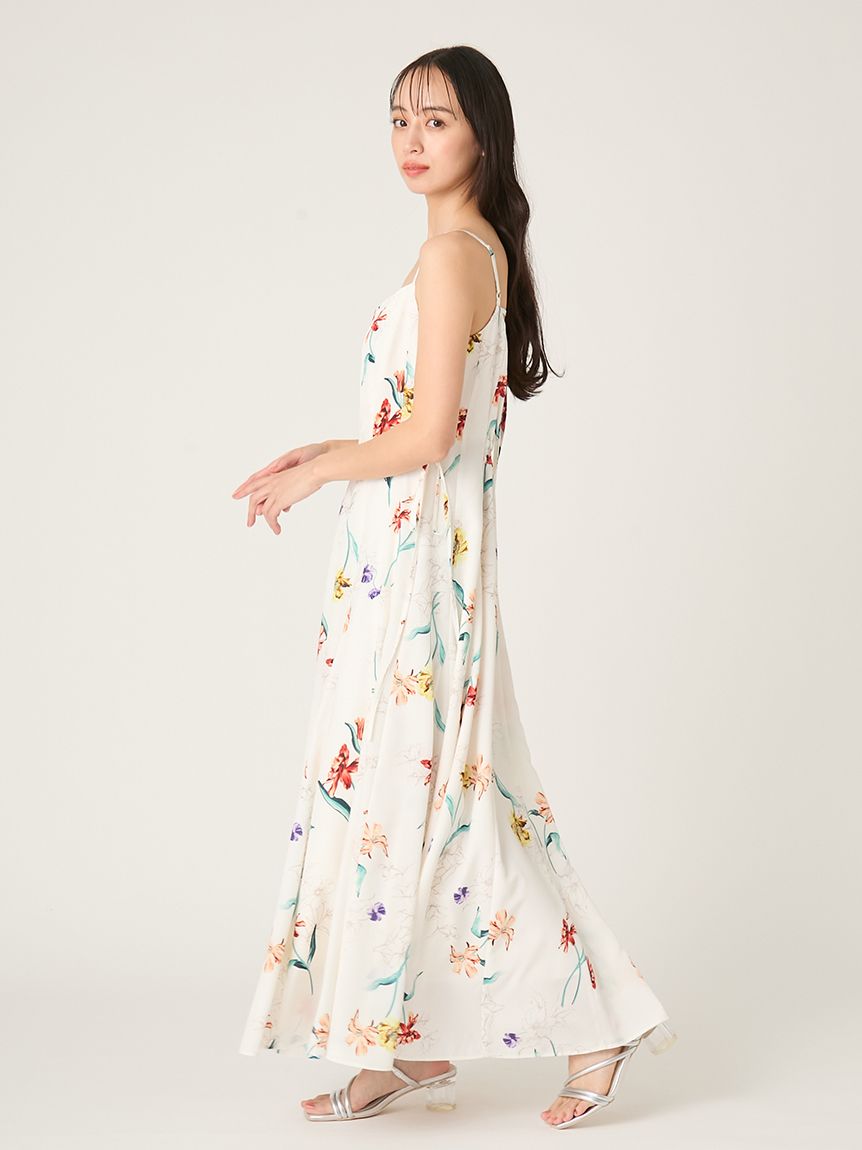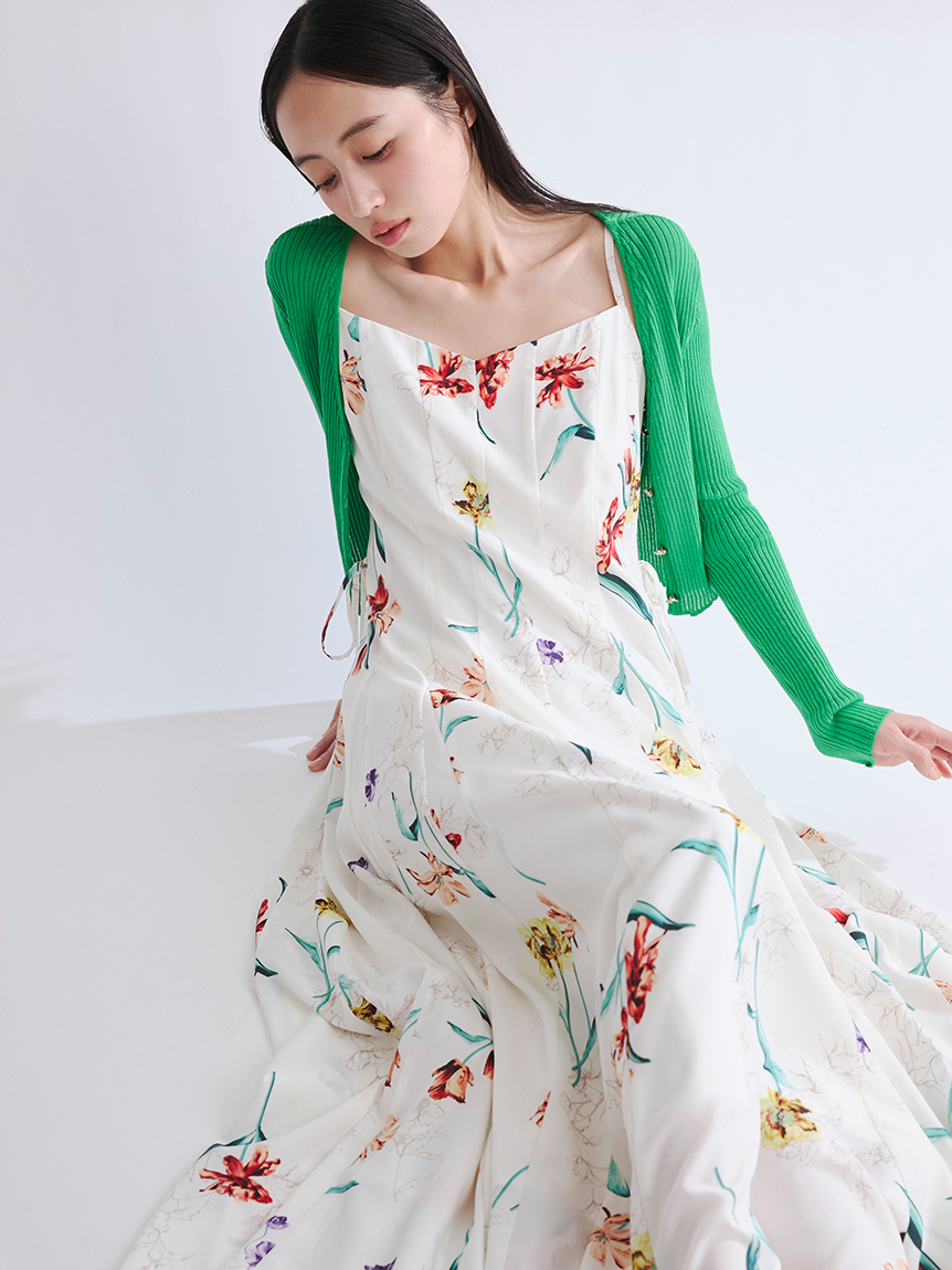精緻華麗的植物圖騰,讓人感受到春天氣息的吊帶洋裝。