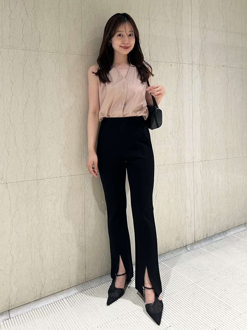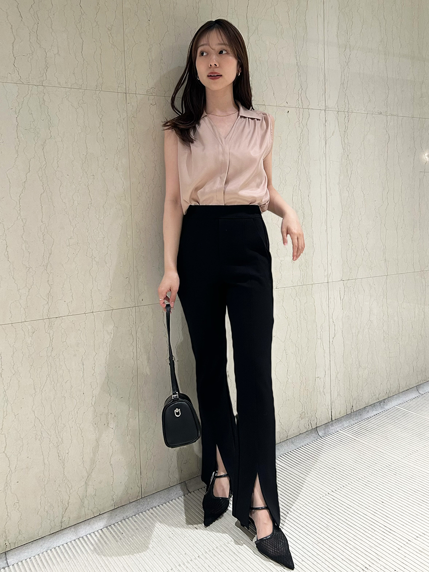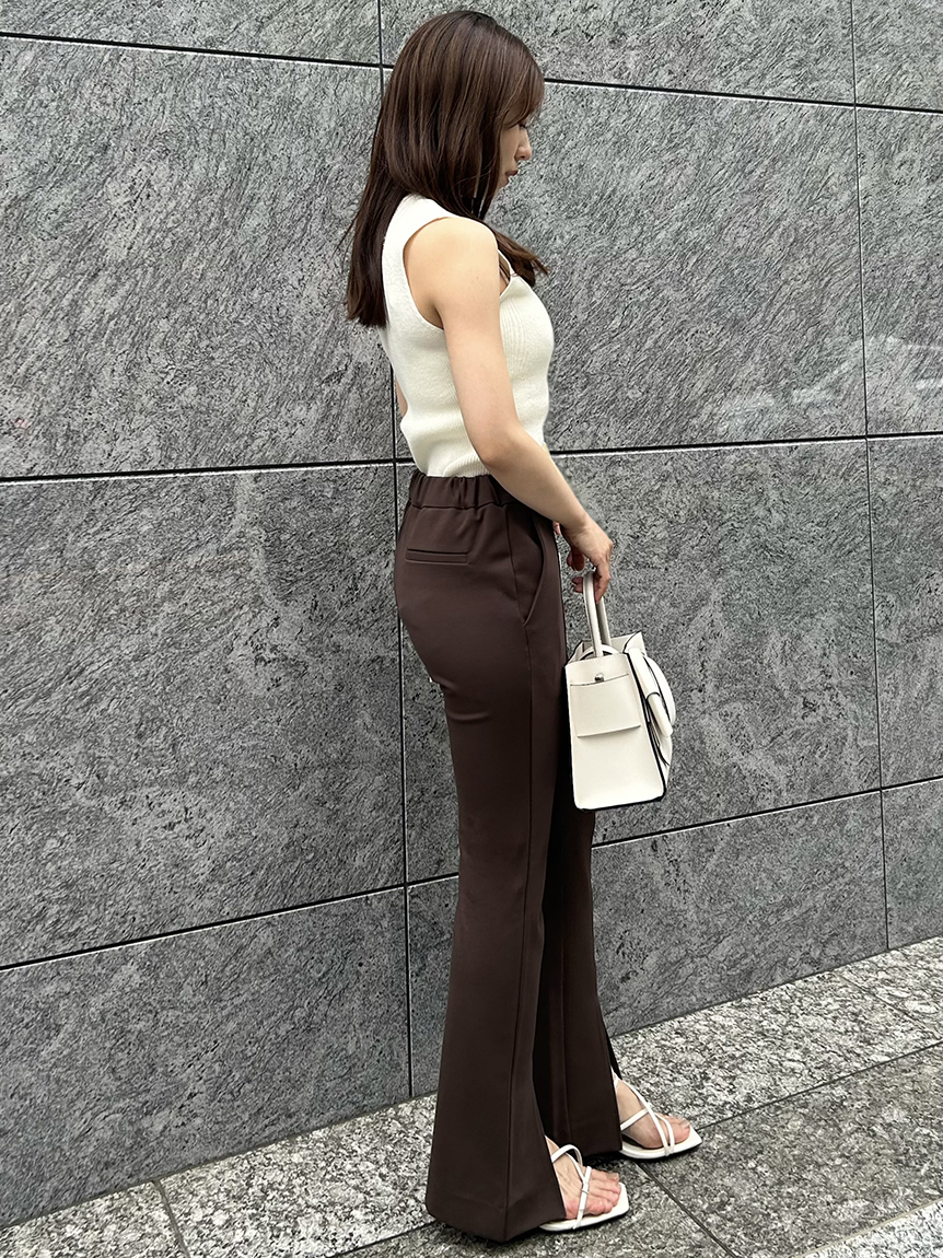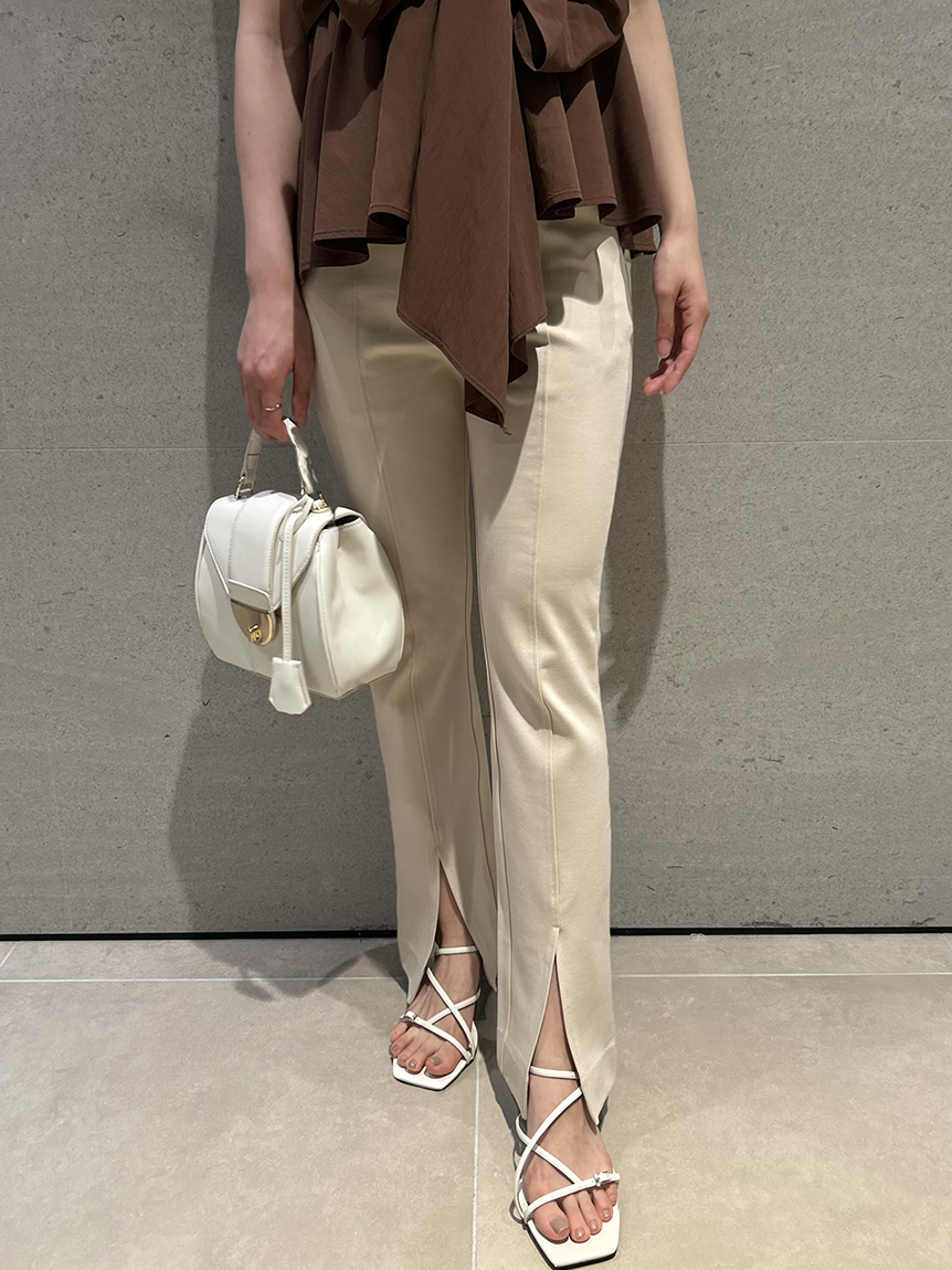 褲腳前側開衩設計與中央的打摺細節,更具修飾比例的效果。