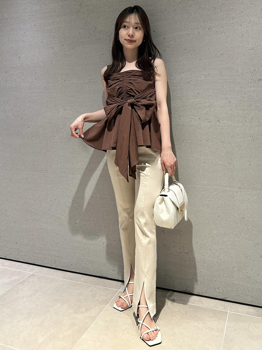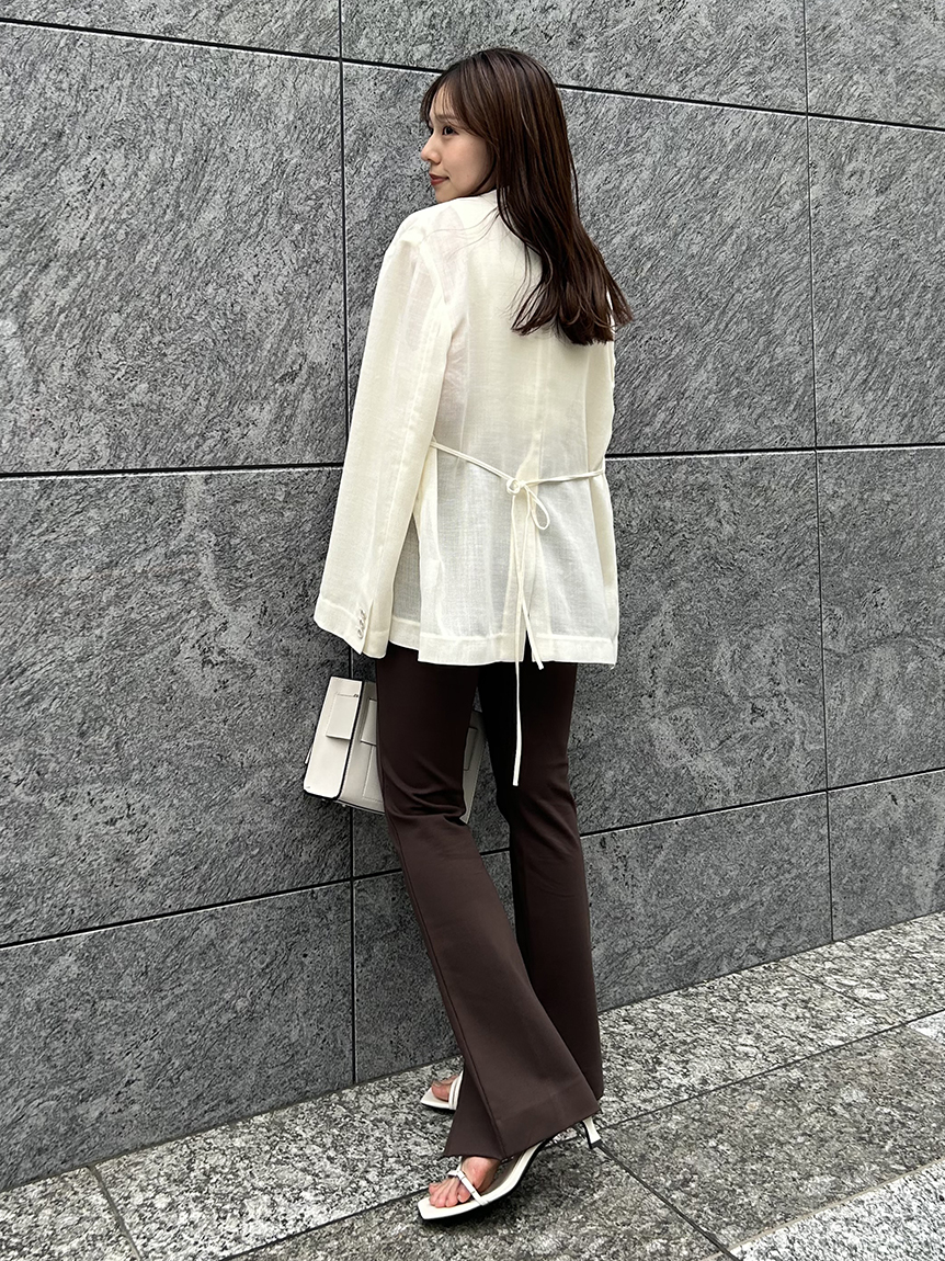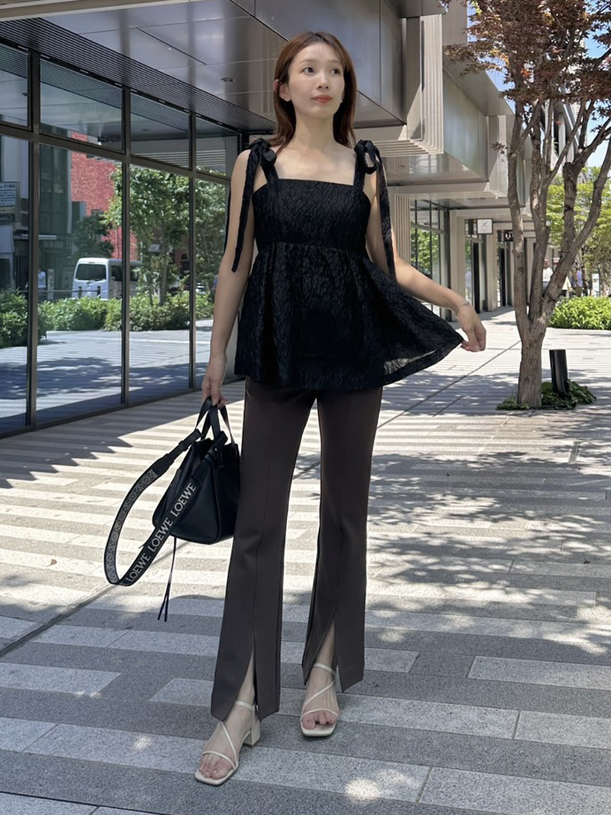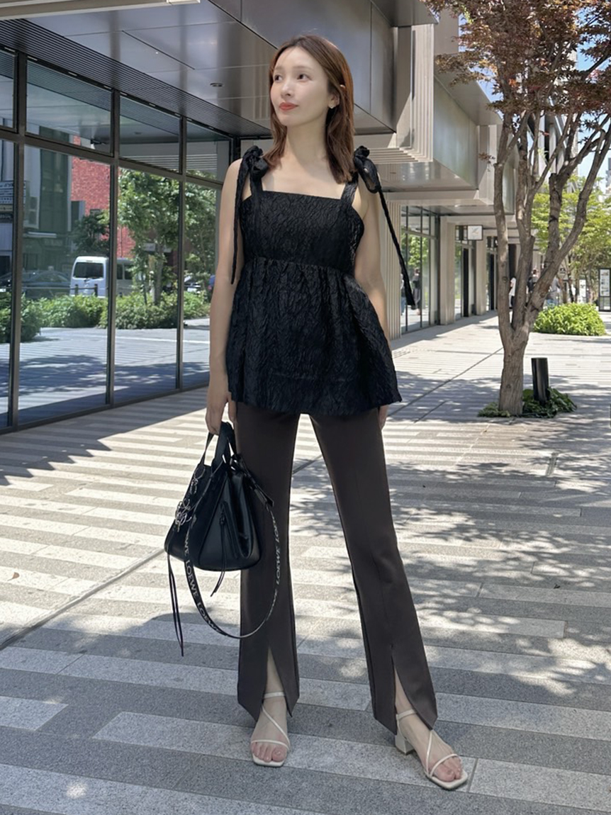 褲腳前側開衩設計與中央的打摺細節,更具修飾比例的效果。