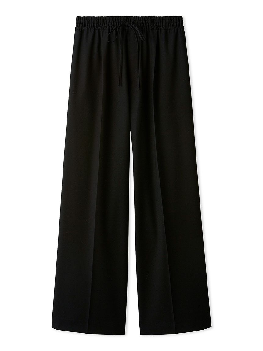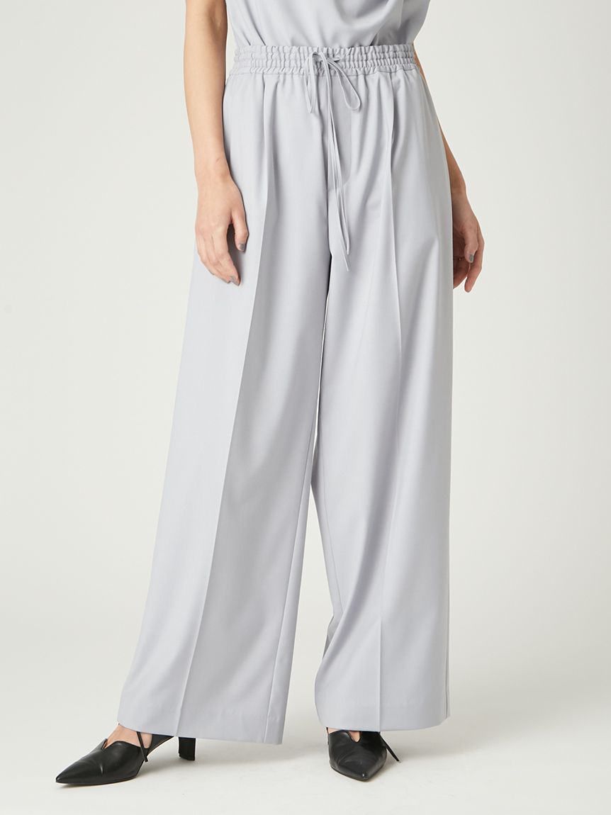【可水洗】【接觸涼感】【抗起球】【採用彈性腰頭設計,兼具寬鬆版型與俐落輪廓的優雅寬褲】