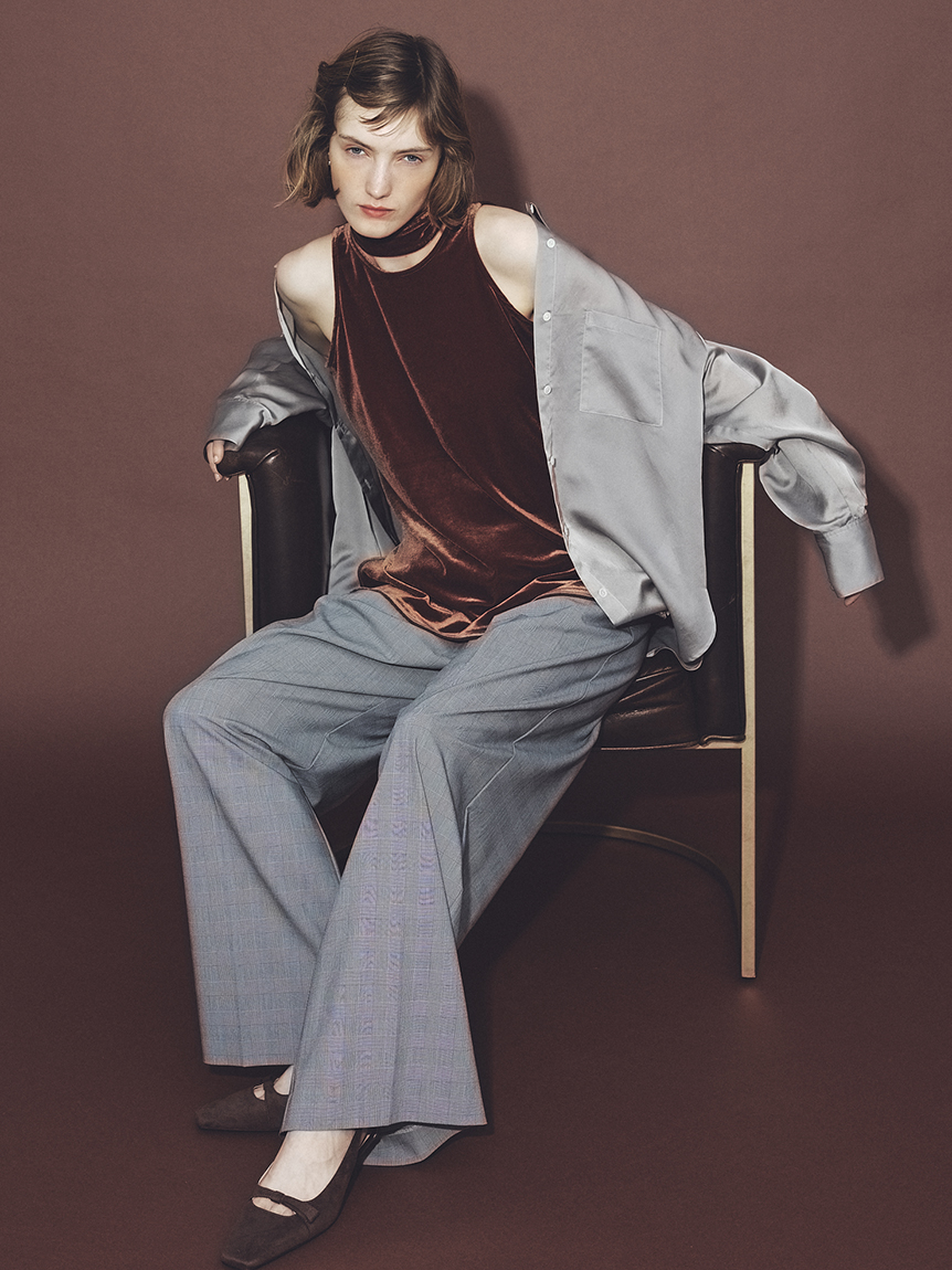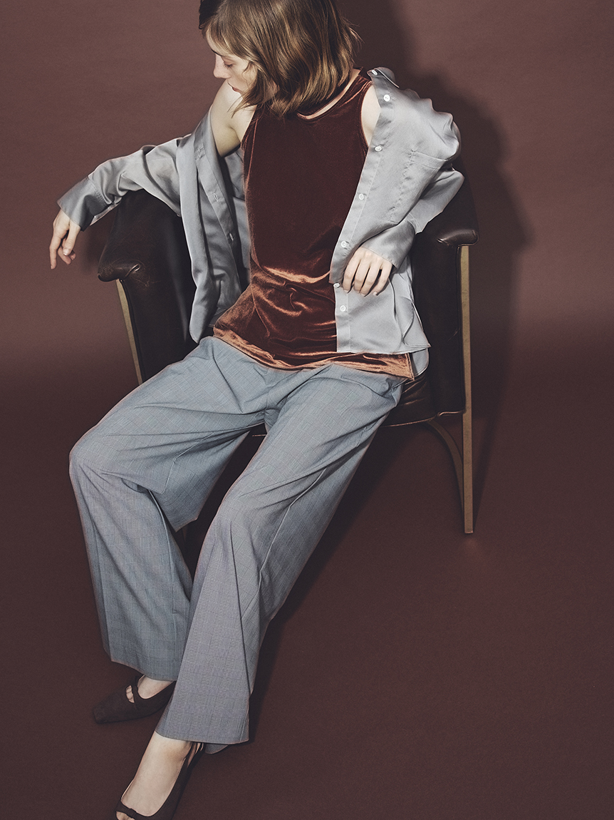 推薦搭配同材質不對稱襯衫(FWFB254165)組成套裝,展現優雅氣質。