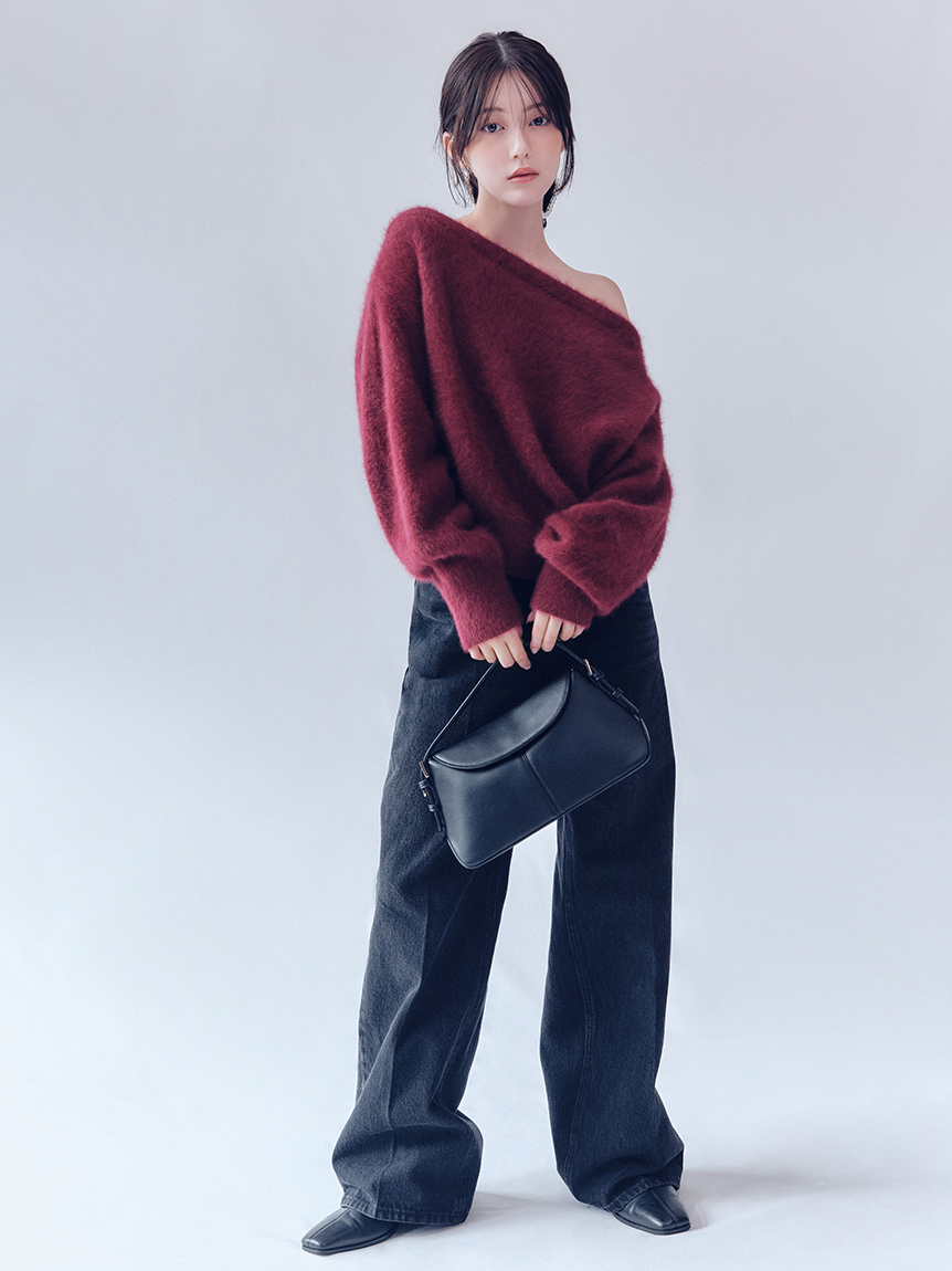 以寬度恰到好處的寬版輪廓為基礎,加上中央壓線設計營造出西裝褲般的俐落感。
