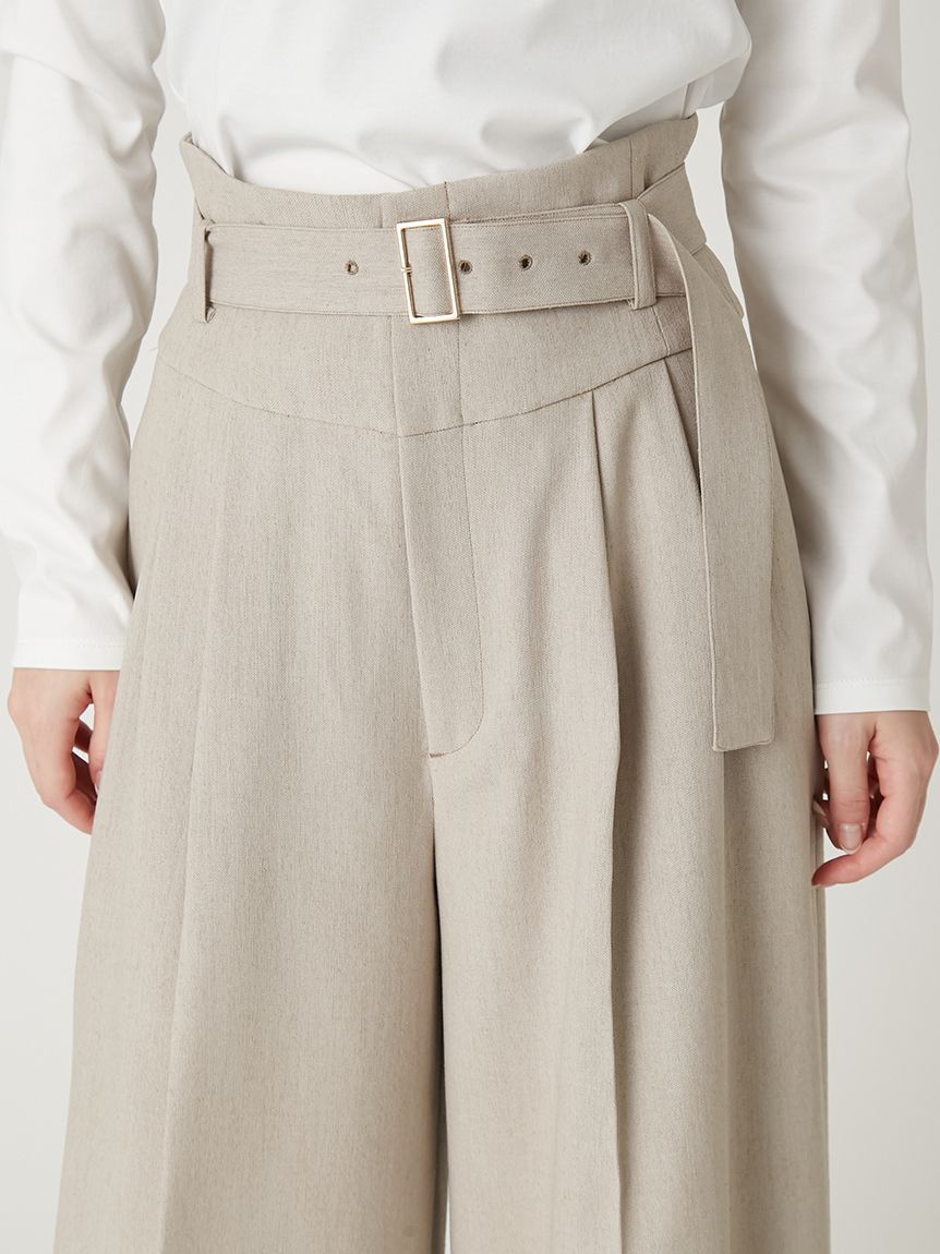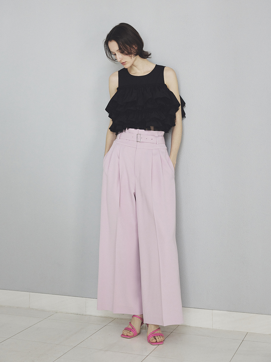 簡約俐落的寬褲,搭配超高腰設計,增添時尚感巧思的一件單品。