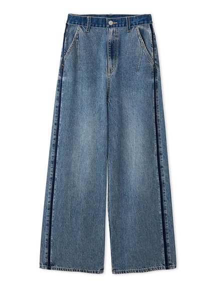 【展現大人運動風的側邊條紋牛仔褲】