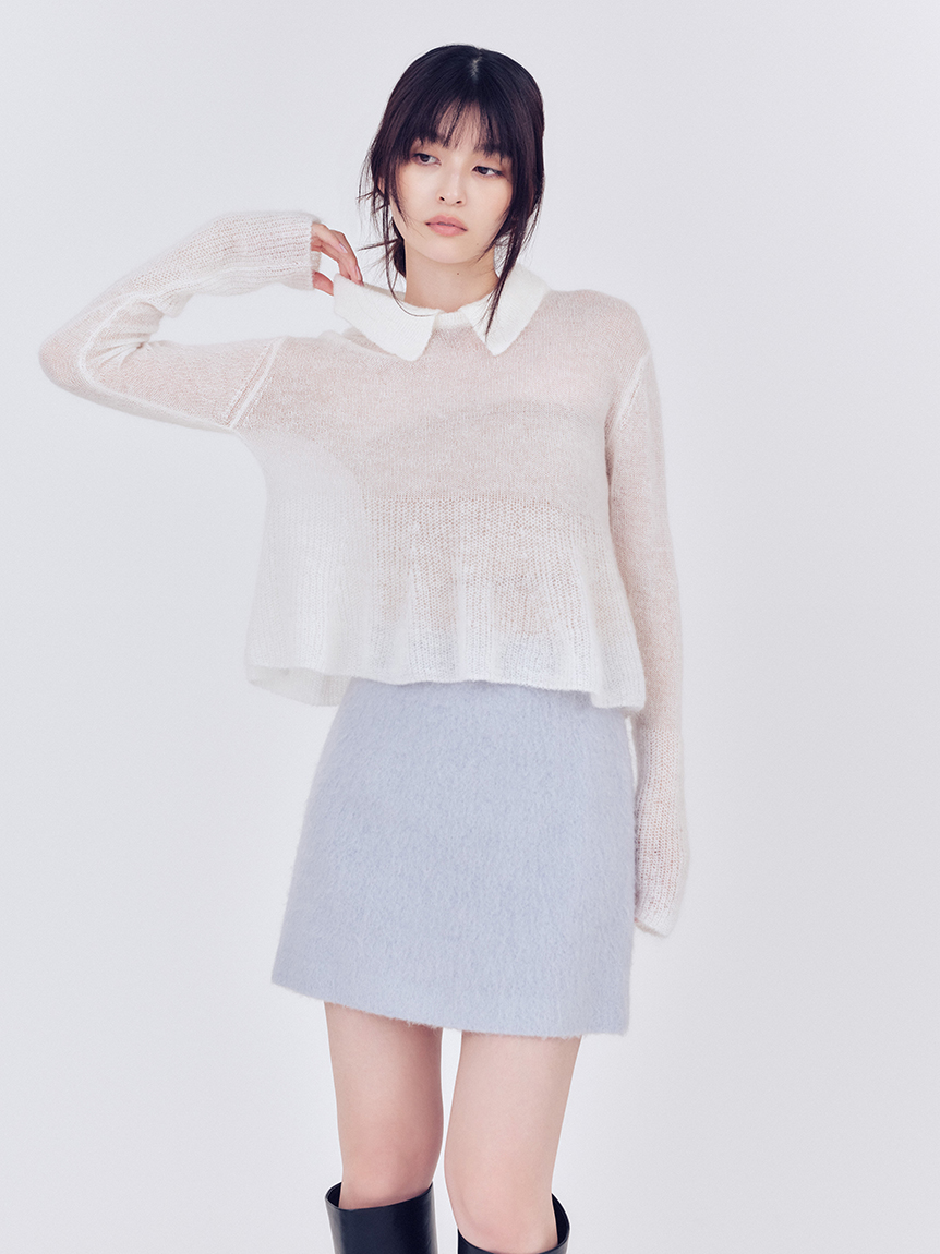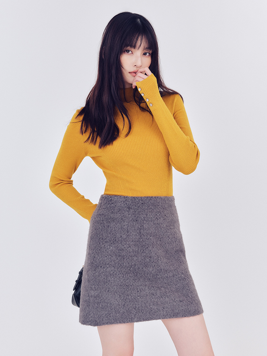 柔軟毛絨材質,營造女性柔美氛圍的迷你裙。
