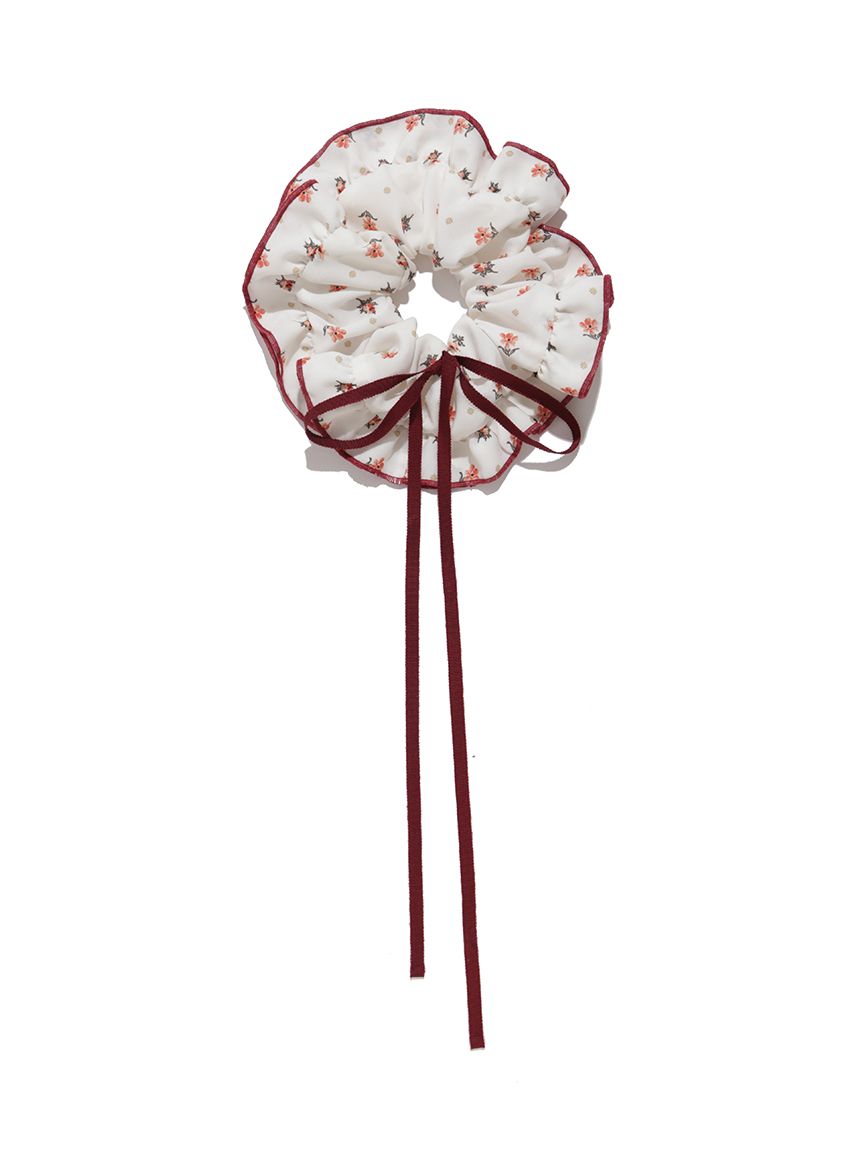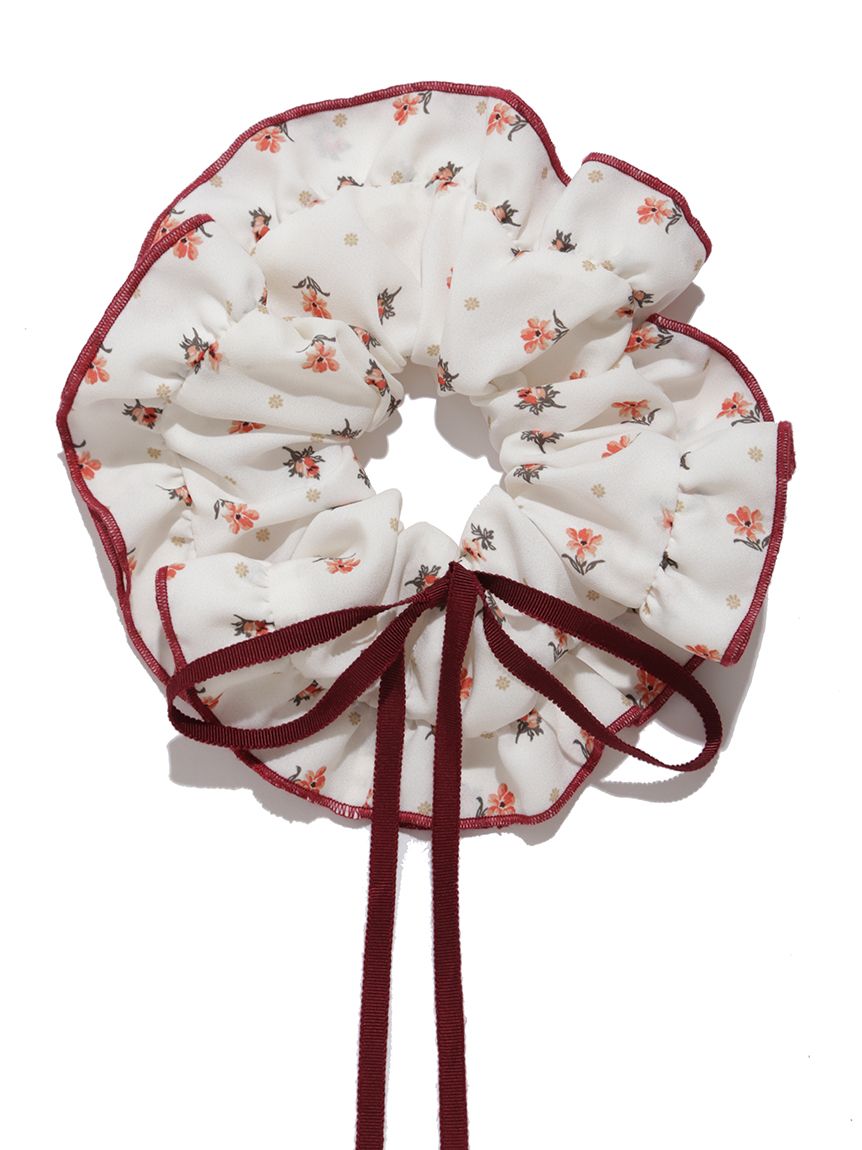 這款小花圖案髮圈採用與洋裝相同的柔軟喬其紗材質,布量充足呈現華麗蓬鬆感。附贈細緻雷恩絲緞帶,可直接結垂或編成髮型裝飾。