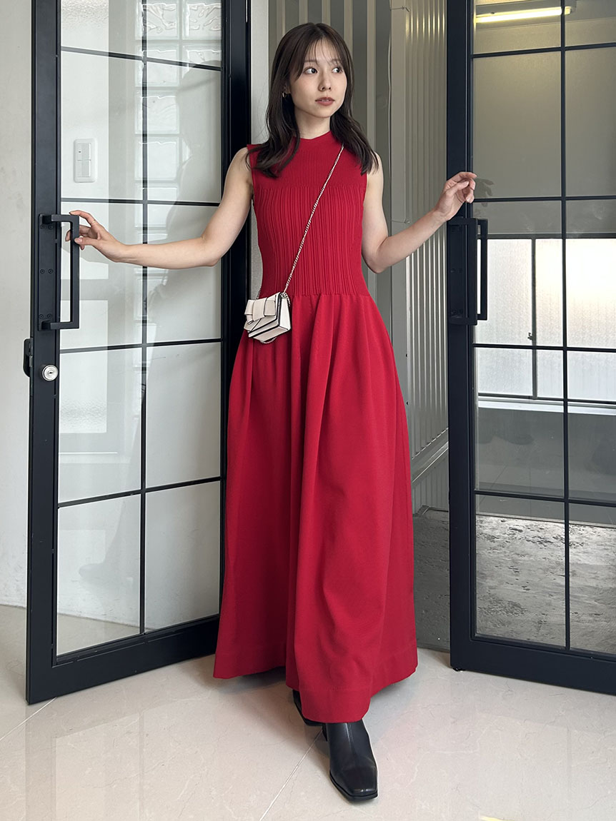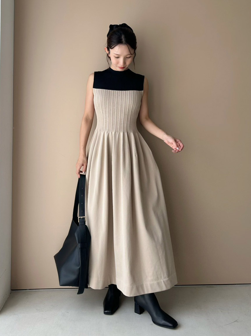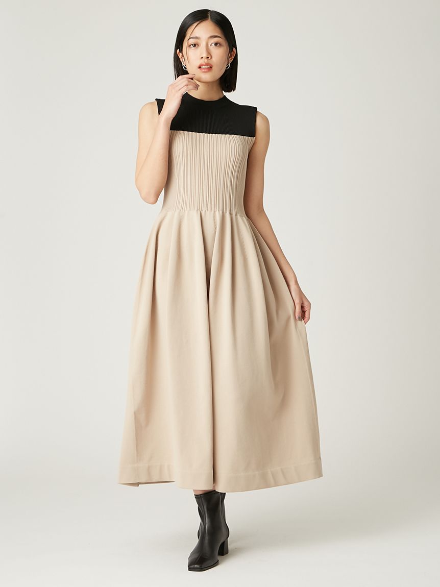 【立體剪裁修飾身形的無袖針織洋裝。一體成型展現奢華質感】