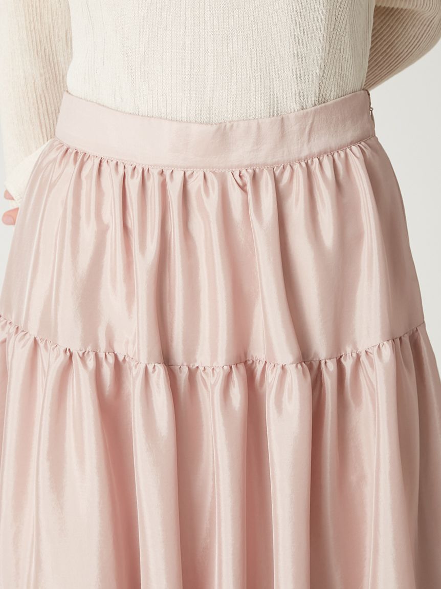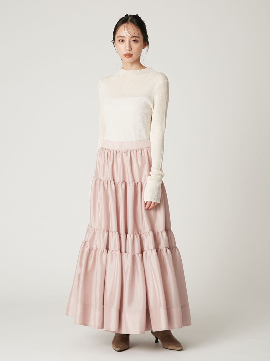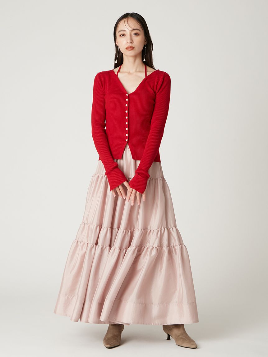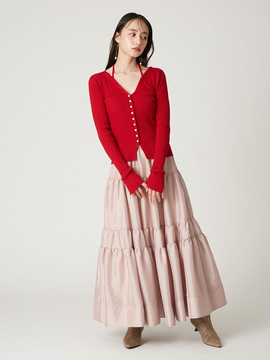 層疊裙採用豐盈蓬鬆的剪裁,與開襟衫搭配時能突顯明暗對比。
