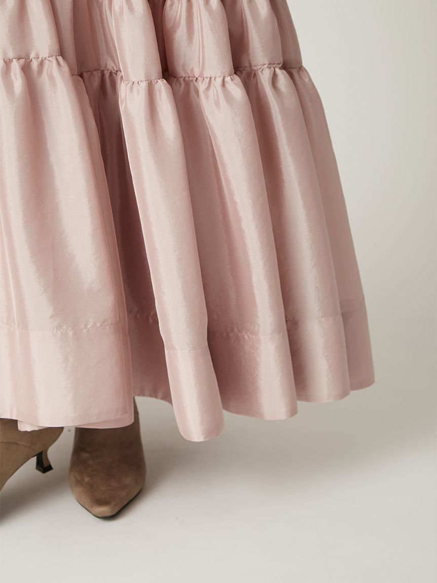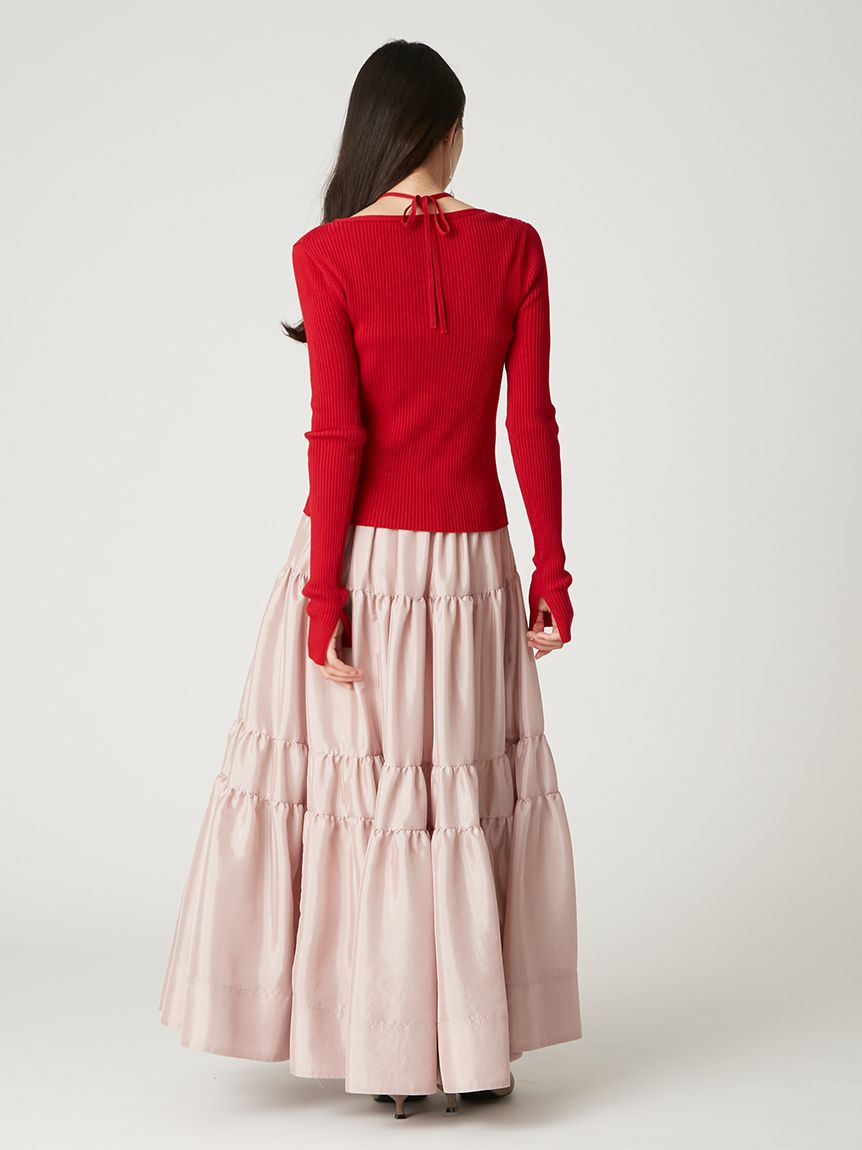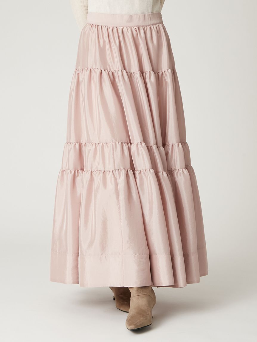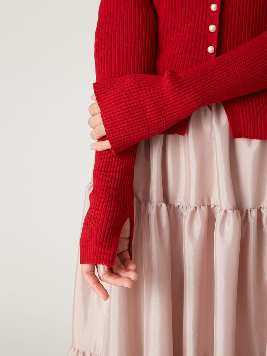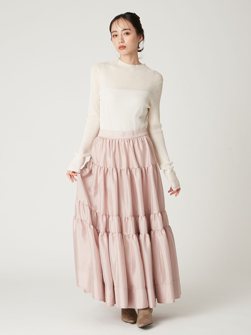 層疊裙採用豐盈蓬鬆的剪裁,與開襟衫搭配時能突顯明暗對比。