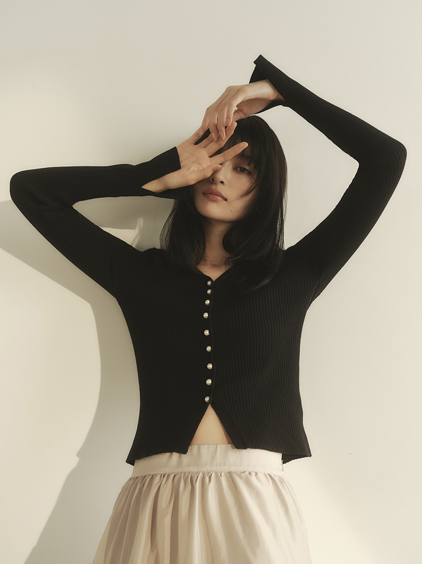 細緻羅紋織法營造出舒適貼合感,襯托出性感曲線,散發淡淡的嫵媚氣息。下襬開衩與袖口開衩設計,更是營造迷人空隙感的關鍵。