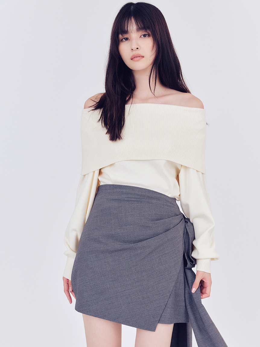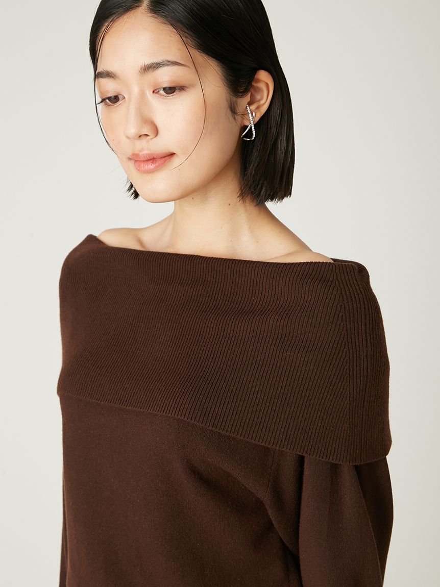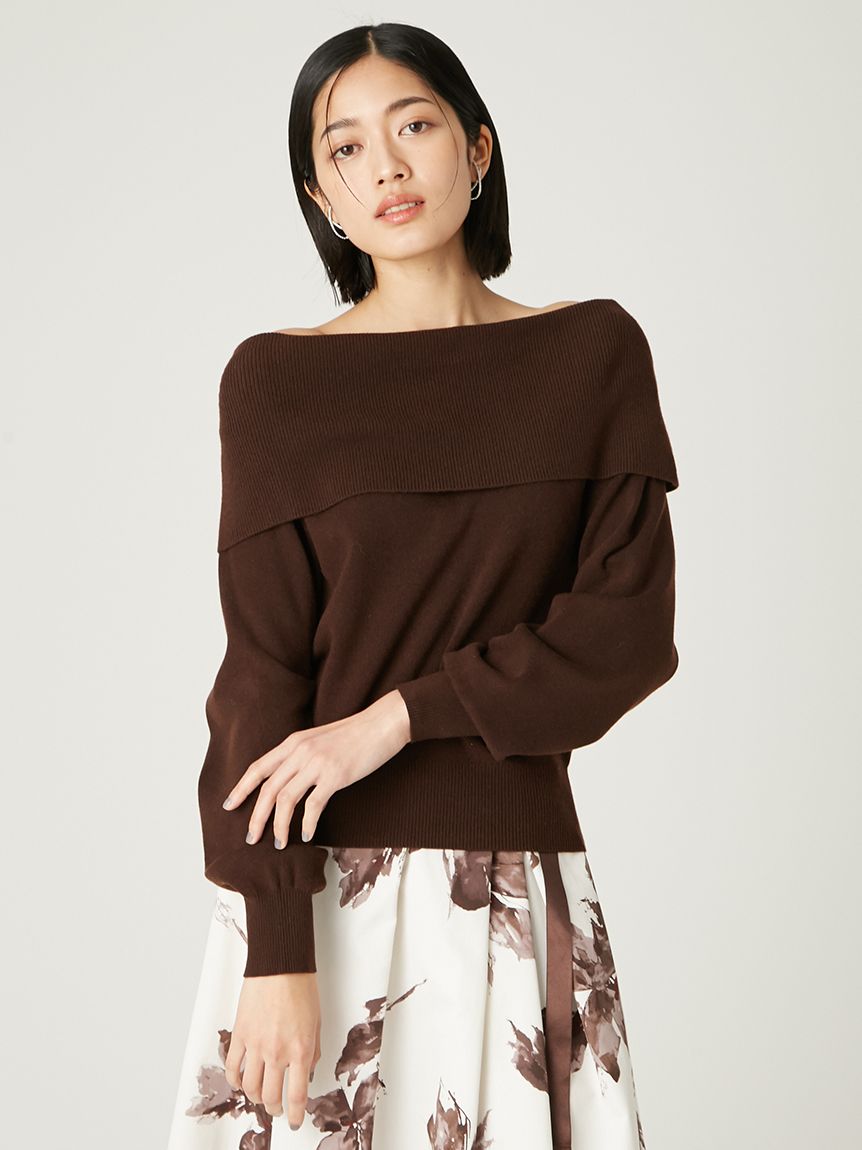 每年熱賣的優雅一字領針織上衣,今年全新改版。採用羊絨混紡細線,帶自然光澤與柔軟觸感,穿著舒適且溫暖。