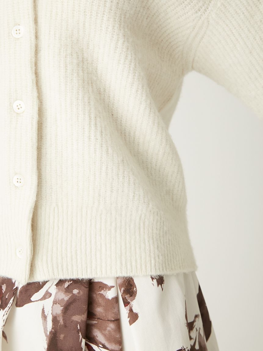 採狐狸毛與羊毛混紡中空紗,輕盈保暖,同時鎖住體溫,穿著舒適不厚重。