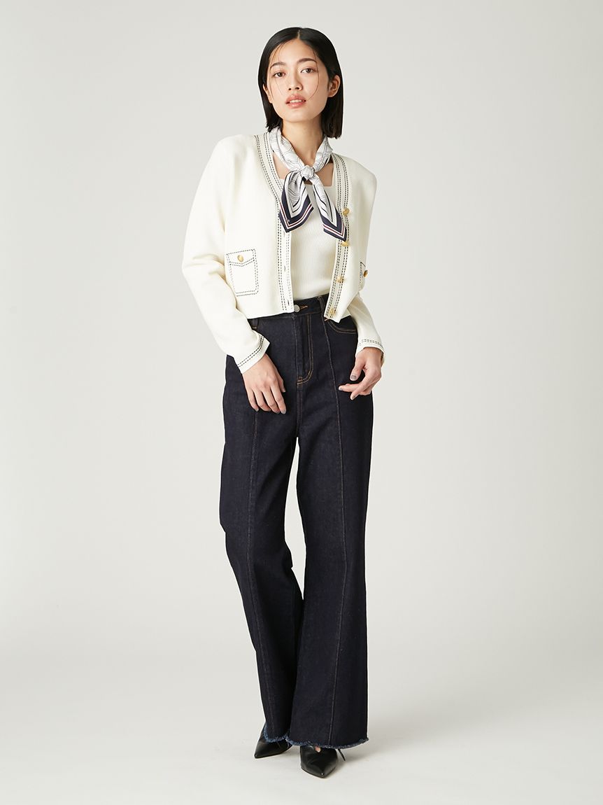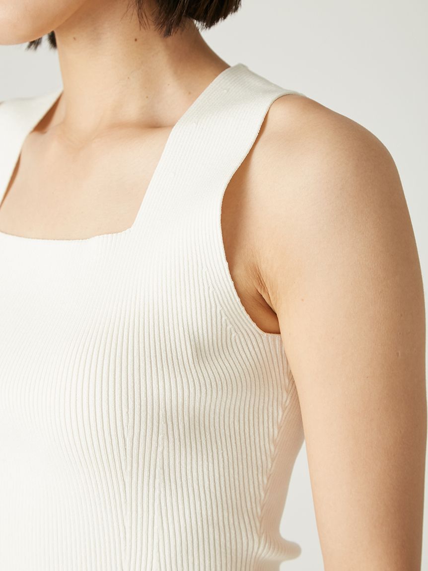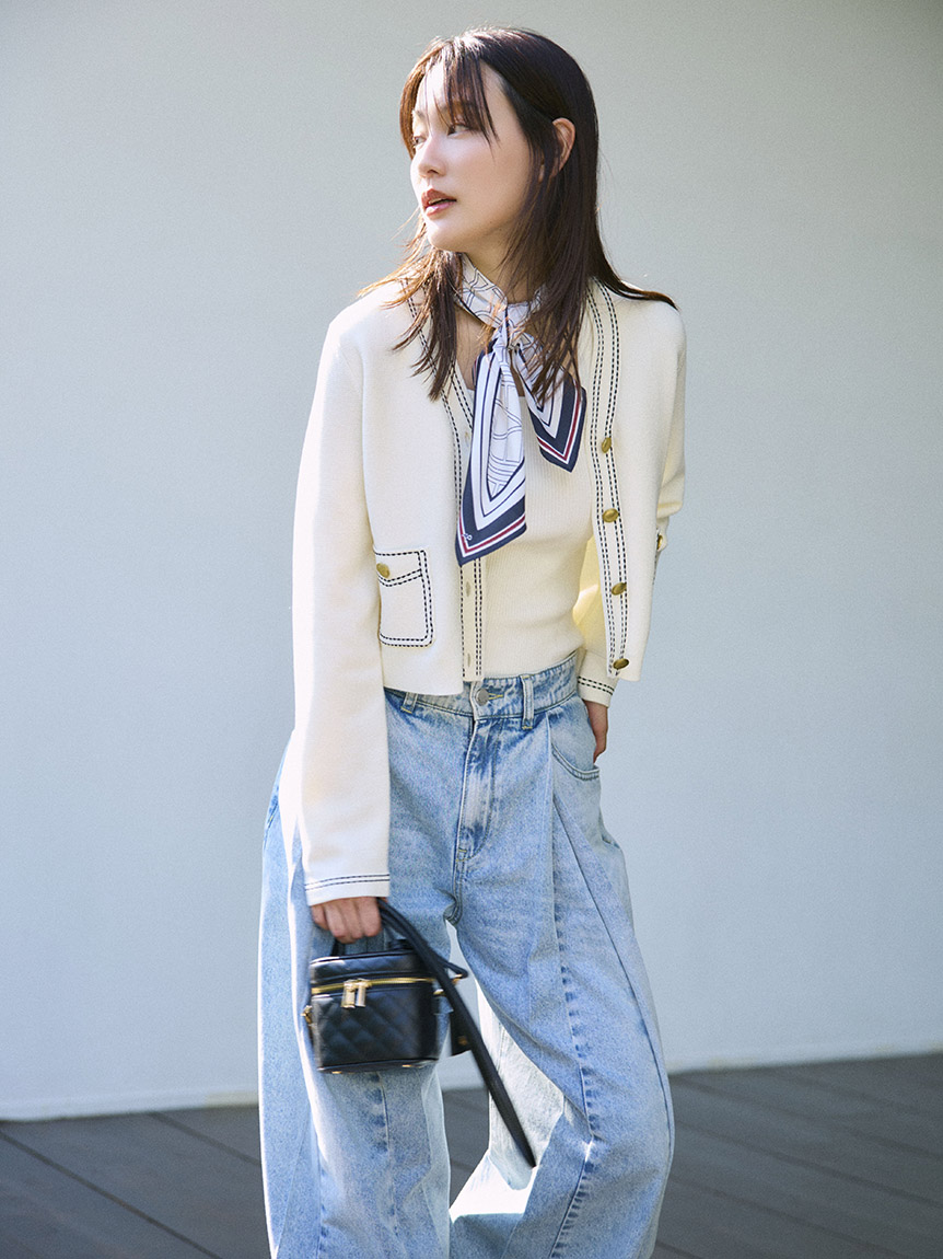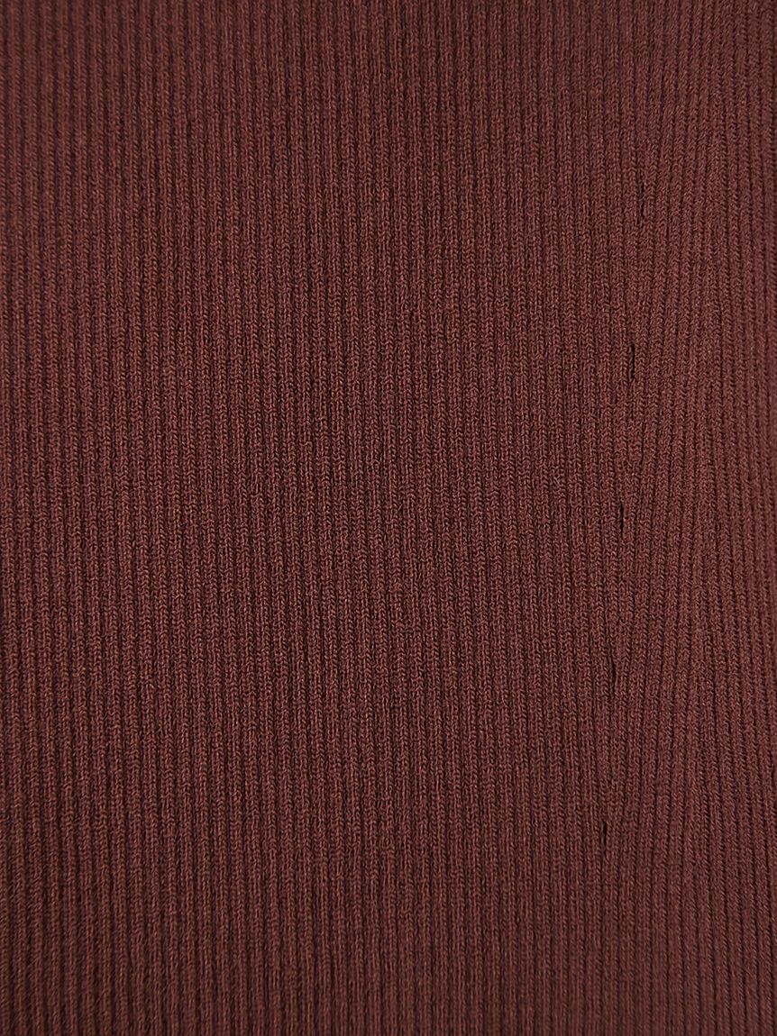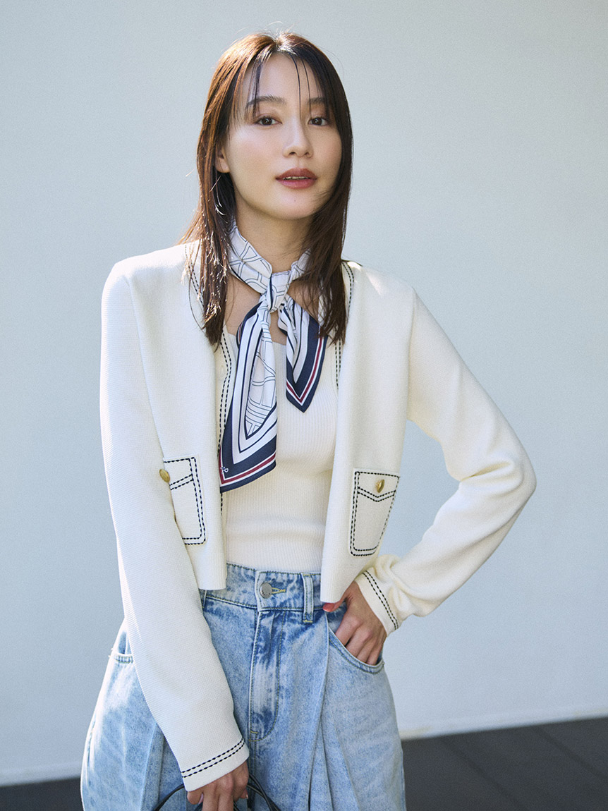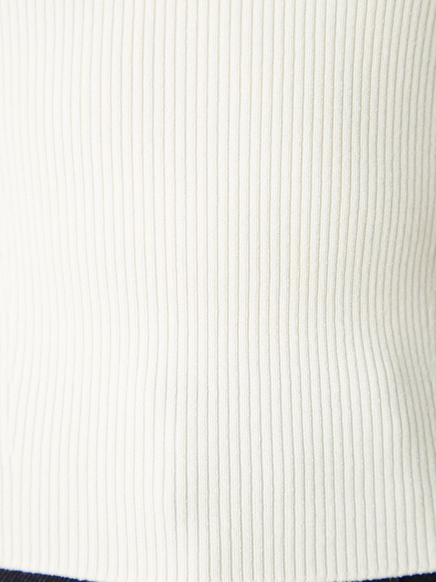 上身以細羅紋編織呈現俐落線條,材質帶有適度厚度,不會過度顯露身形,兼具舒適與修飾。立體編織結合修身比例設計,讓整體更具修長效果。領口採用方領設計,襯托鎖骨線條。