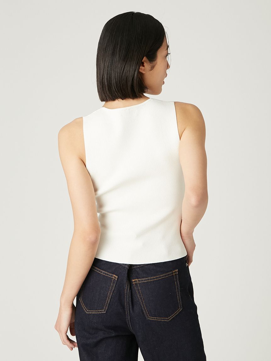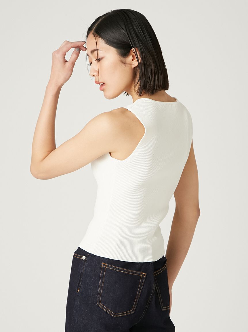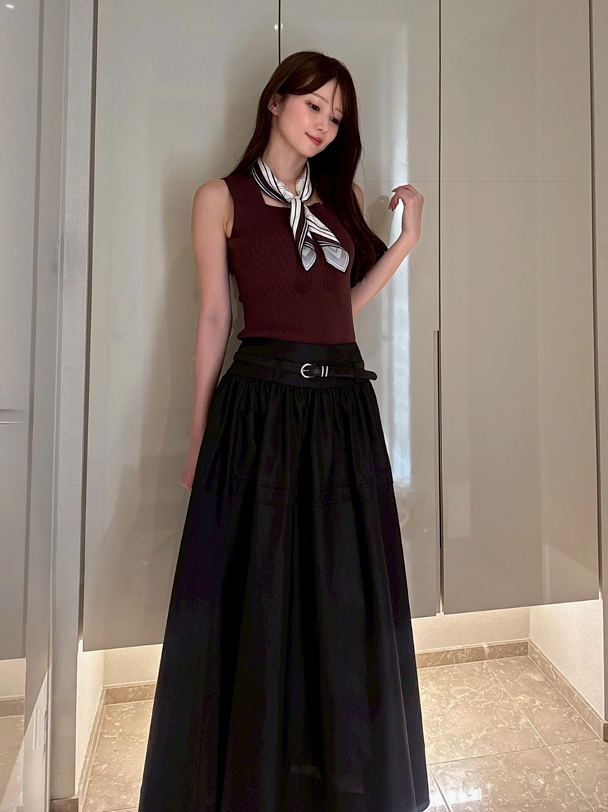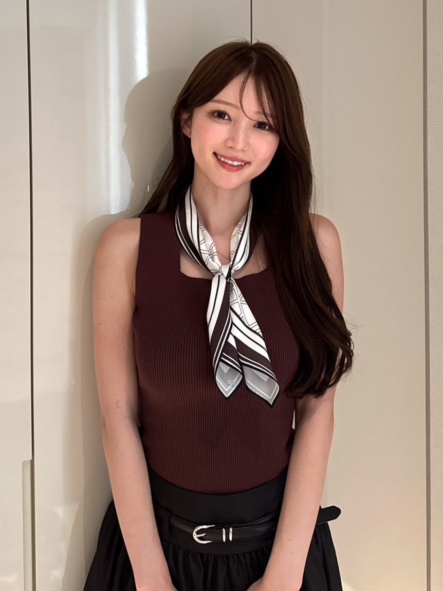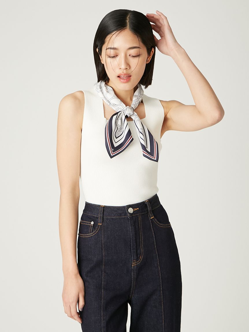 【可拆卸原創圖案絲巾SET.俐落剪裁無袖針織上衣】