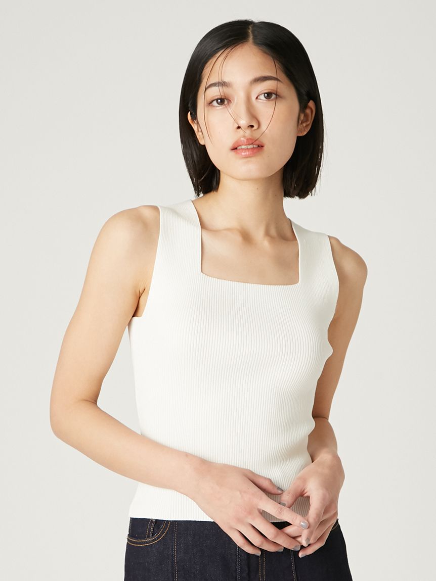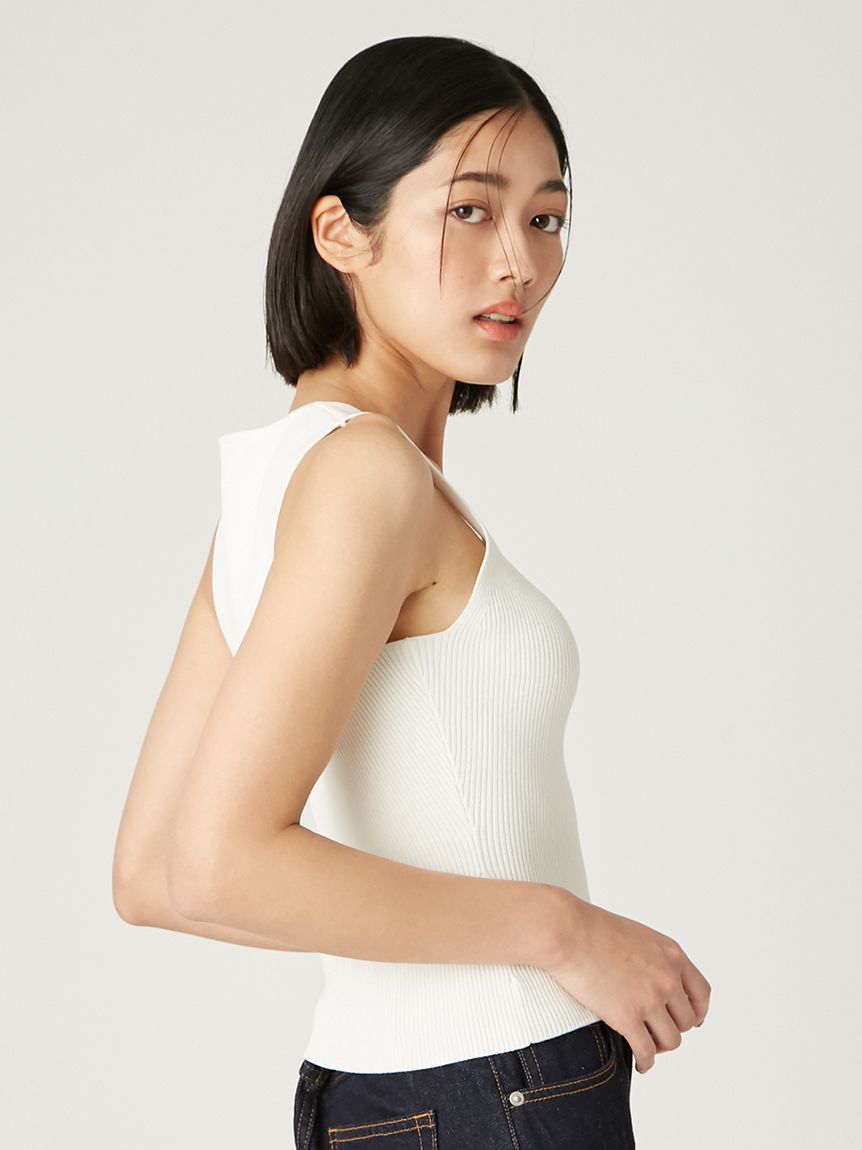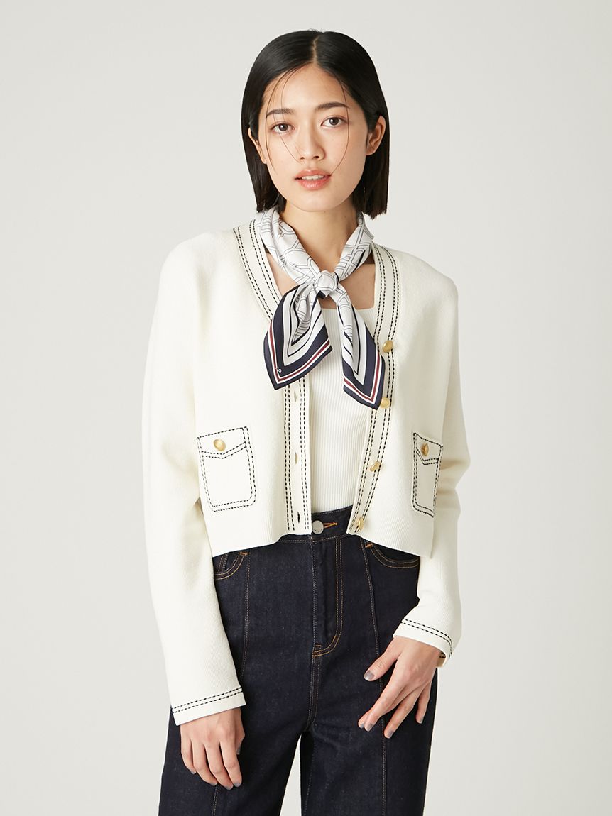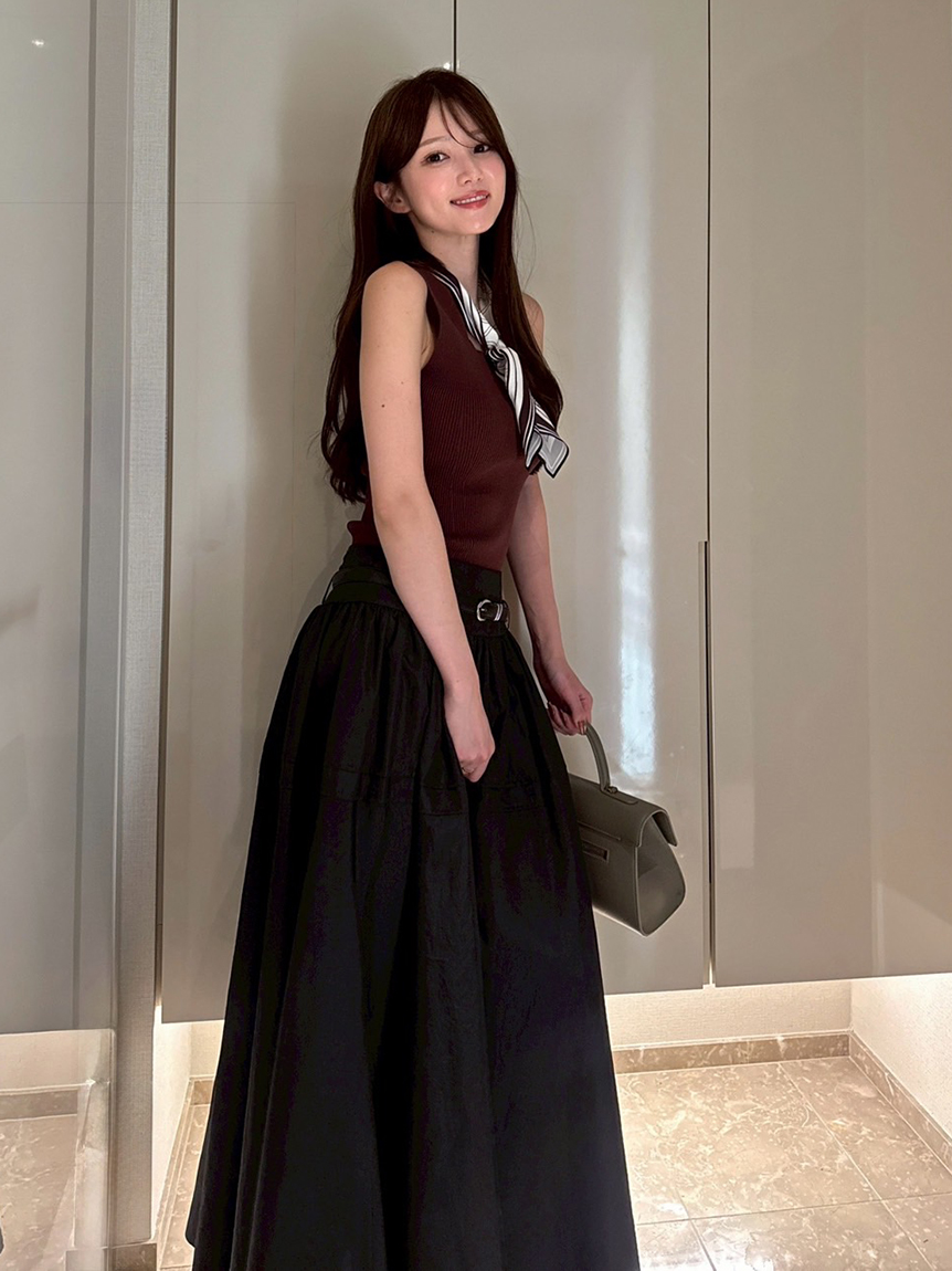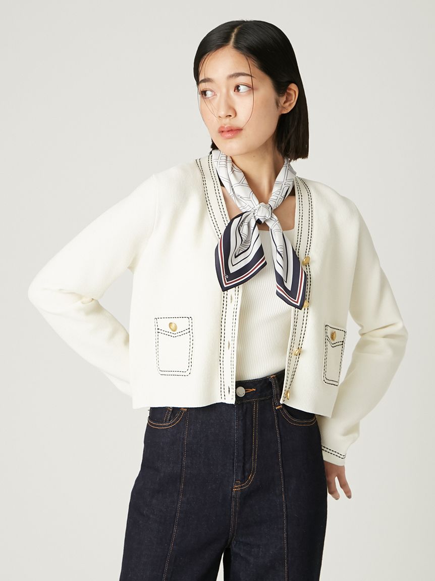 【可拆卸原創圖案絲巾SET.俐落剪裁無袖針織上衣】
