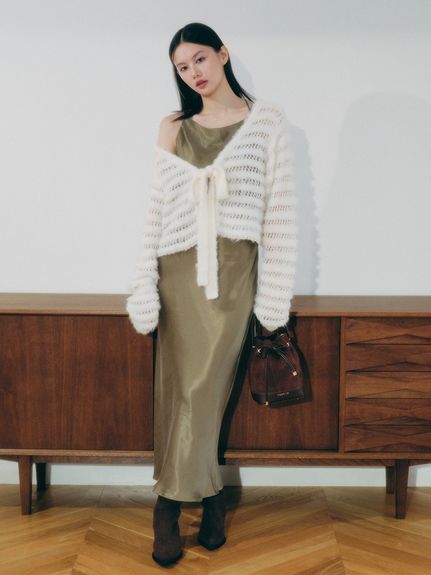 版型寬鬆,隨手一披即可增添造型深度;同色系的毛感緞帶細節,低調增添優雅氣息。
