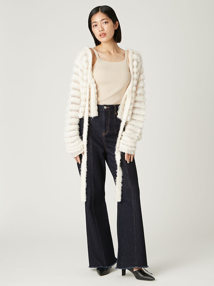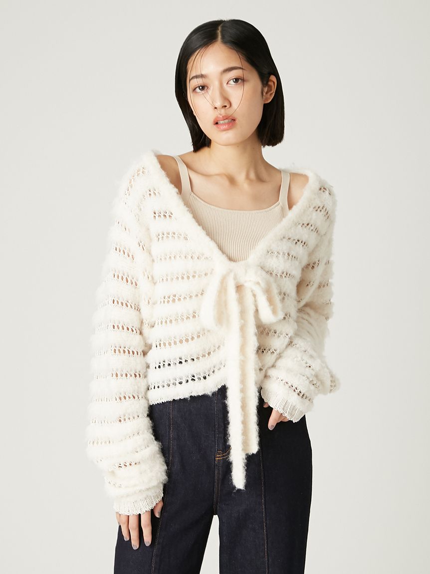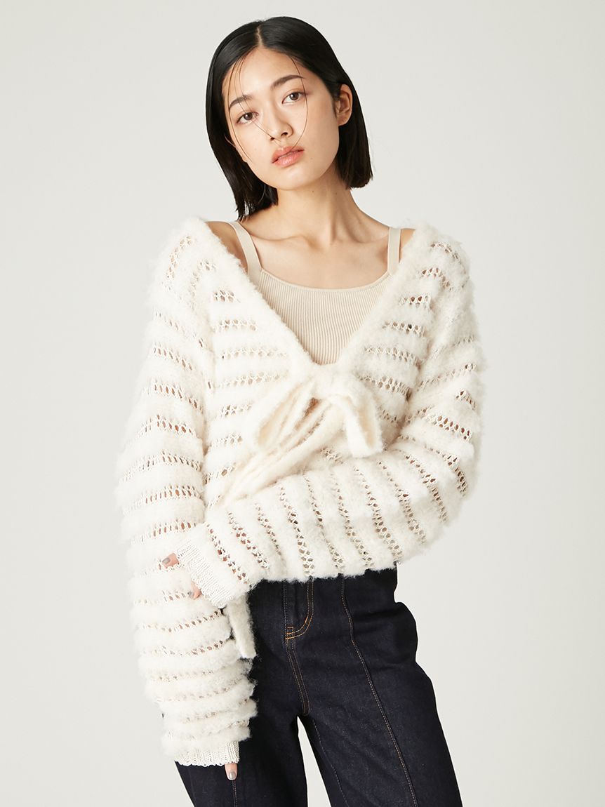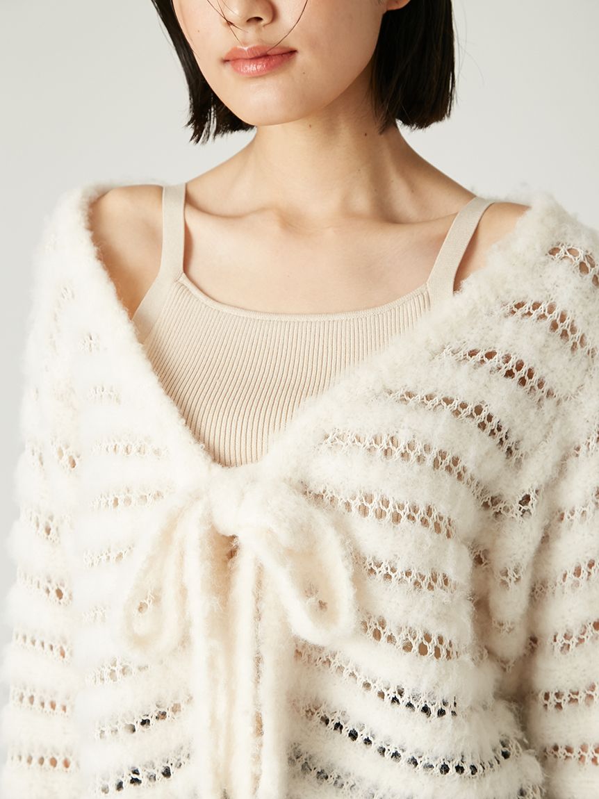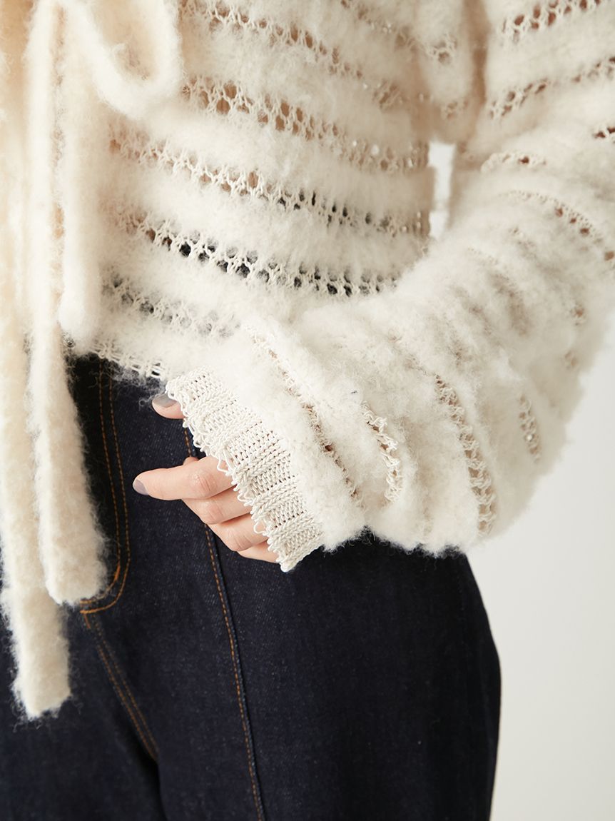 柔軟毛感與透膚網狀編織交錯成條紋,混搭異材質營造豐富層次感。