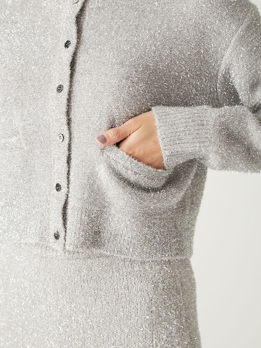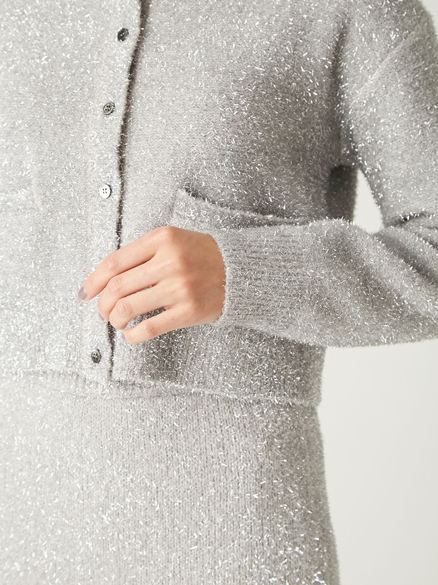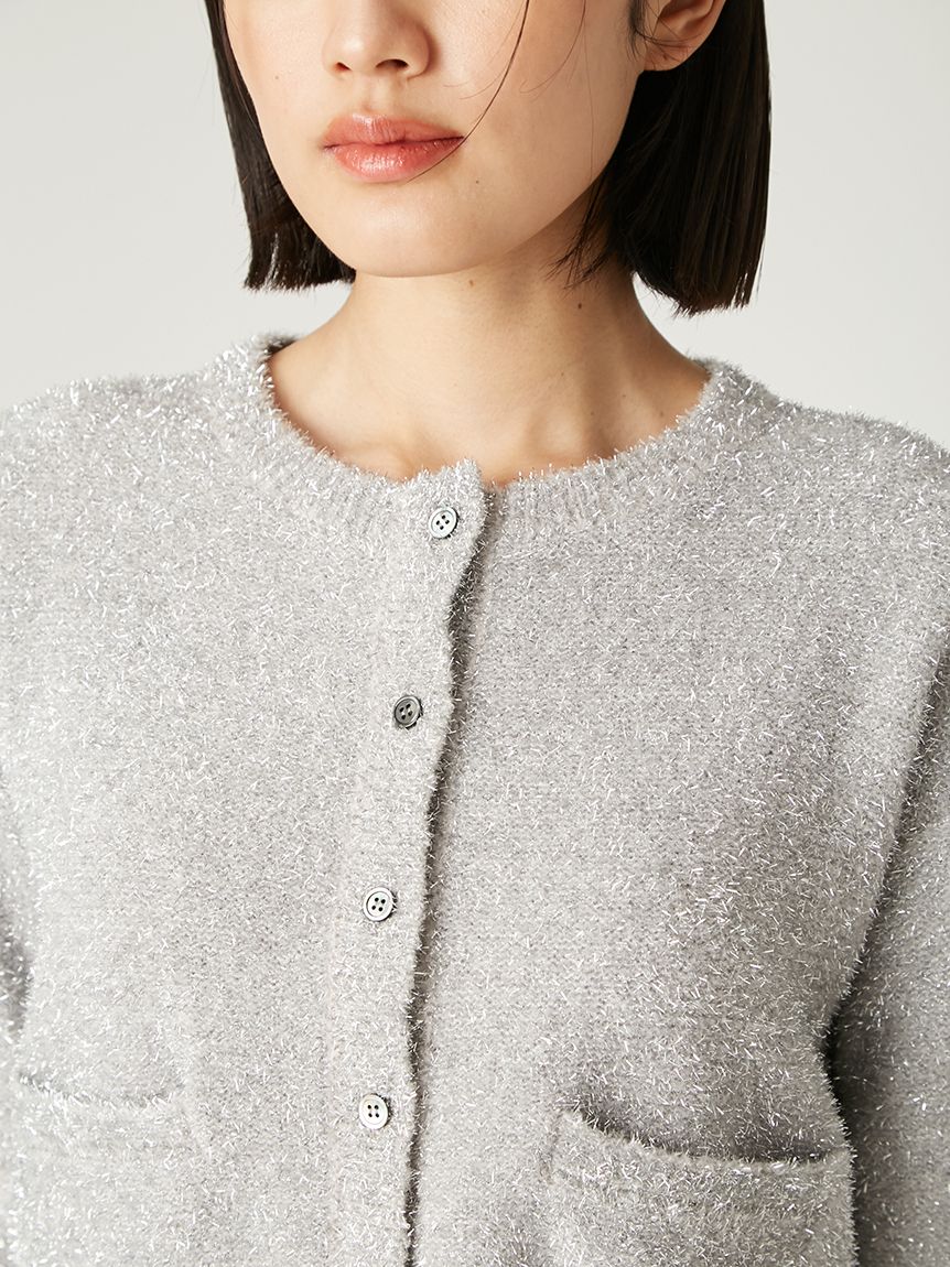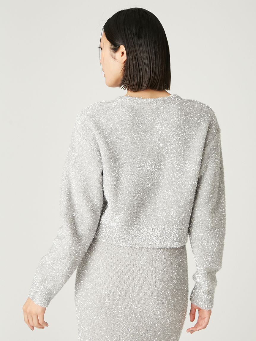 採用帶光澤的羽毛混紡線材,搭配柔軟絲感線,營造細緻閃爍效果,隨光線呈現層次感。