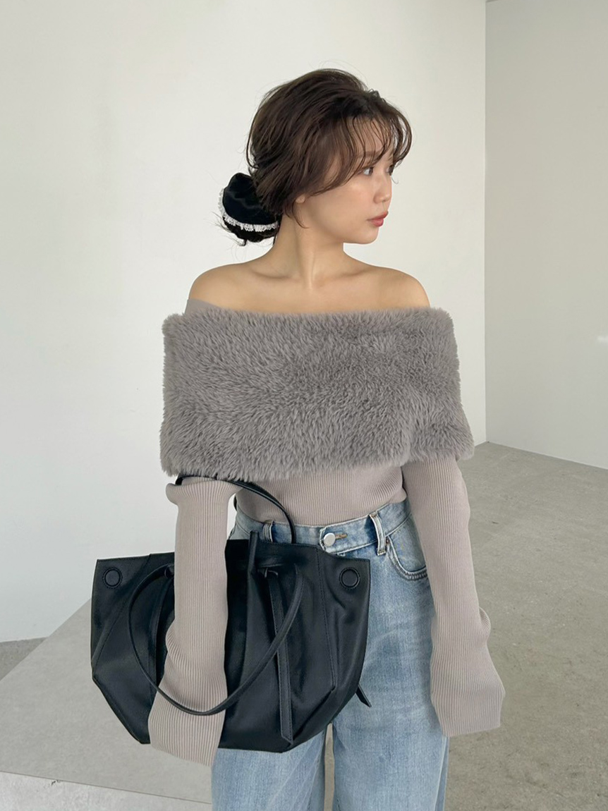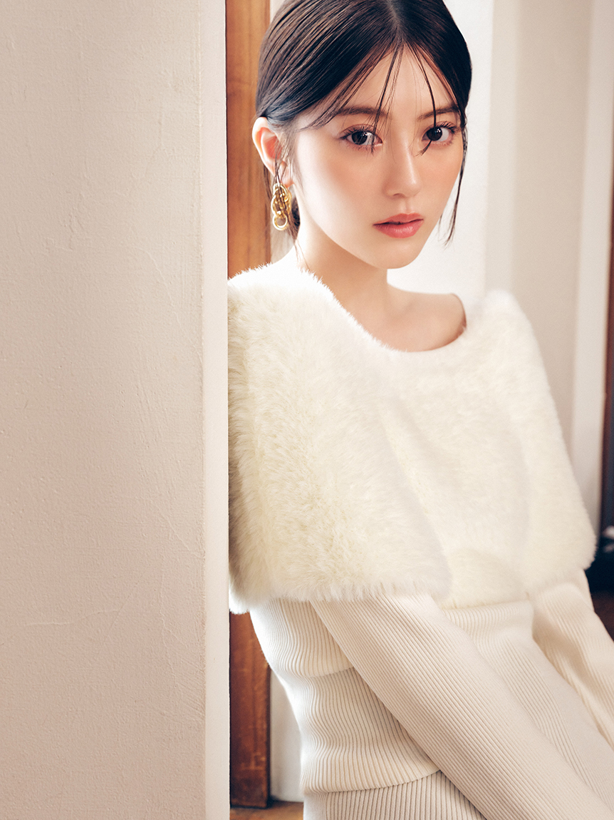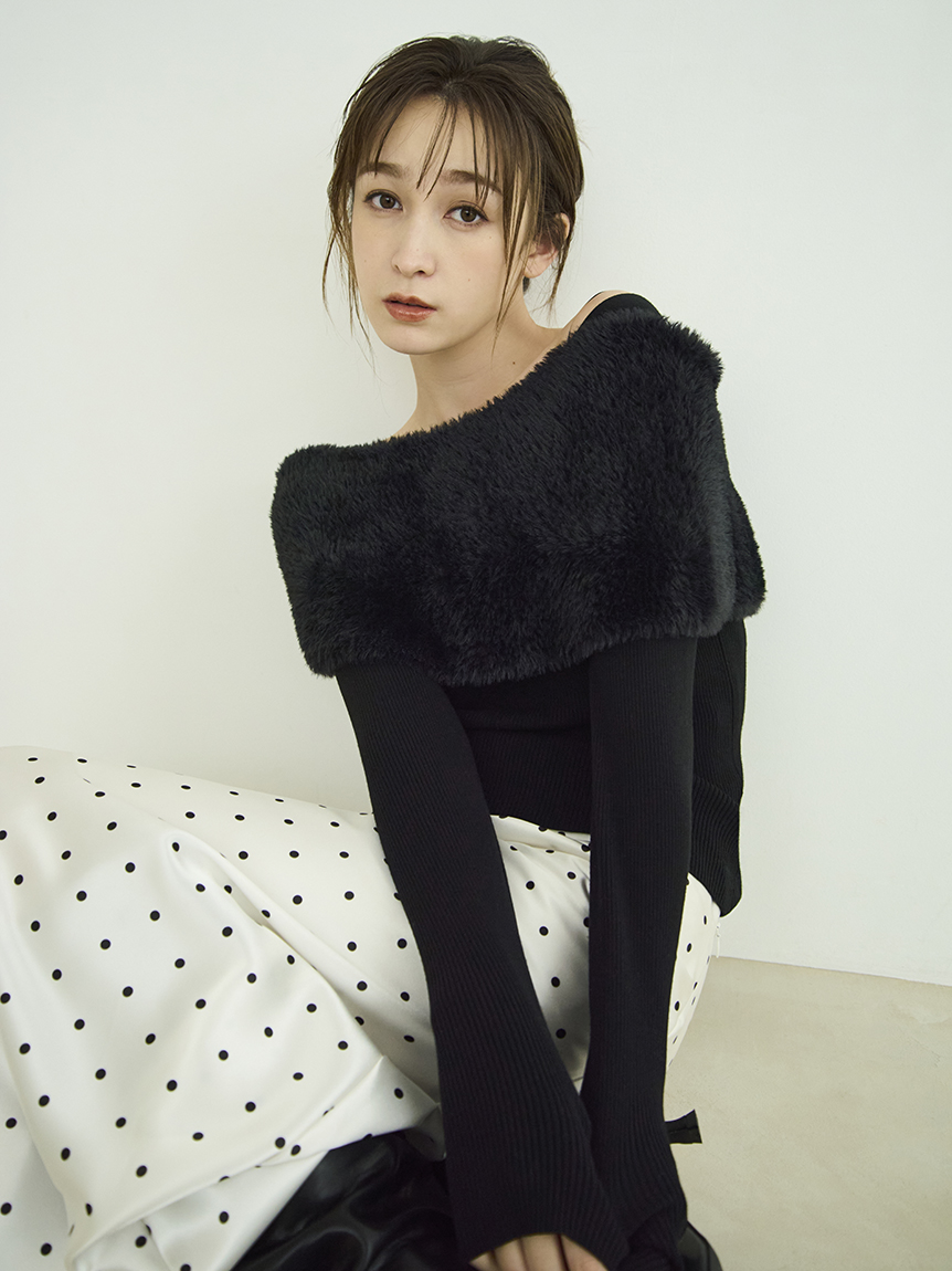 【以絨毛披肩針織衫打造洗練華麗的穿搭主角】