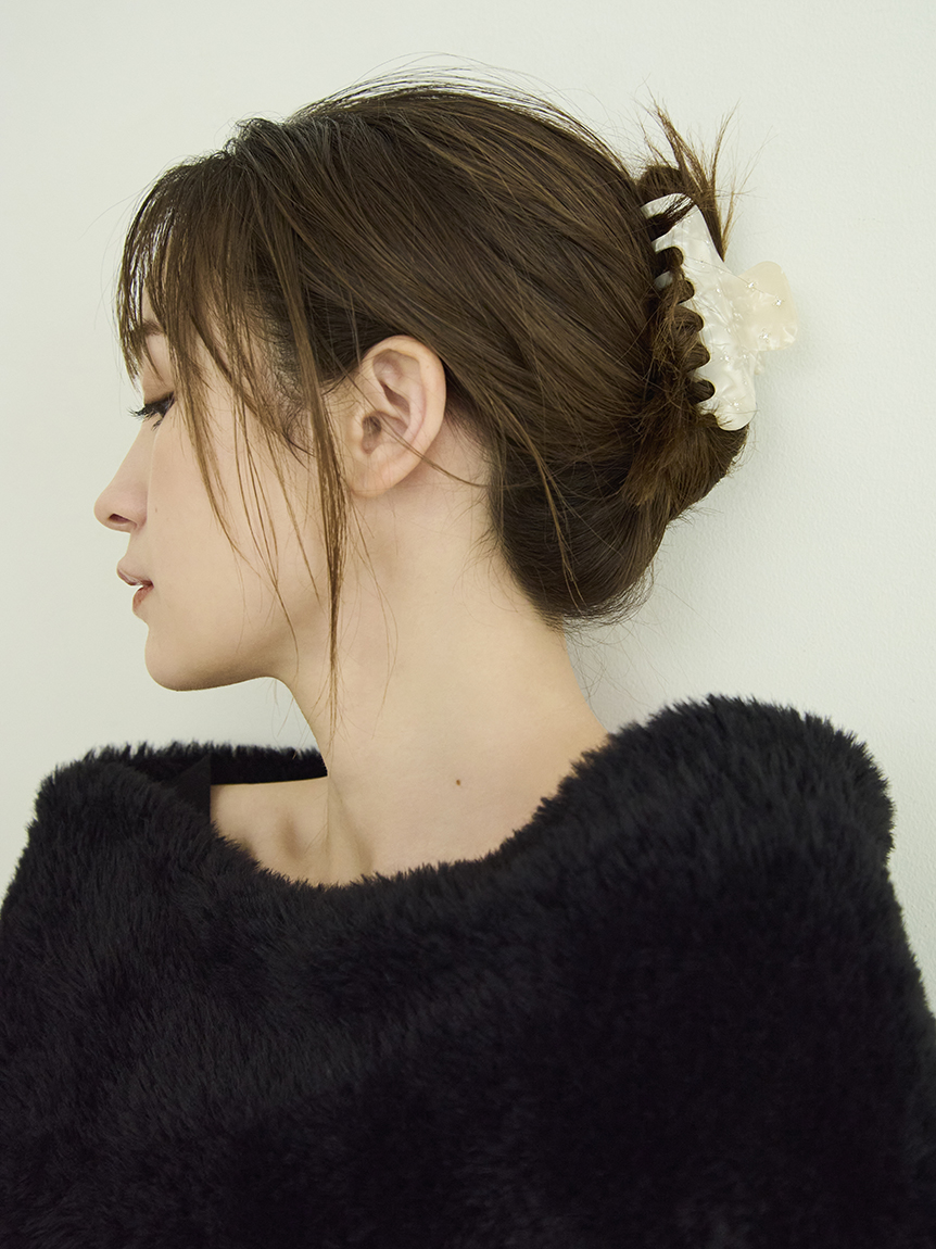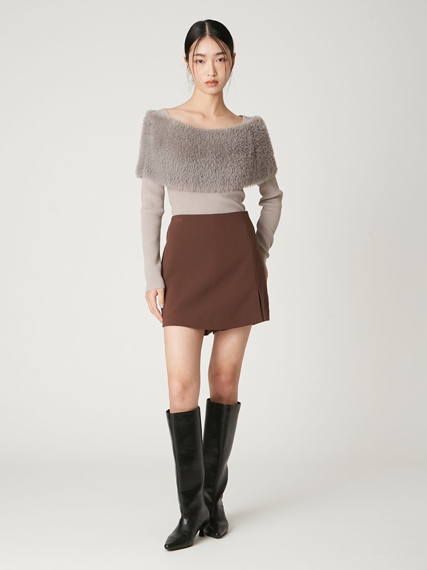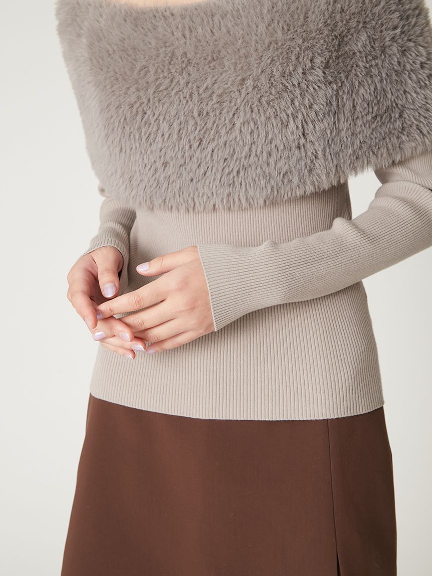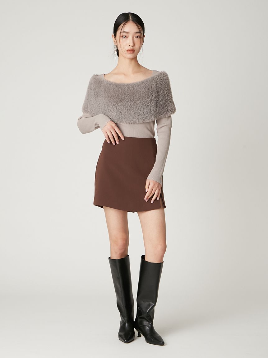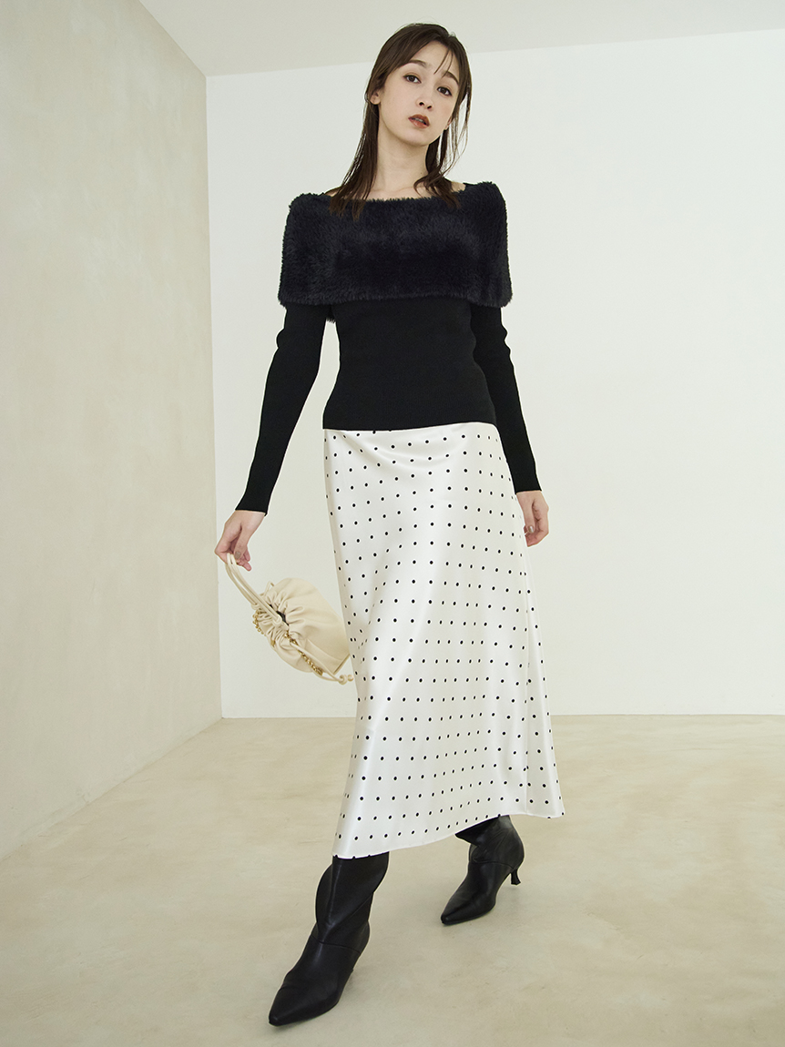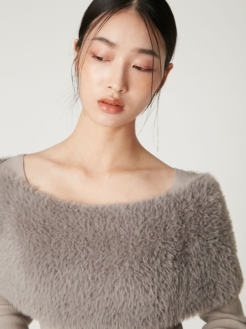 蓬鬆的絨毛披肩為上半身增添視覺亮點,是極具存在感的針織單品。