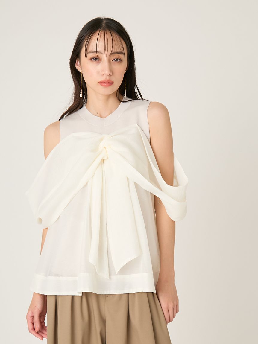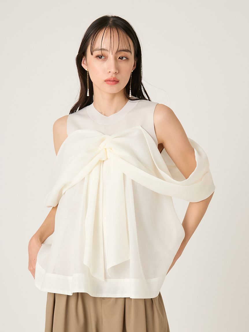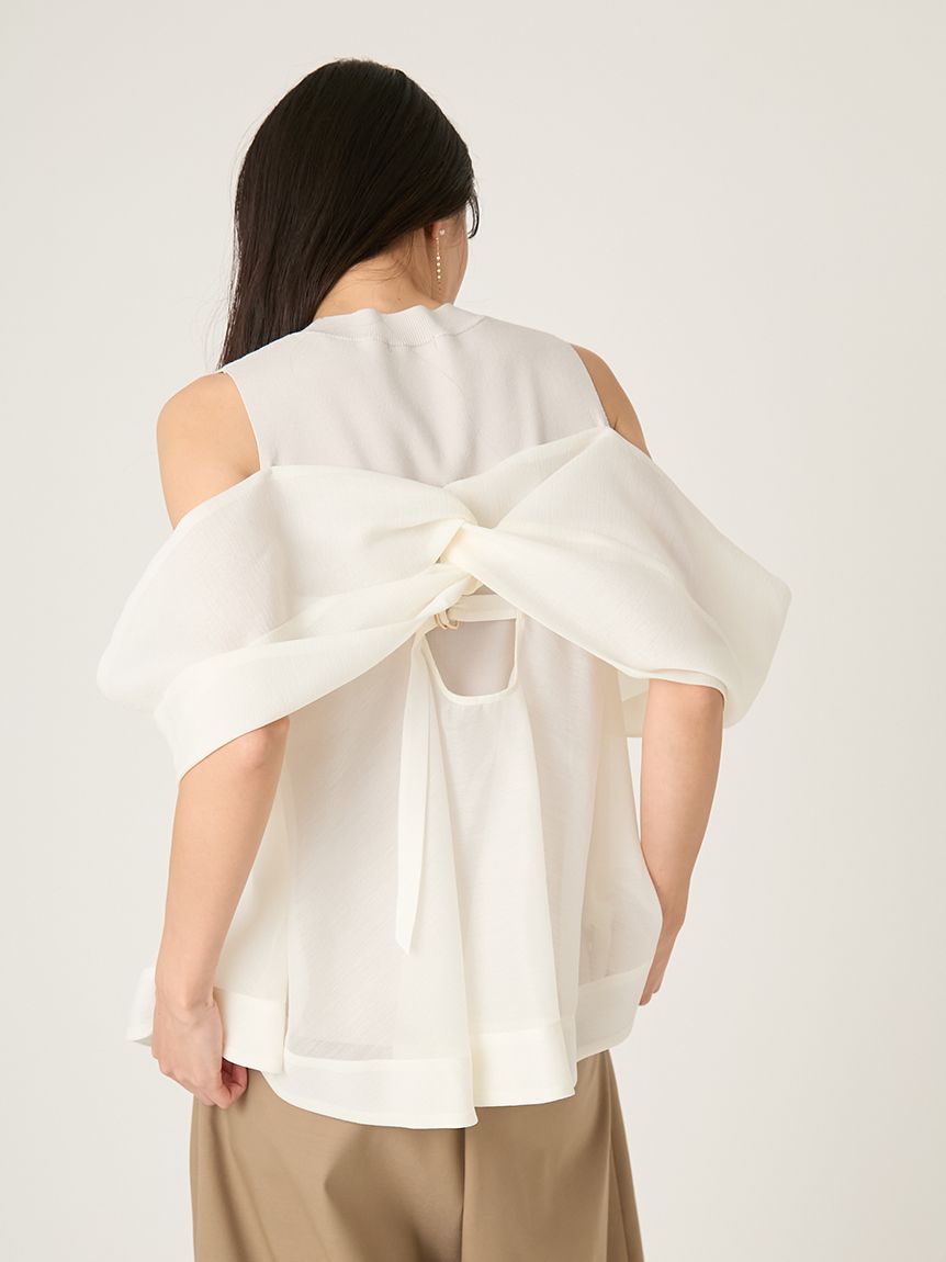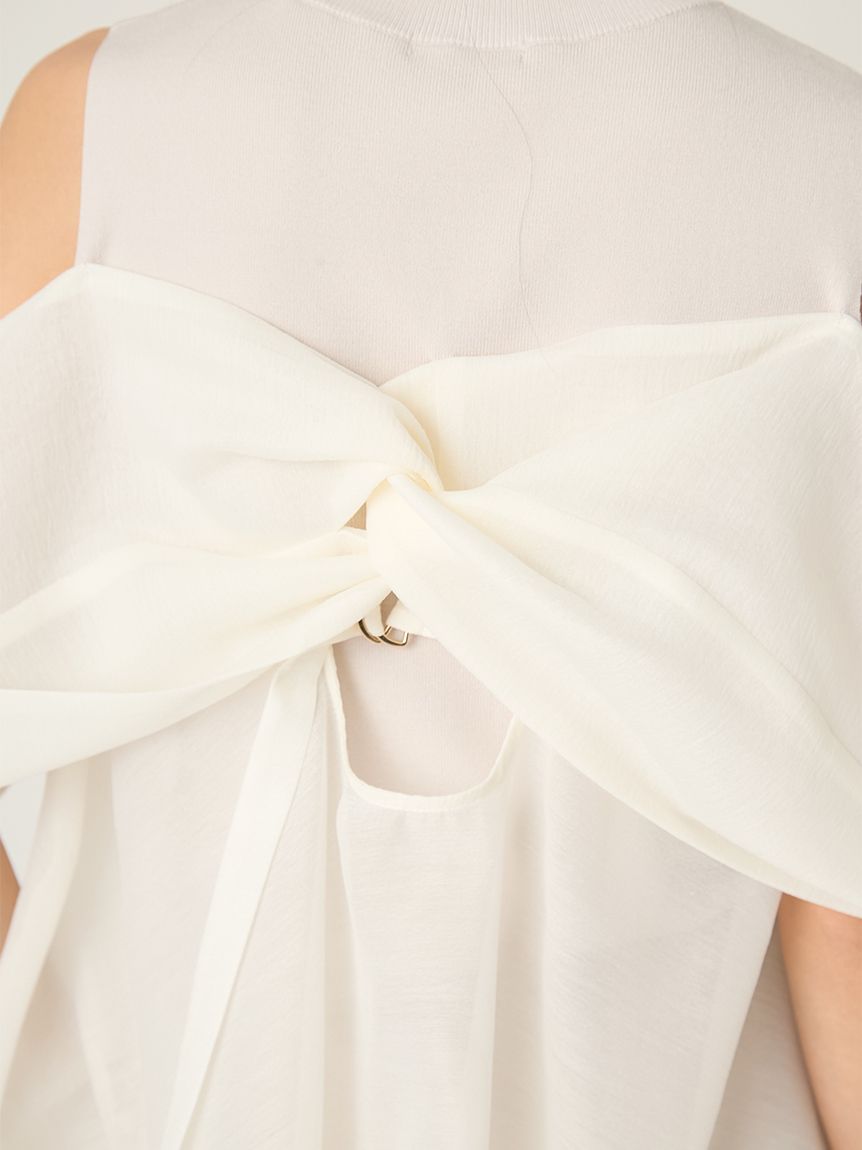 【輕盈蝴蝶結設計針織拼接上衣】
