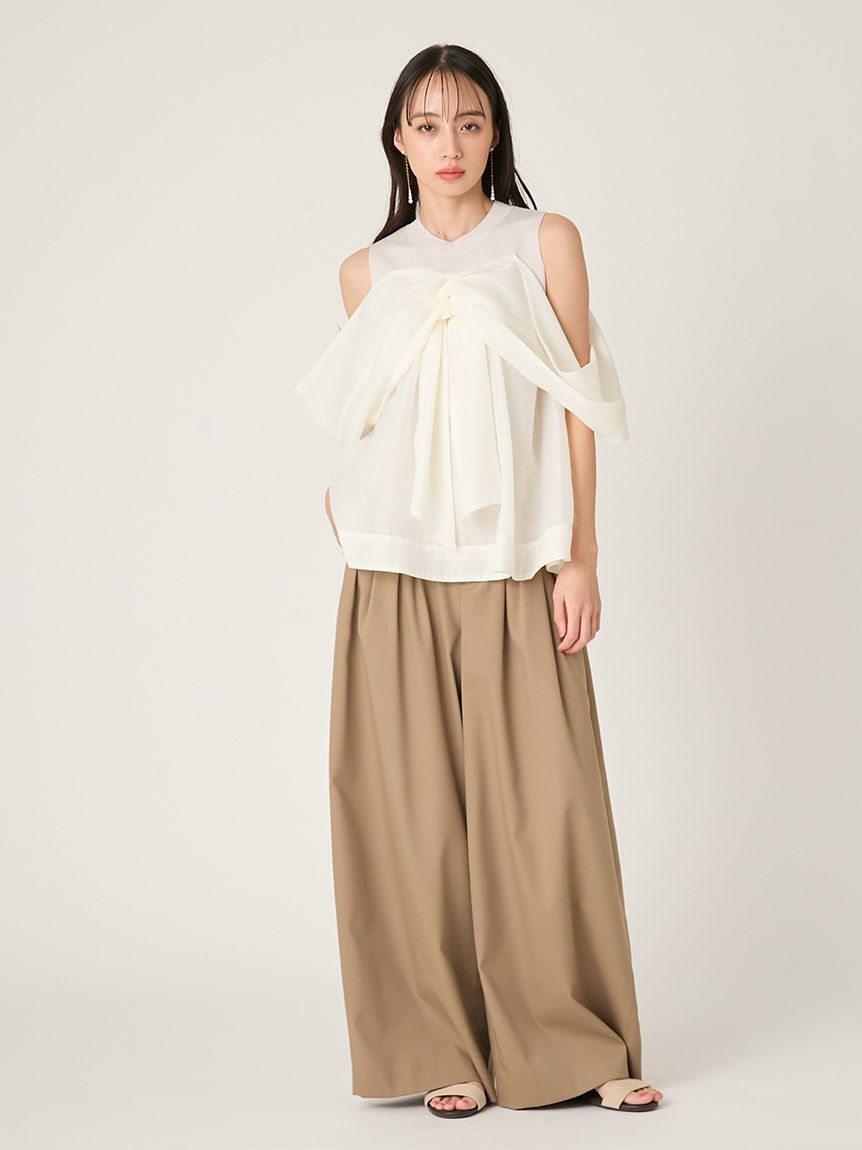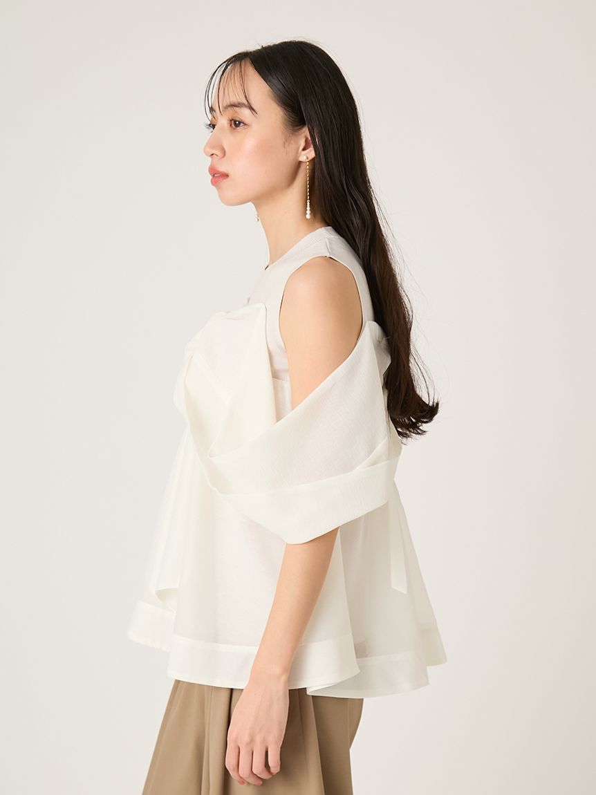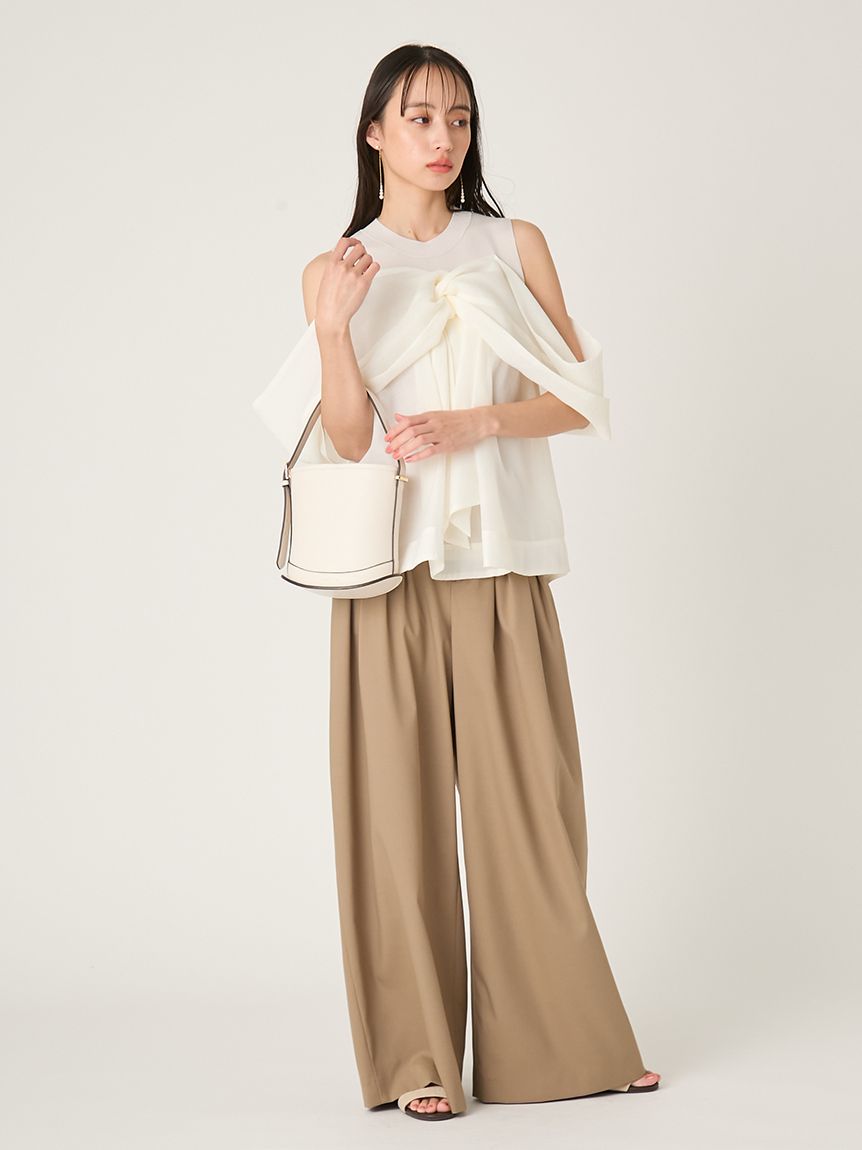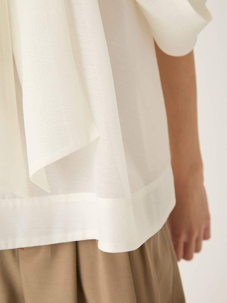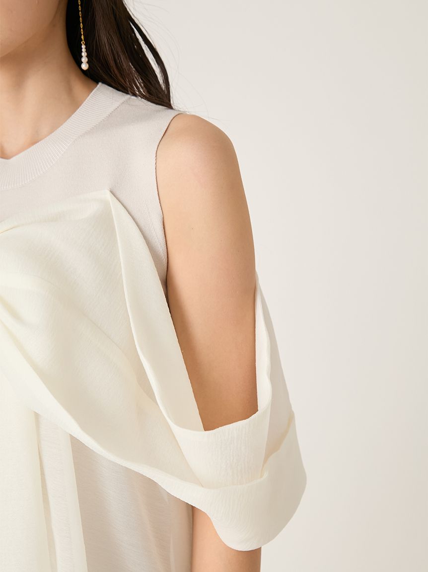 結合扎實的總針編織針織與輕透立體感布料,展現豐富層次。