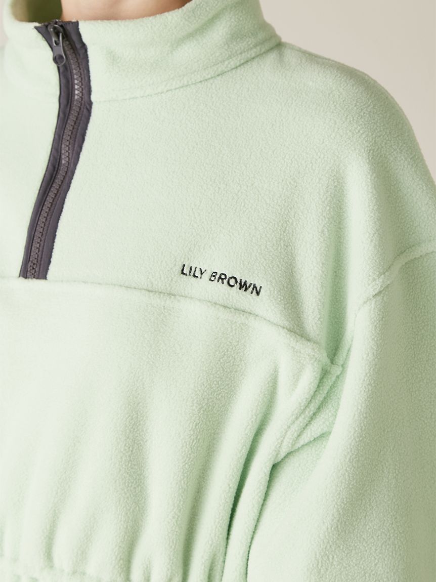 採用觸感蓬鬆柔軟的刷毛質料,兼具輕盈與保暖特性,是秋冬日常穿搭的理想單品。