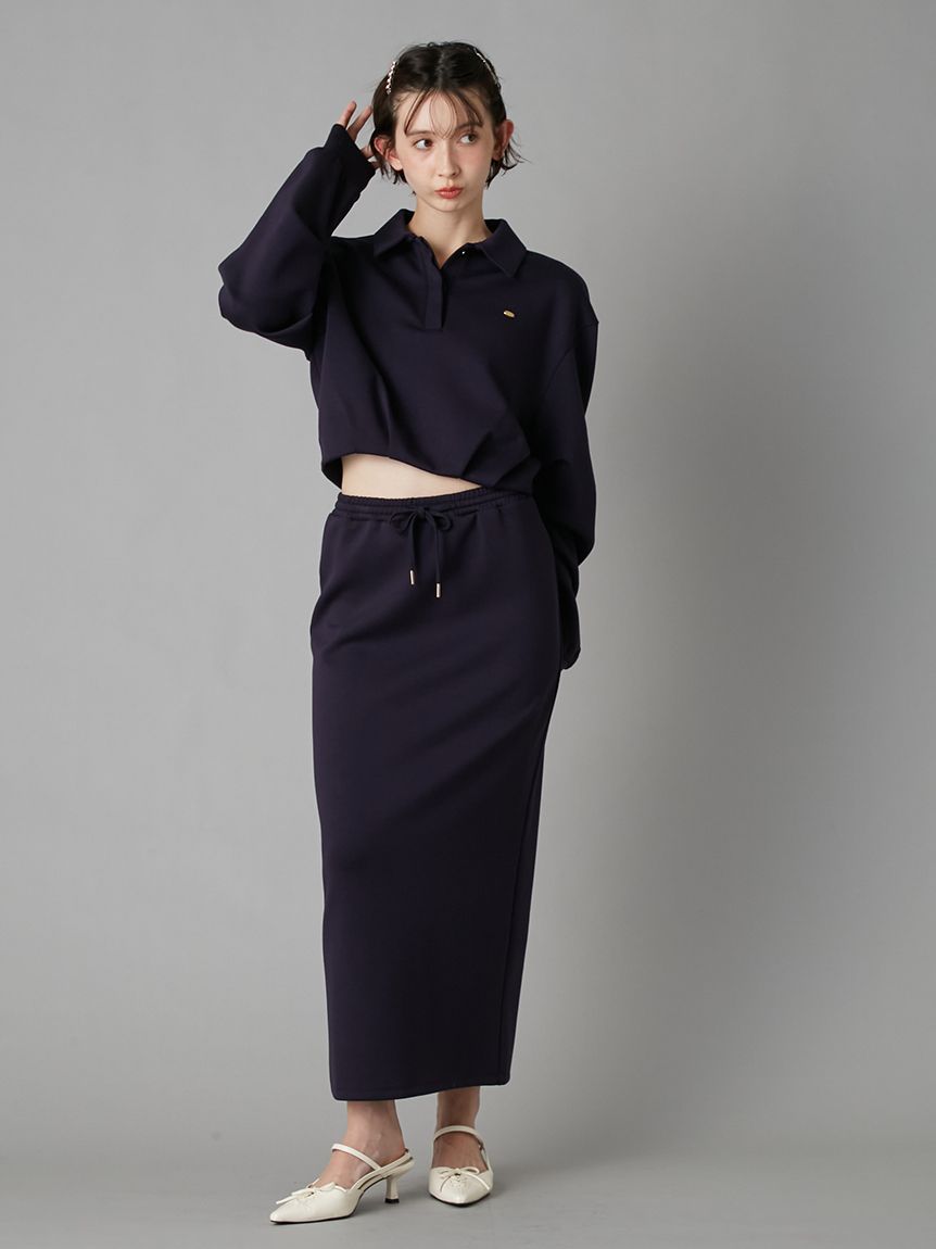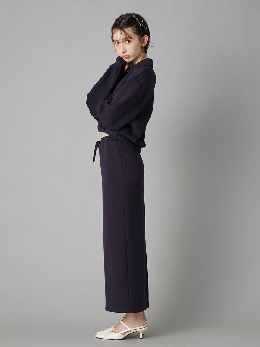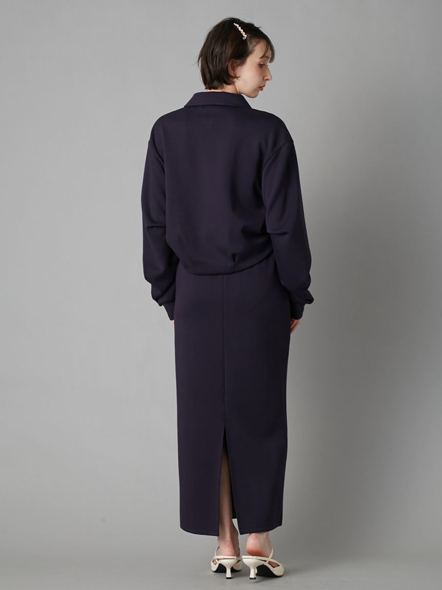 裙身採略為修身的鉛筆版型,強調縱向線條,與寬鬆上衣形成絕佳平衡。