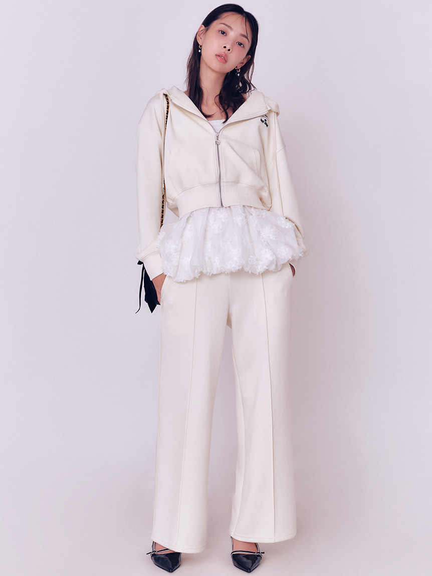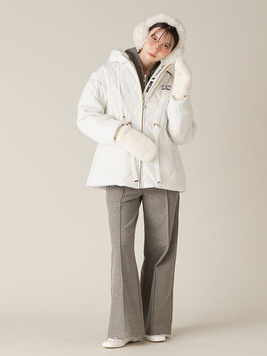 | 素材 | : | [IVR] 51%聚酯纖維、45%嫘縈、4%彈性纖維/ [GRY] 59%棉、40%聚酯纖維、1%彈性纖維/ 配布: 100%聚酯纖維 |
