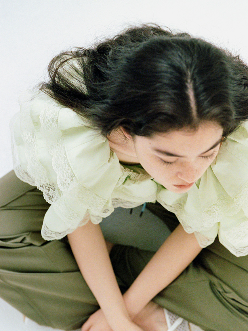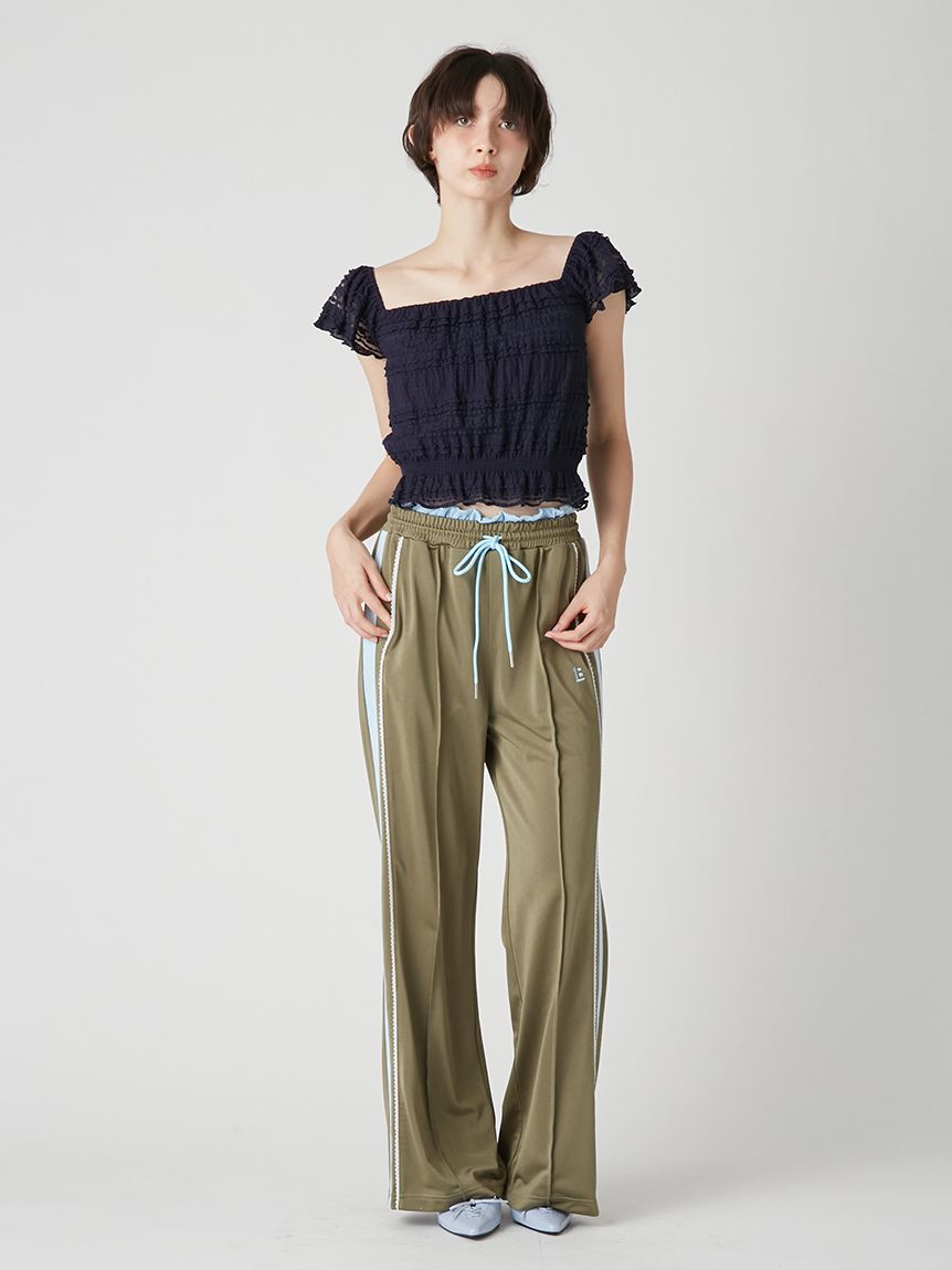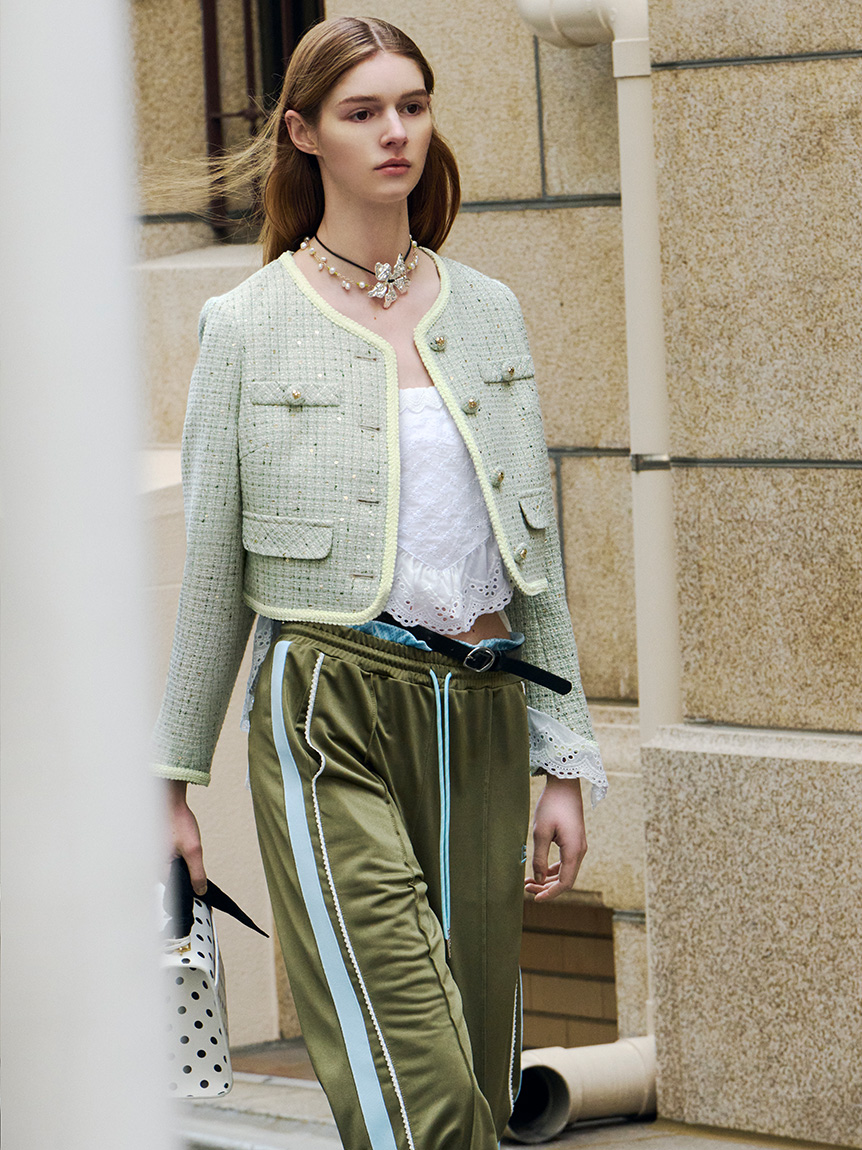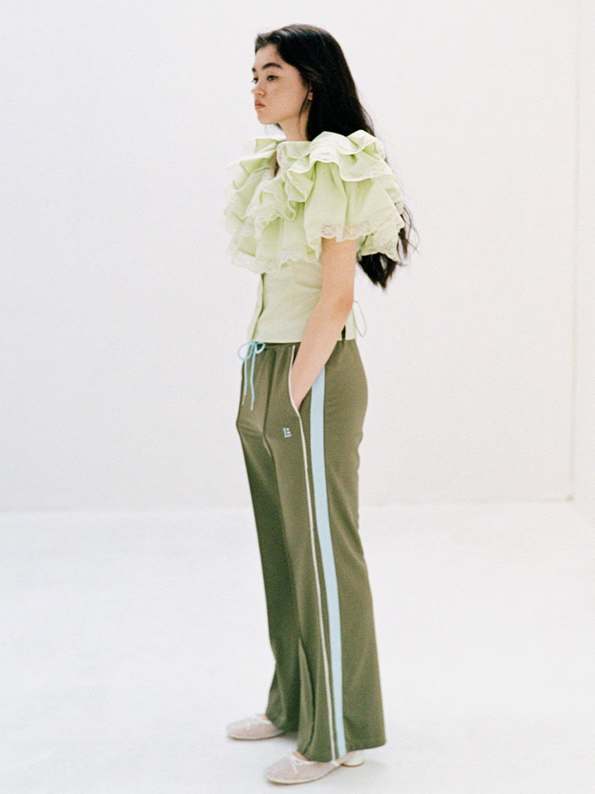 將容易偏休閒的運動長褲,以「LILY BROWN」風格混搭更新。