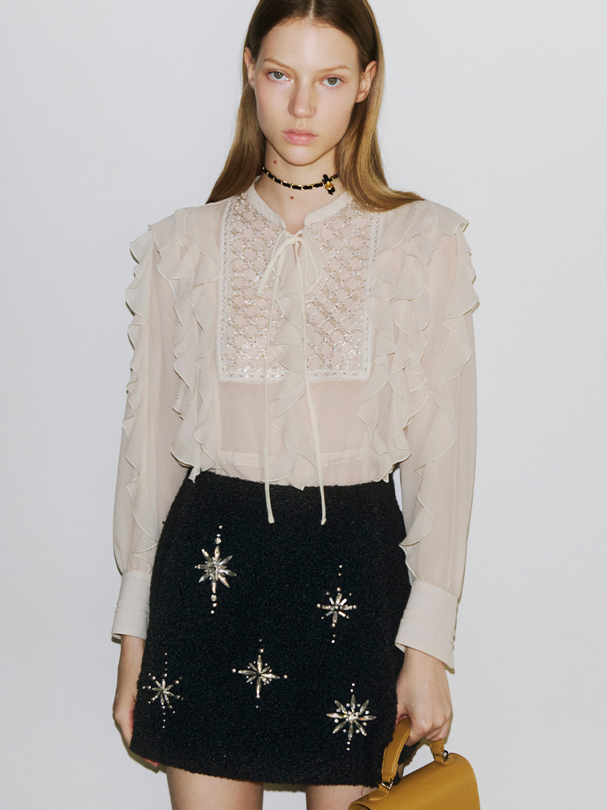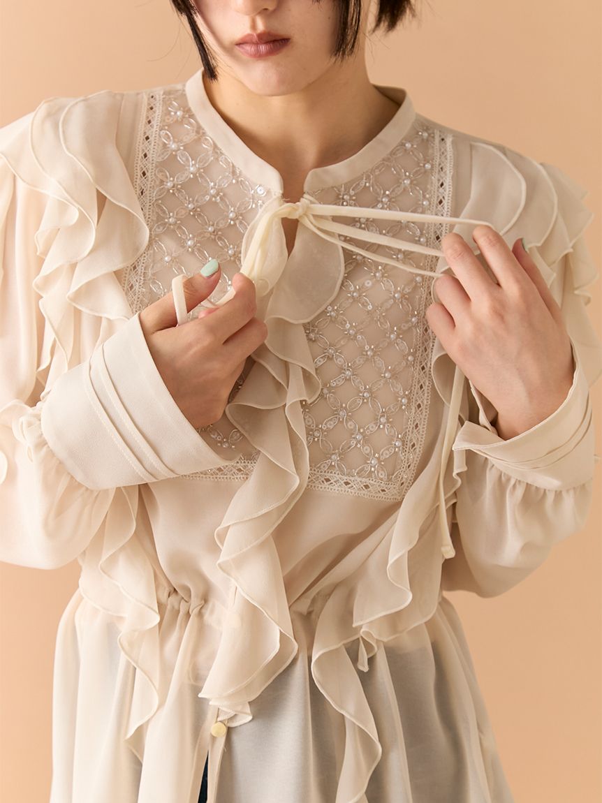 | 素材 | : | 襯衫: 100%聚酯纖維/ 薄紗: 100%聚酯纖維 |
