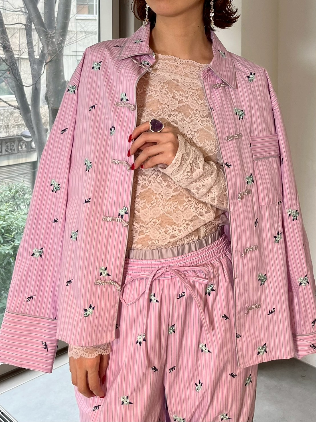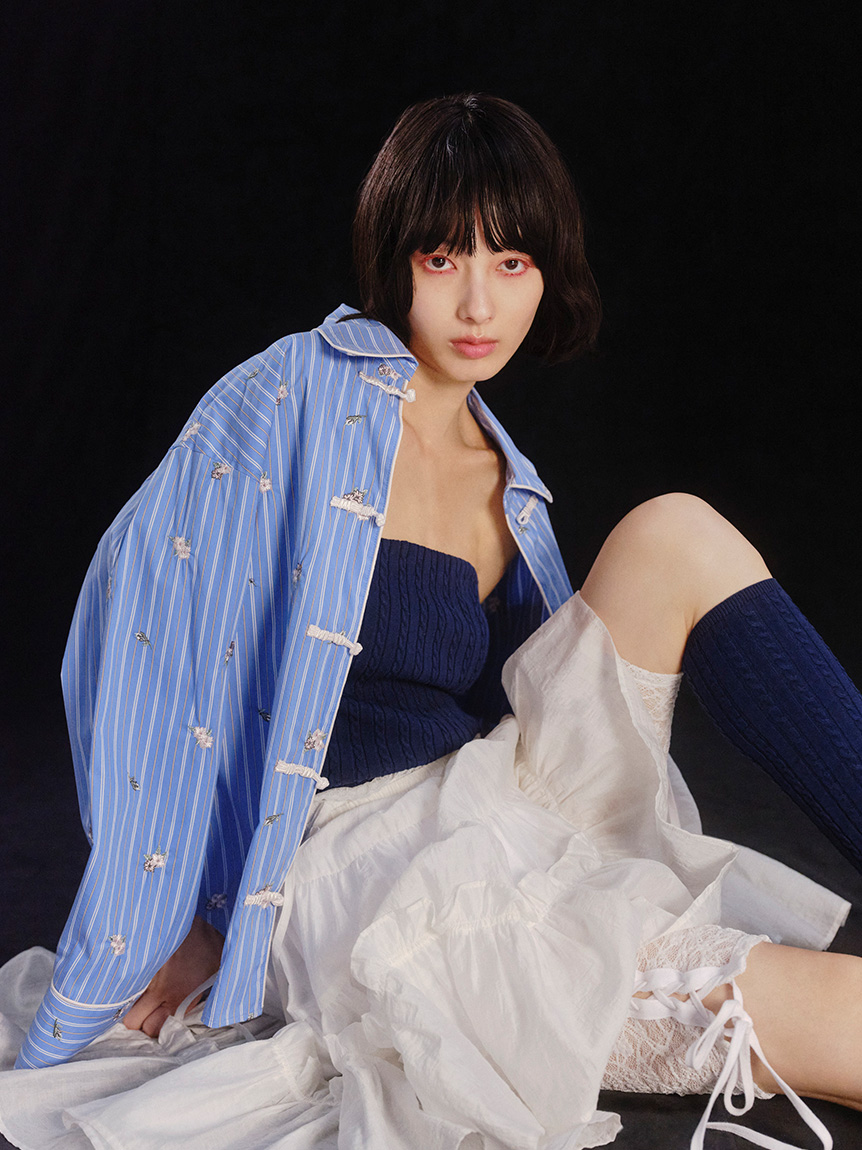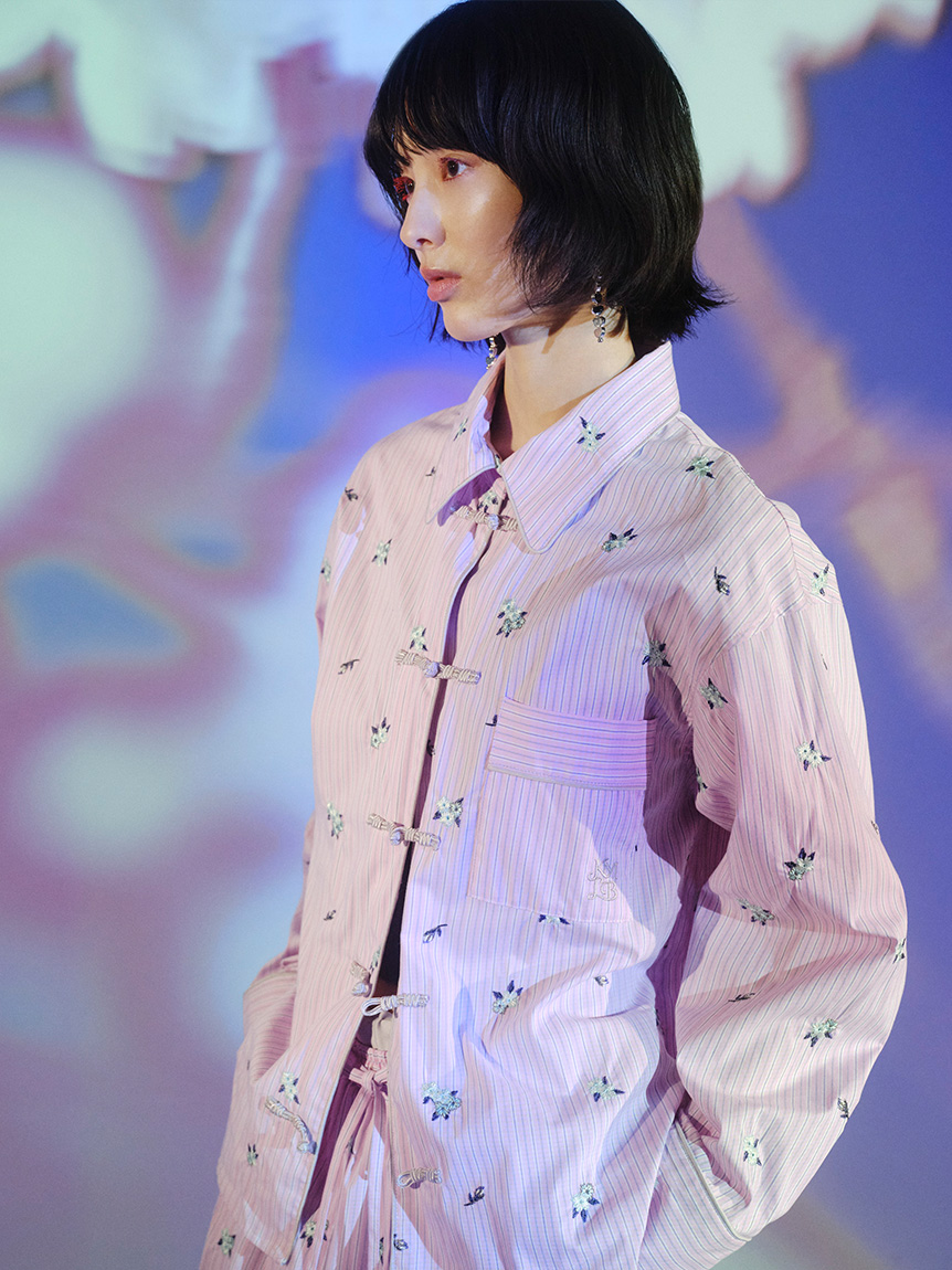 採用滑順輕盈的襯衫材質,全面以立體櫻花刺繡,彰顯奢華感。
