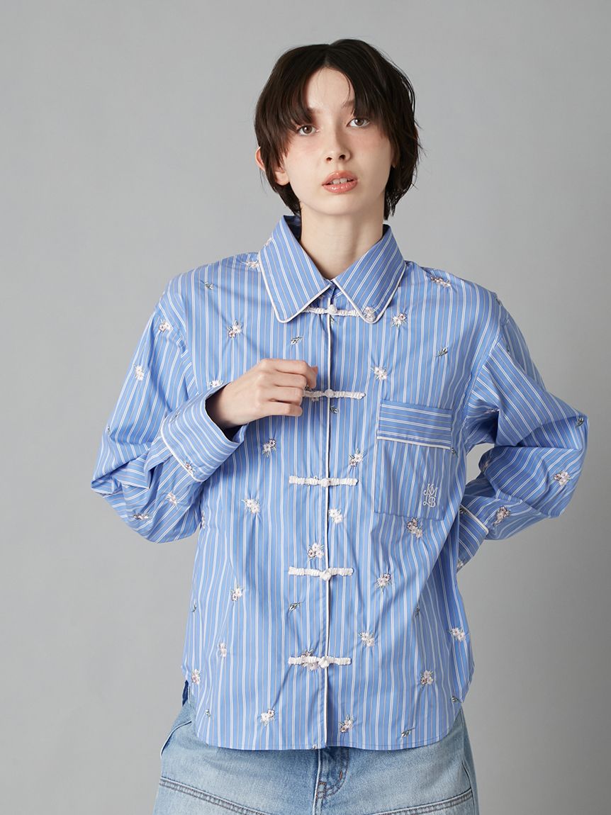 從KEITA MARUYAMA檔案印花中擷取櫻花圖案,將櫻花如飛舞般刺繡於襯衫全體,打造極具存在感的一件單品。