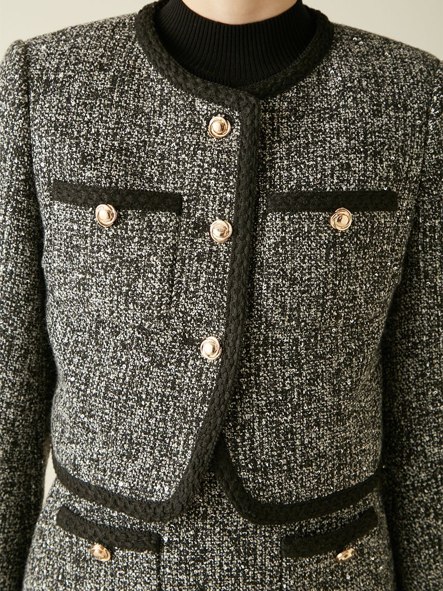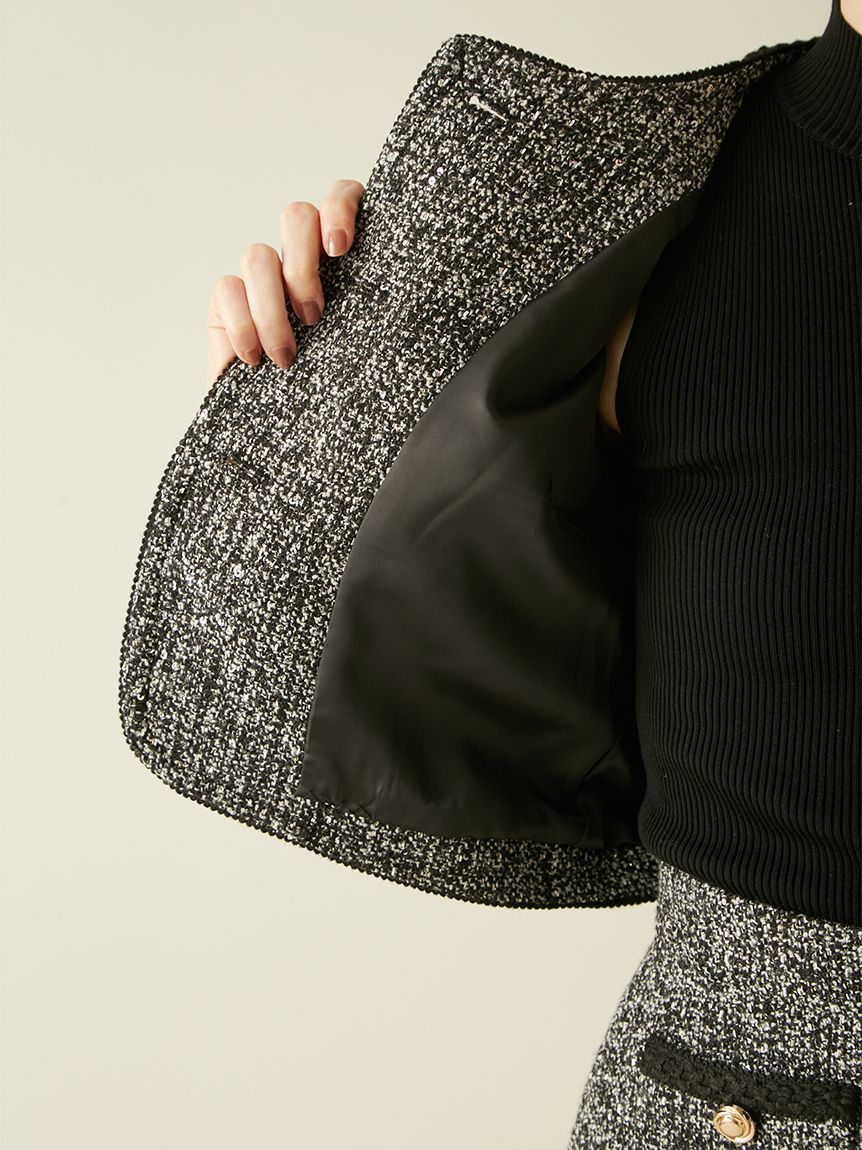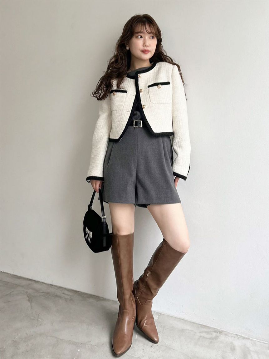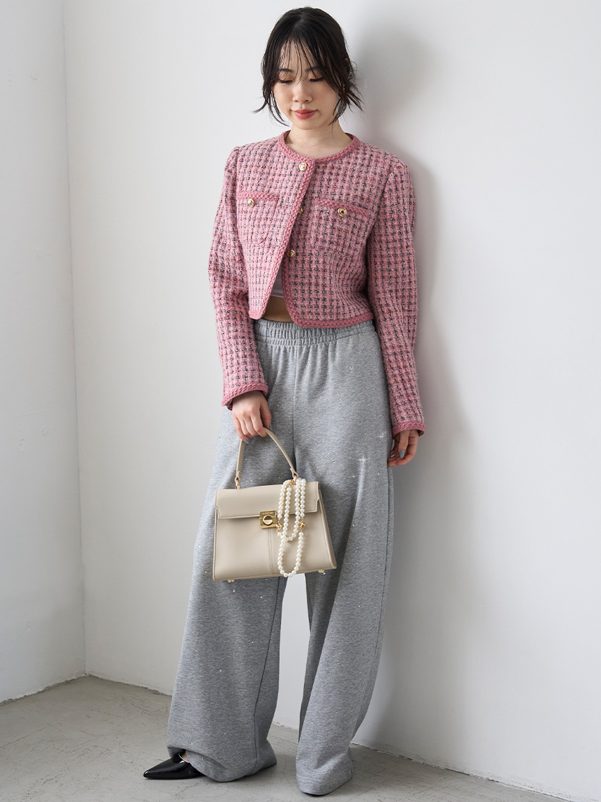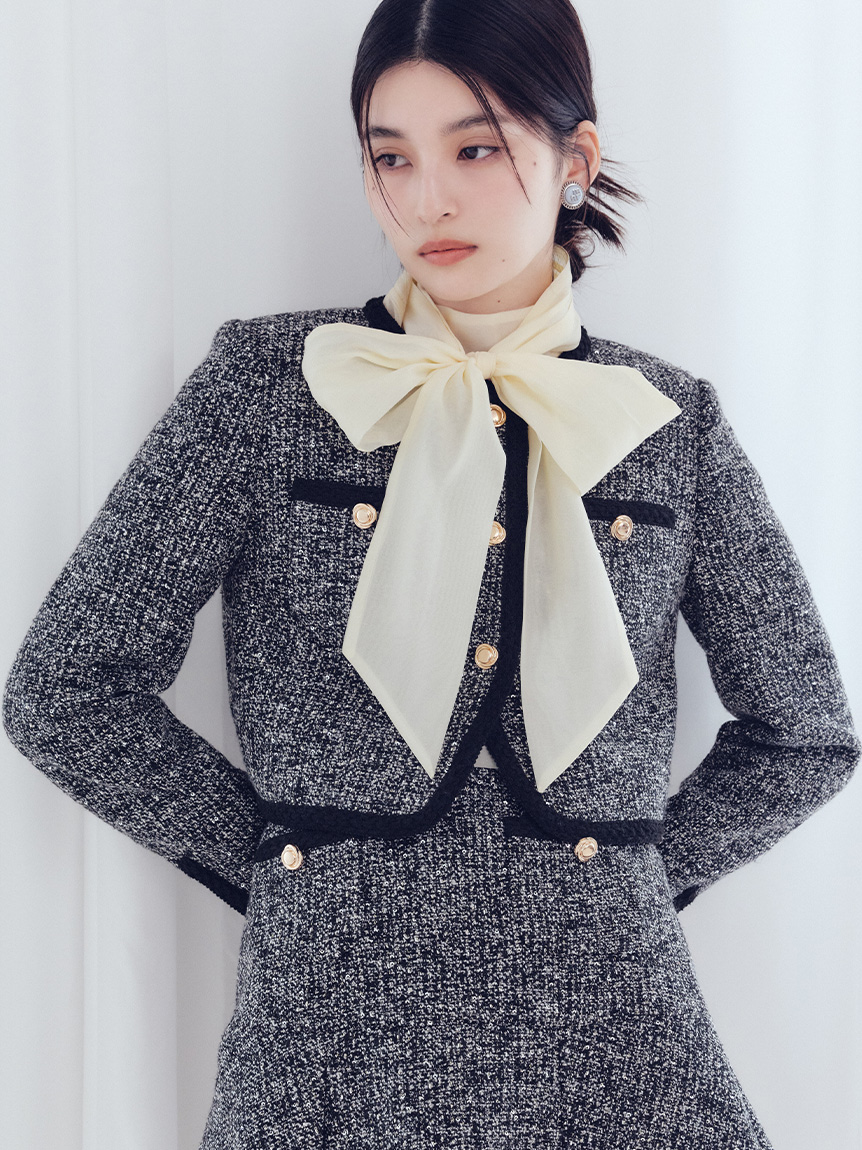 素材 | : | [IVR] 92%聚酯纖維、4%棉、2%嫘縈、1%尼龍、1%壓克力纖維/ [GRY] 82%聚酯纖維、7%棉、7%嫘縈、1%尼龍、1%羊毛、1%彈性纖維、1%壓克力纖維/ [BLK] 100%聚酯纖維/ [PNK] 83%聚酯纖維、13%羊毛、2%棉、1%嫘縈、1%尼龍/ 內裡: 100%聚酯纖維 |