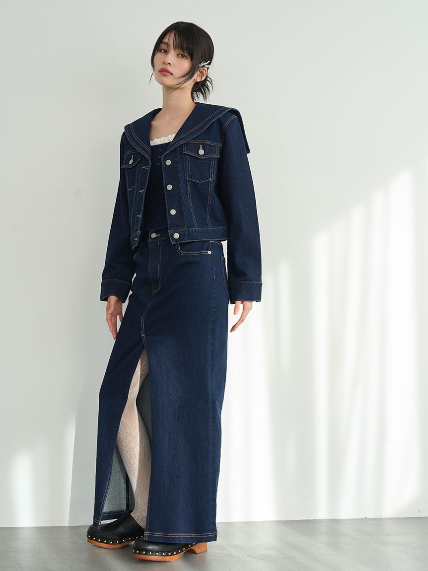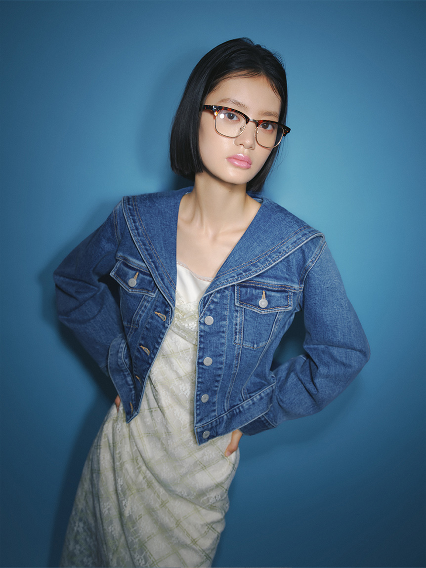 以水手領為亮點,展現「LILY BROWN」獨特玩心設計的牛仔外套。