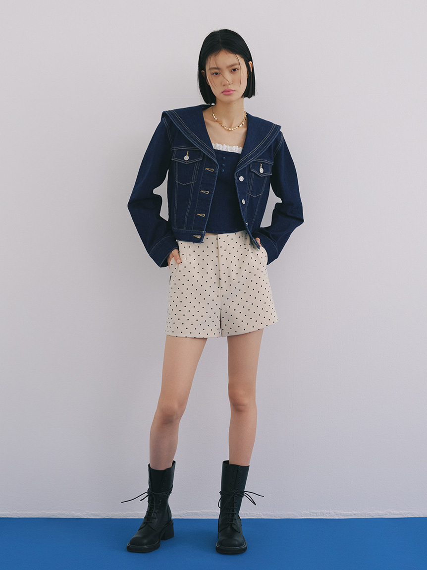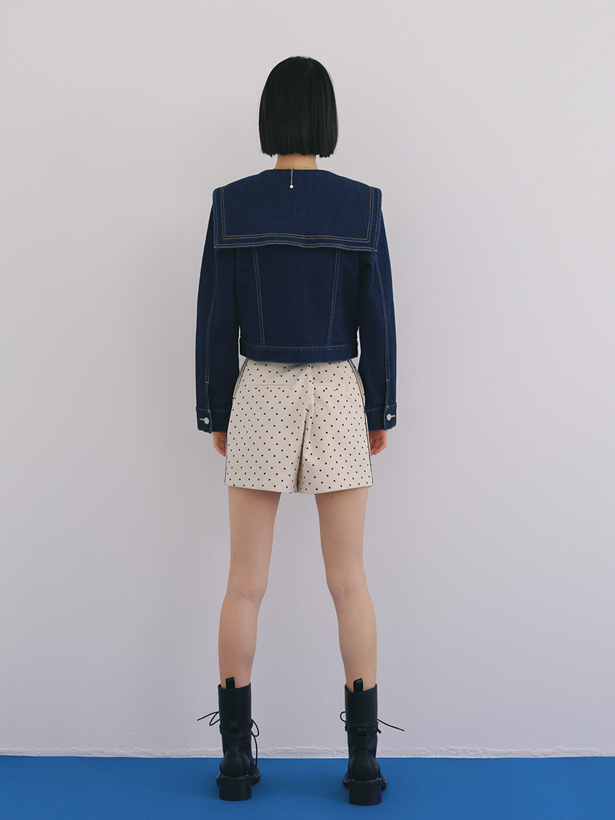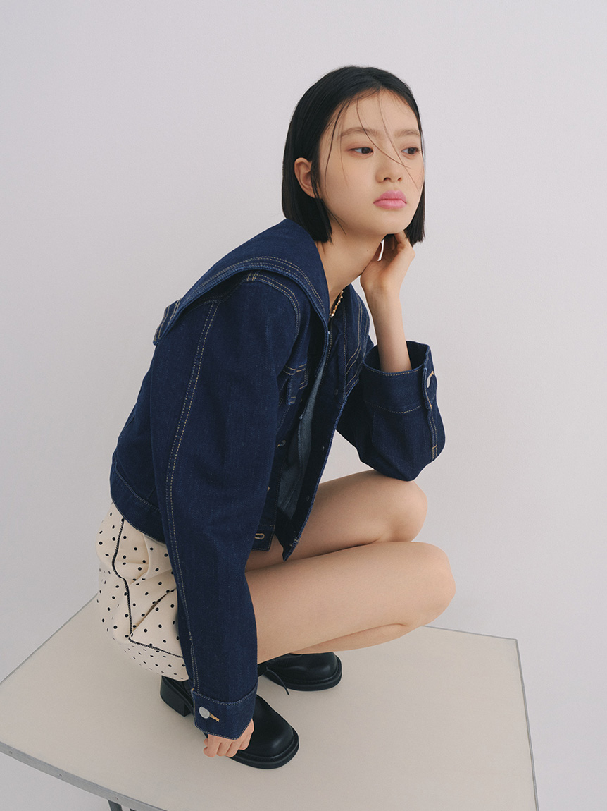 以經典牛仔外套細節為基礎,結合水手領設計,打造出容易搭配又具個性的單品。