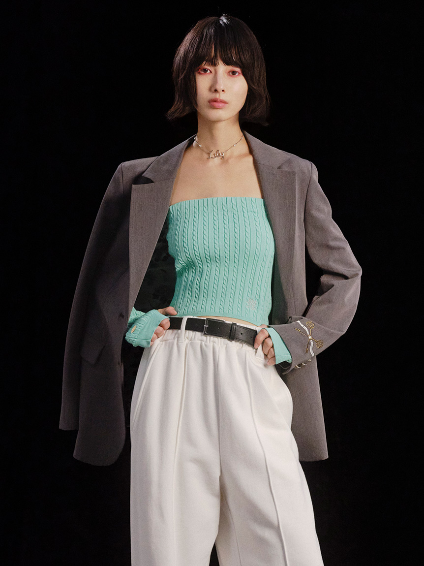 採用具有自然彈性的TR素材。斜紋清晰挺括,兼具美麗表面感與優雅垂墜感。