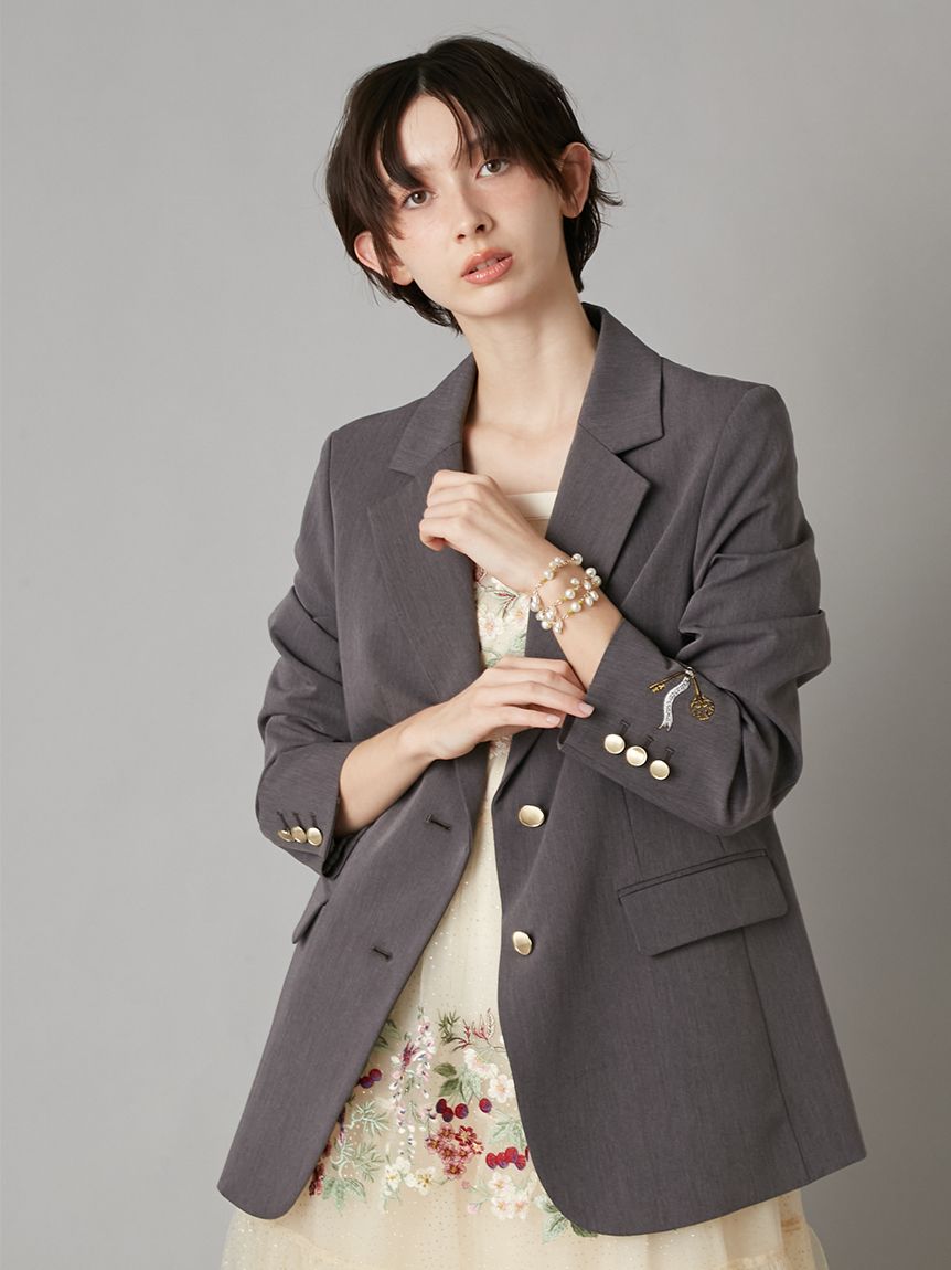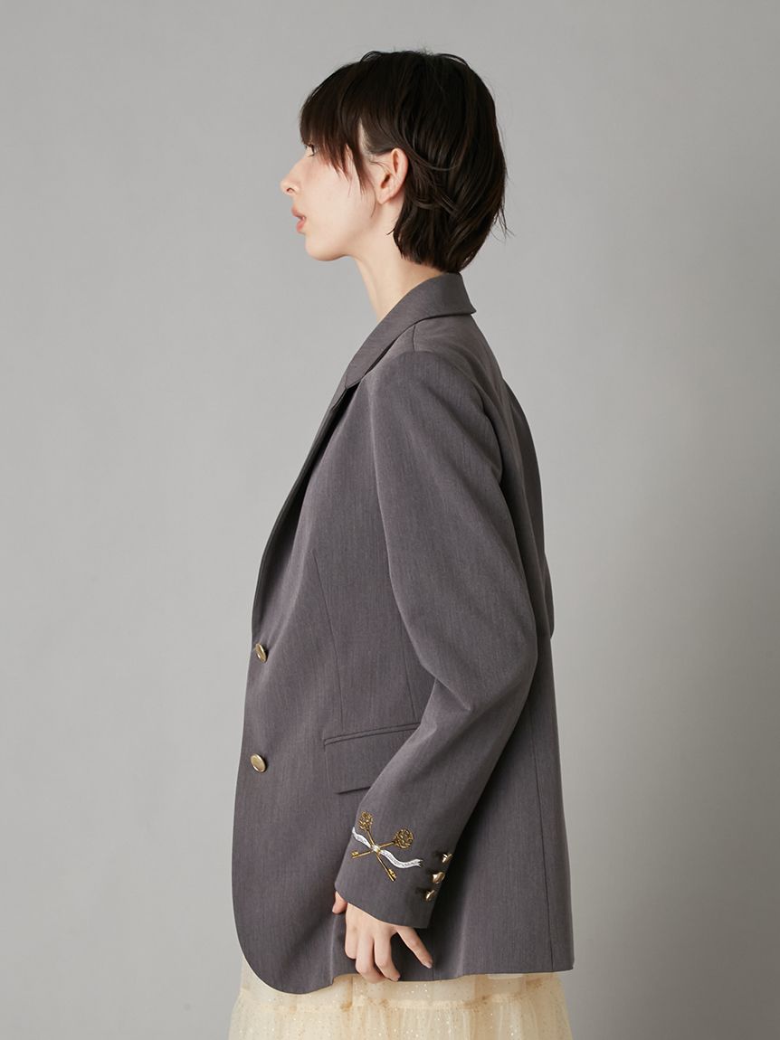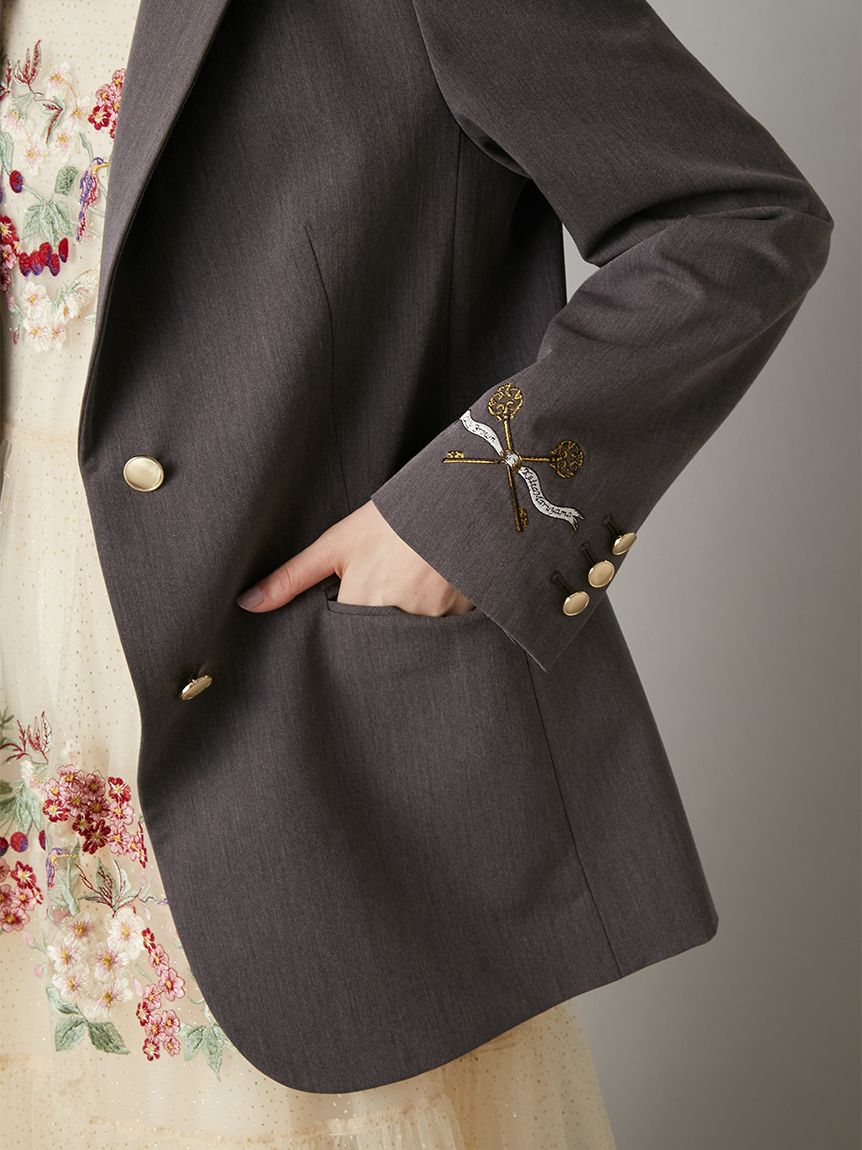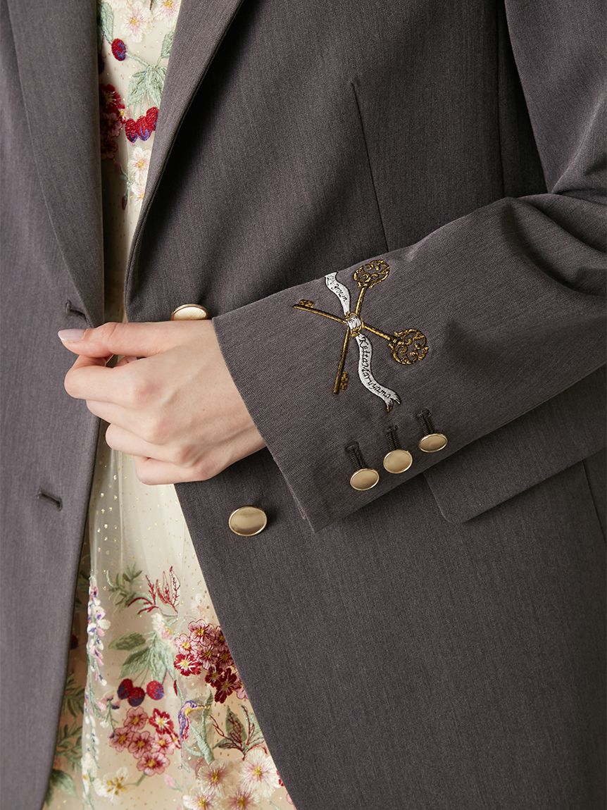【夜櫻鑰匙刺繡單排釦外套】