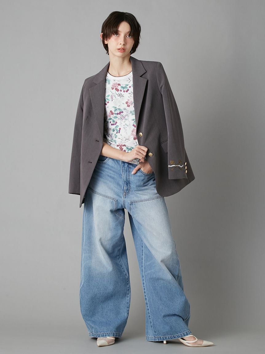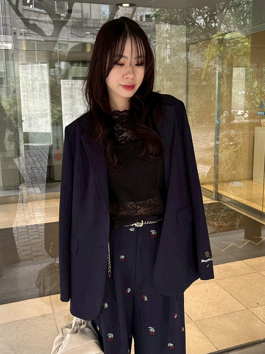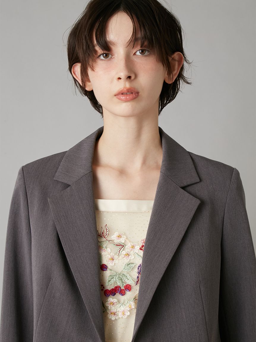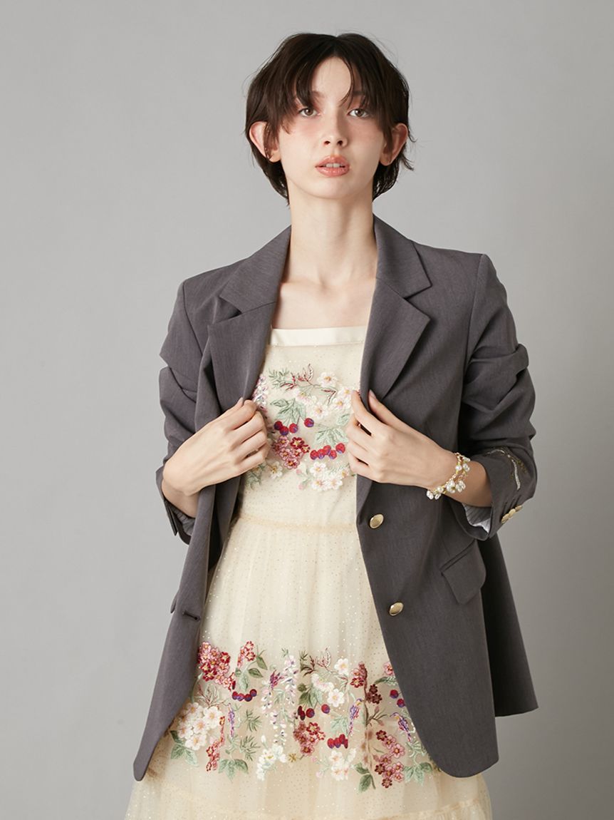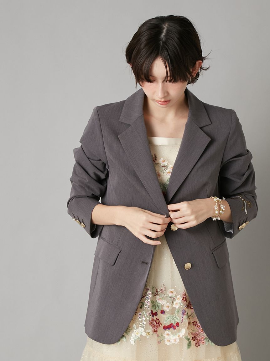 【夜櫻鑰匙刺繡單排釦外套】