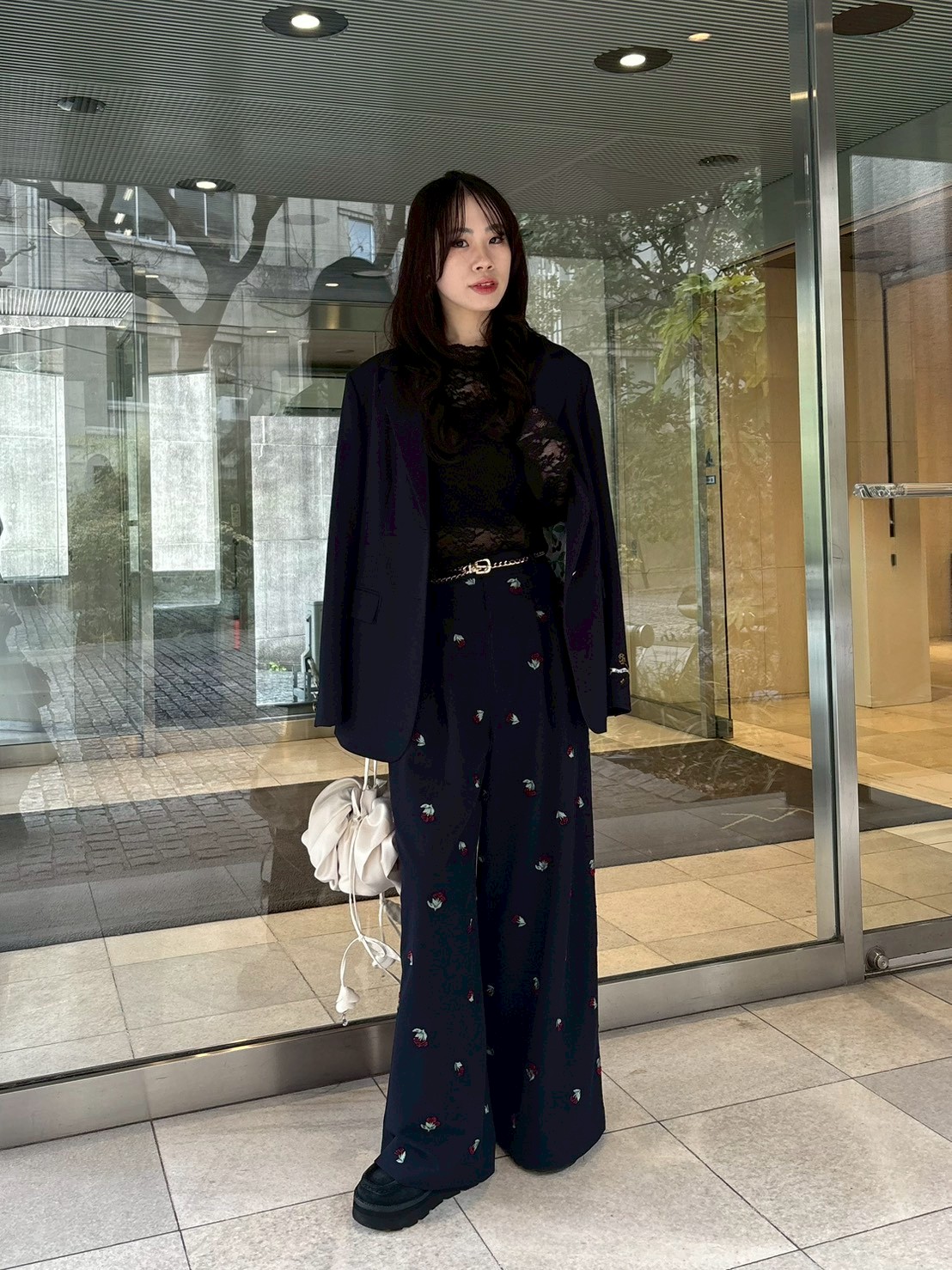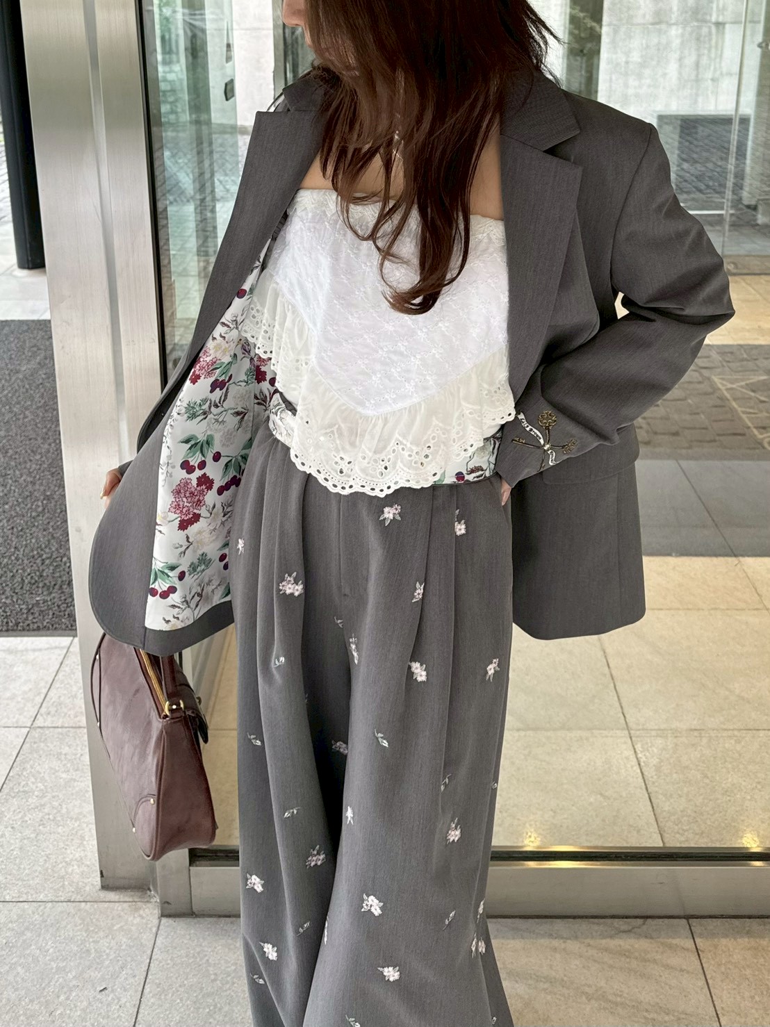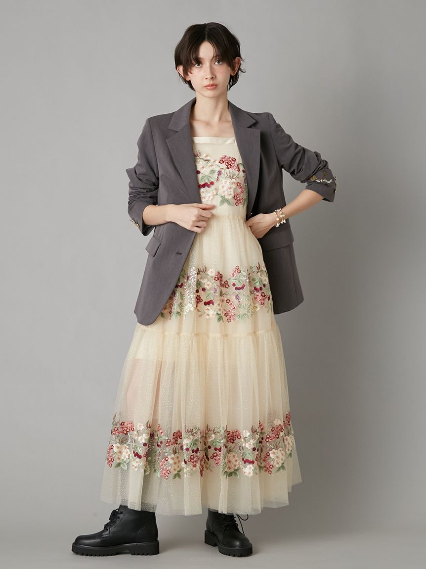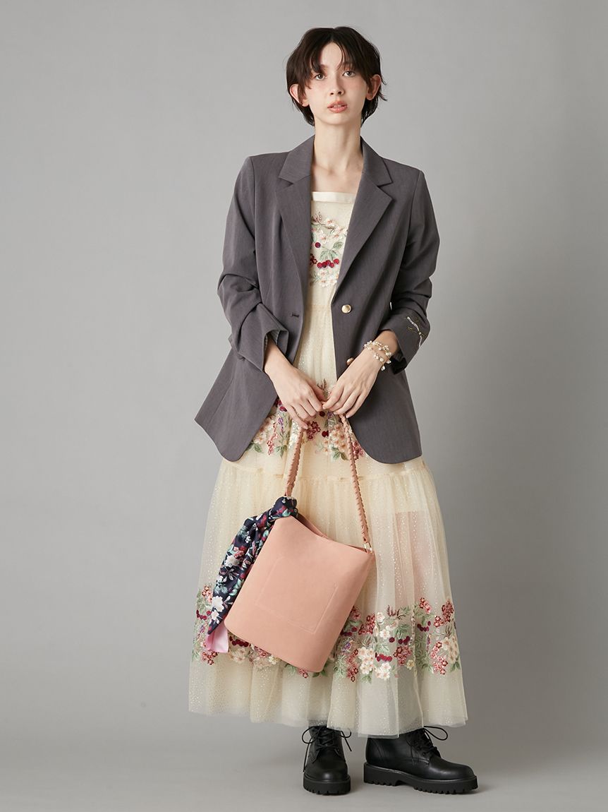 【夜櫻鑰匙刺繡單排釦外套】