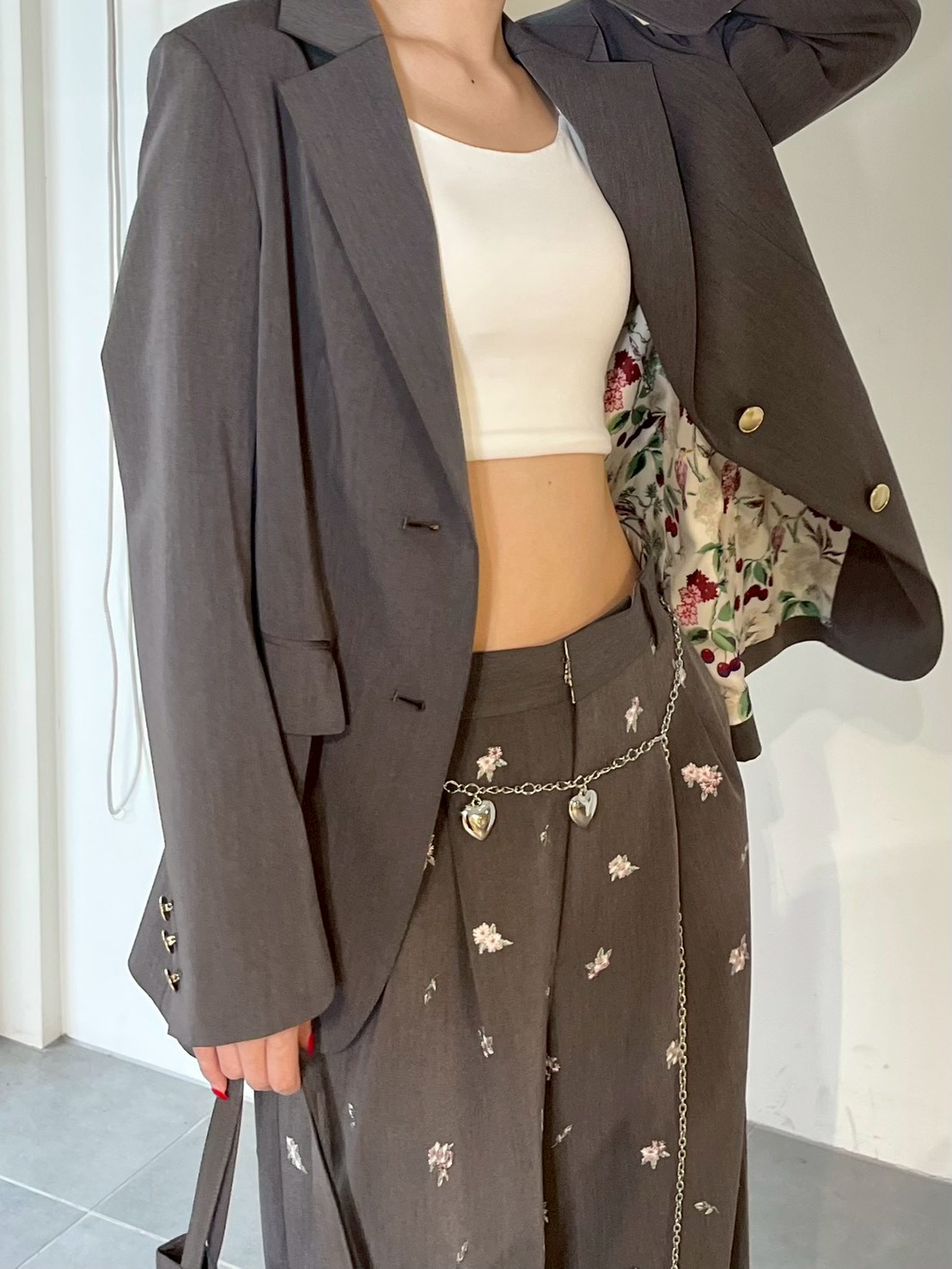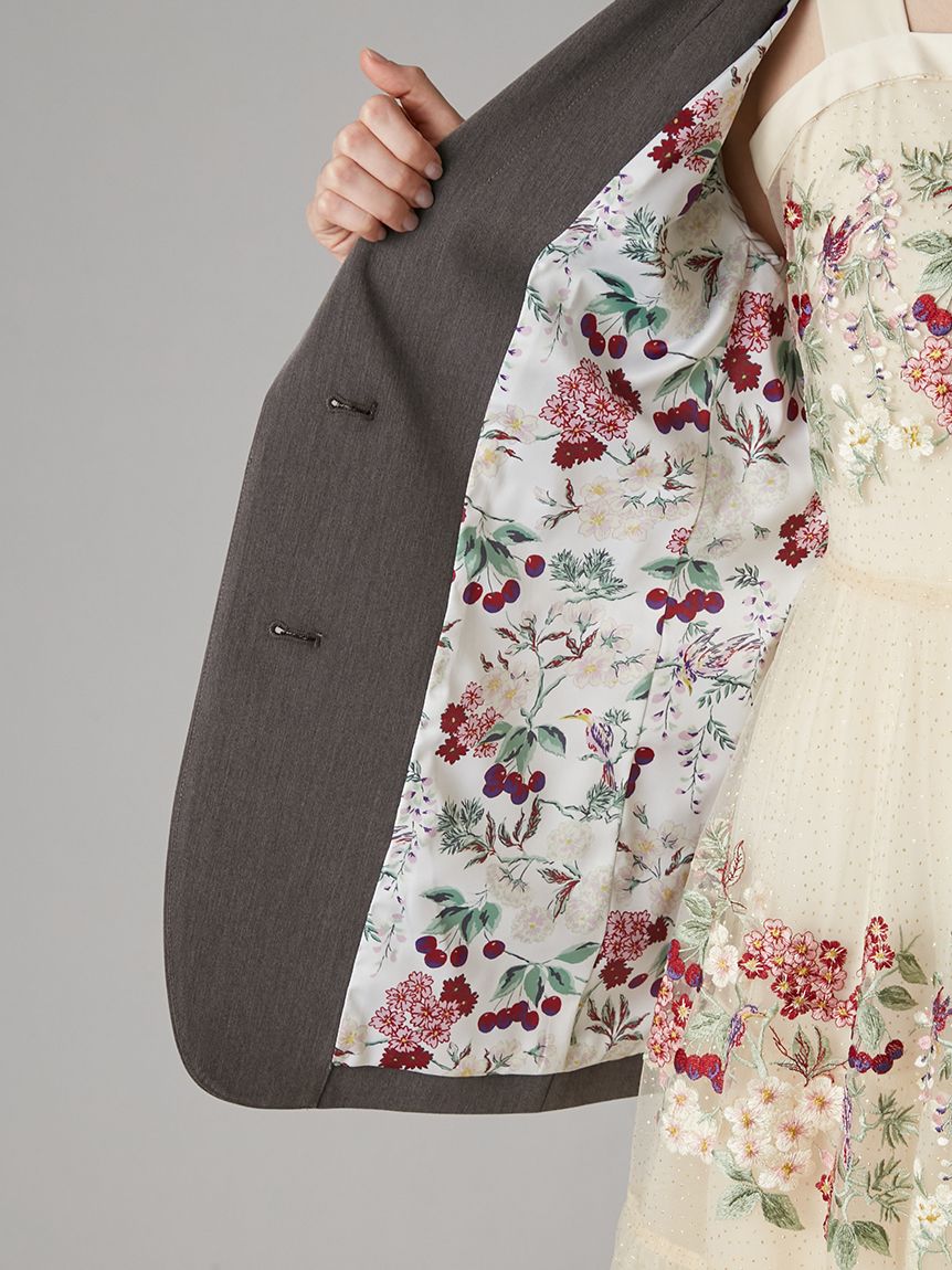 衣身內裡採用大膽滿版印花,袖裡則配條紋設計,脫下外套或捲起袖子時,可呈現不同風格與表情。