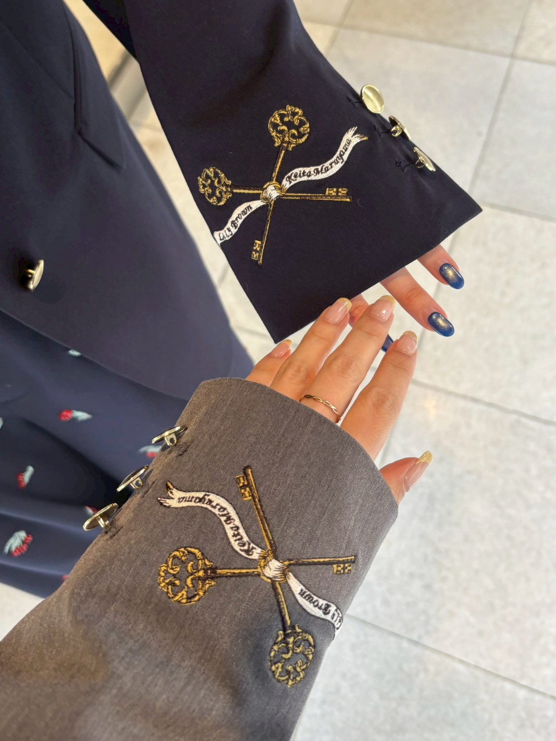 袖口施以本次特別設計,象徵兩品牌交融世界觀的“鑰匙圖案”刺繡,低調卻具個性的一點亮眼設計。