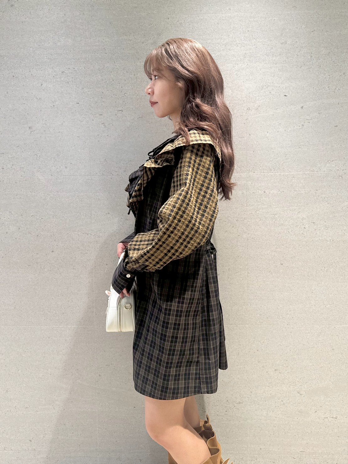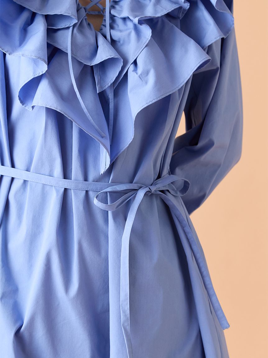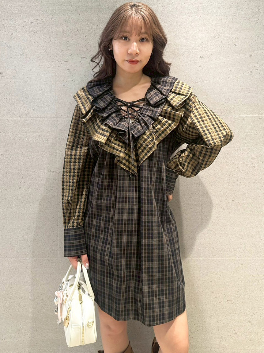領口豐富的荷葉邊設計,為臉部周圍增添華麗感的迷你洋裝。採用適度挺度的襯衫布料,帶出輕甜而不過於甜美的休閒感。
