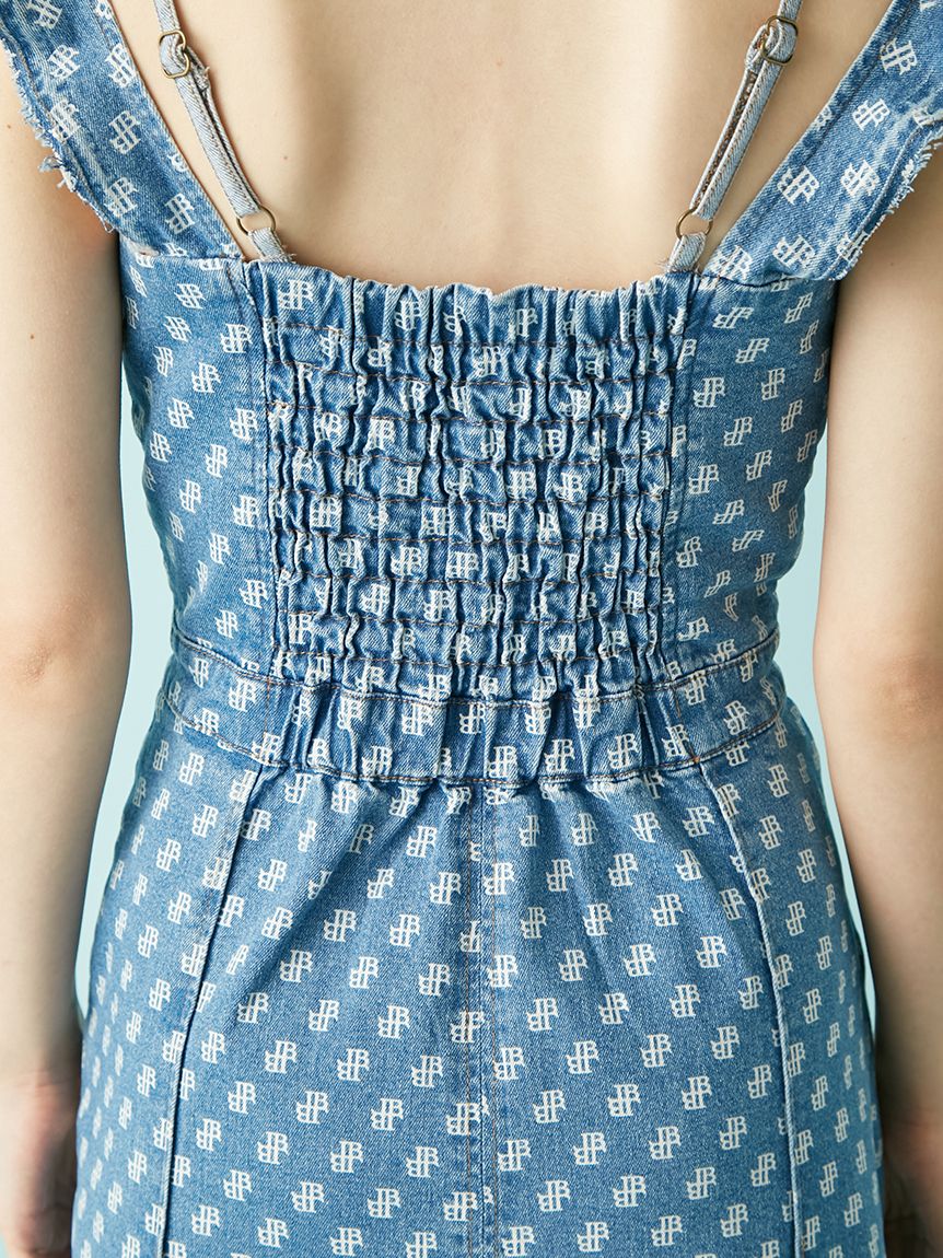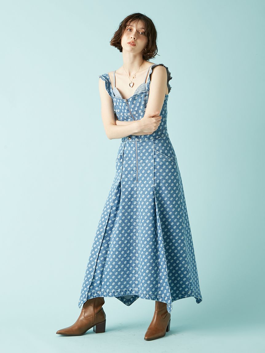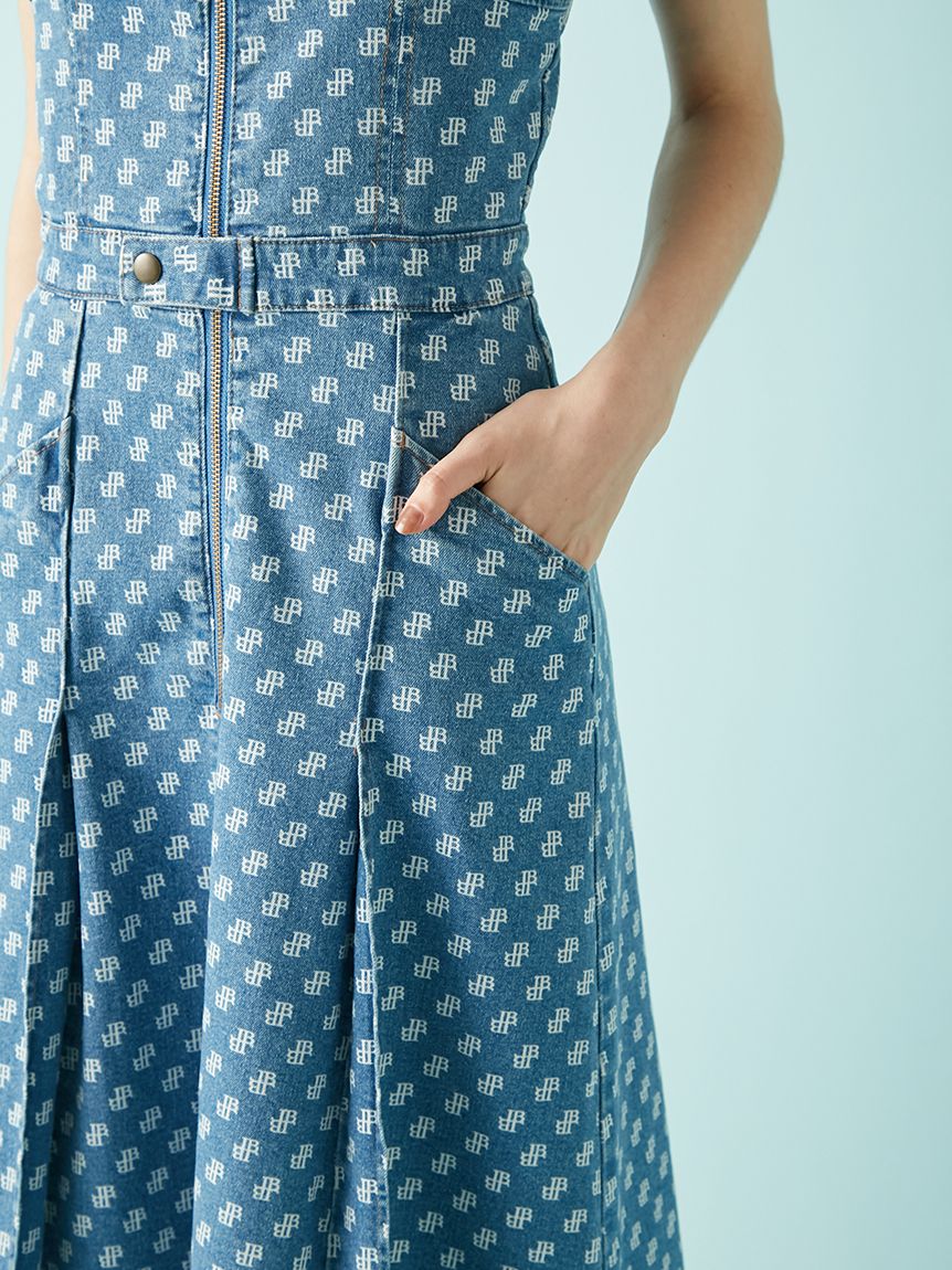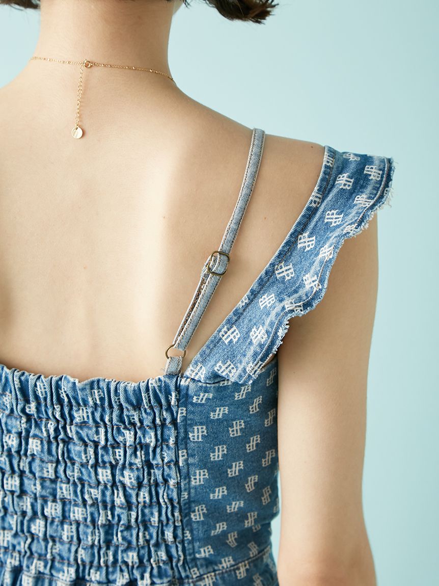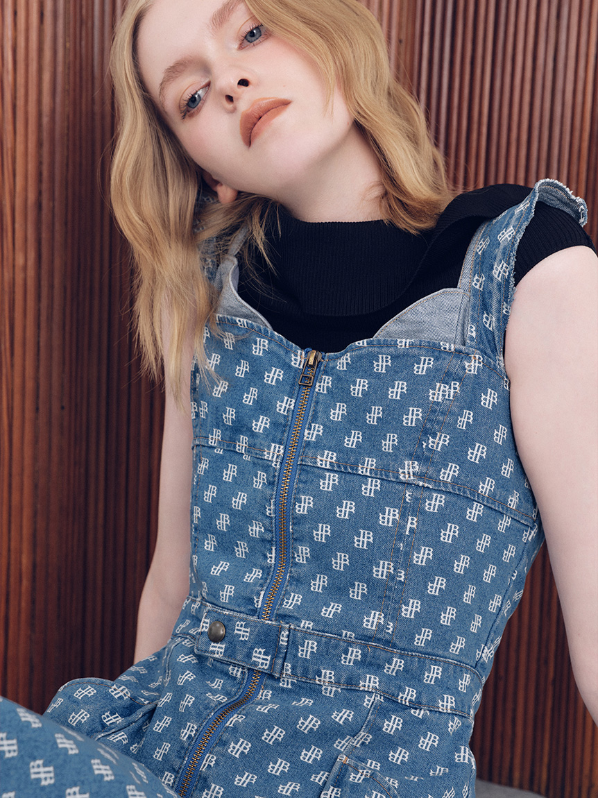 採用貼合身形的彈性丹寧布料。BLU色系以品牌標誌的褪染印花增添LILY BROWN獨有的精緻質感。