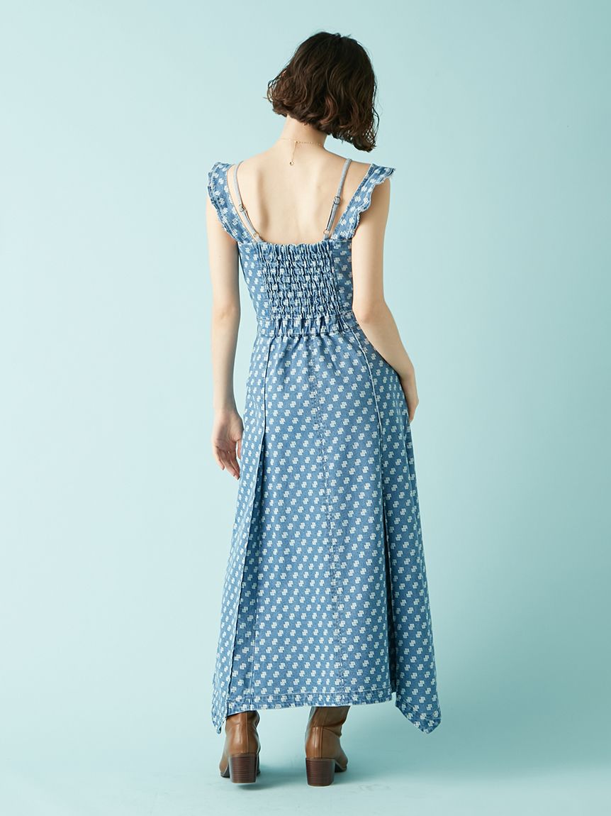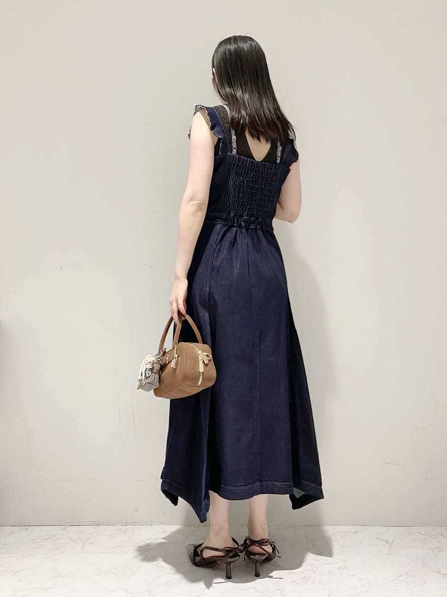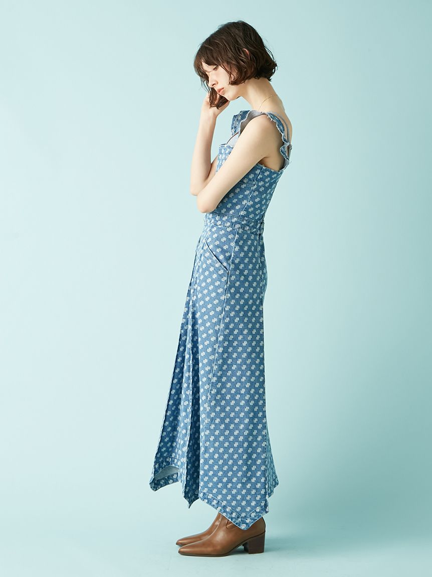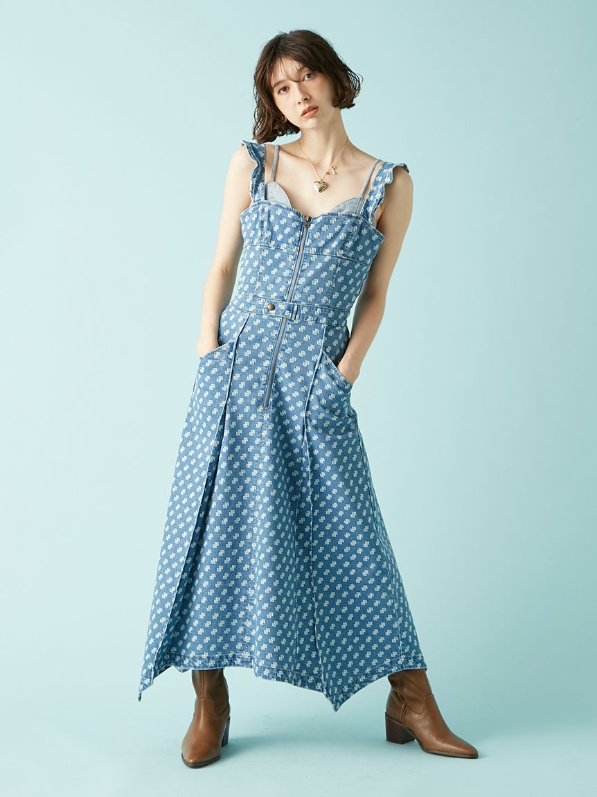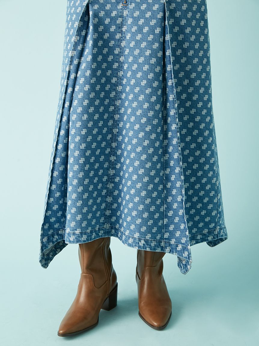 採用貼合身形的彈性丹寧布料。BLU色系以品牌標誌的褪染印花增添LILY BROWN獨有的精緻質感。